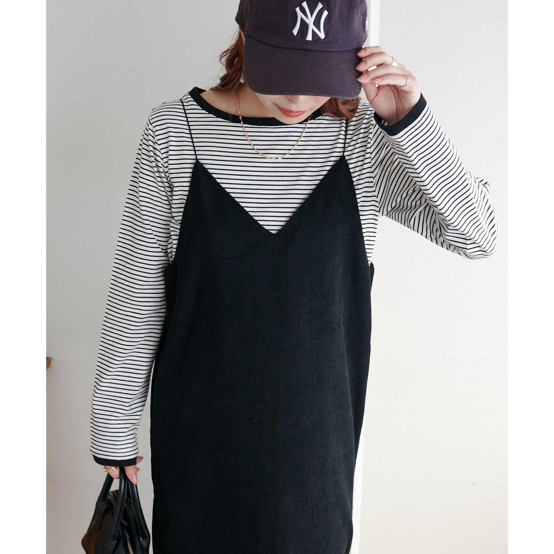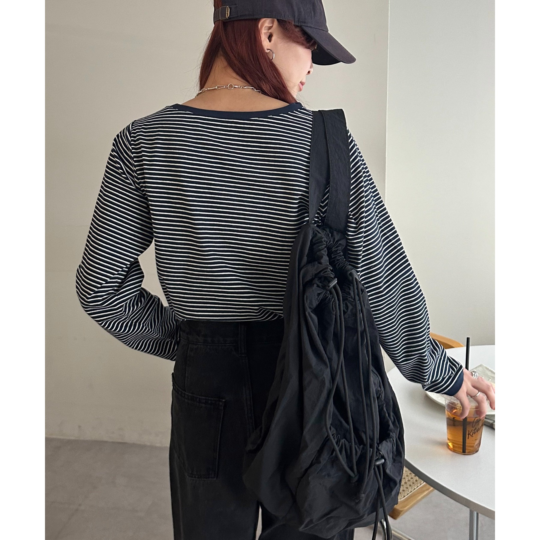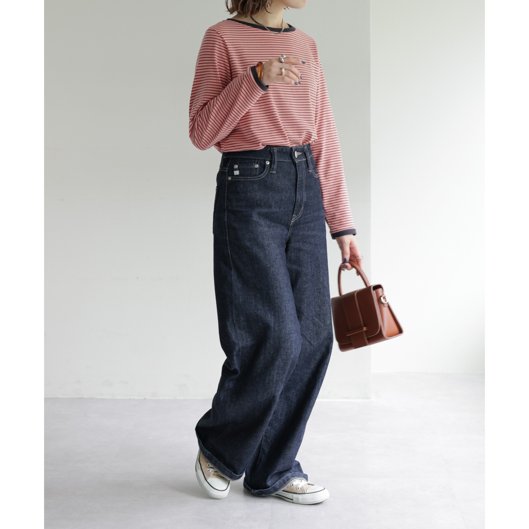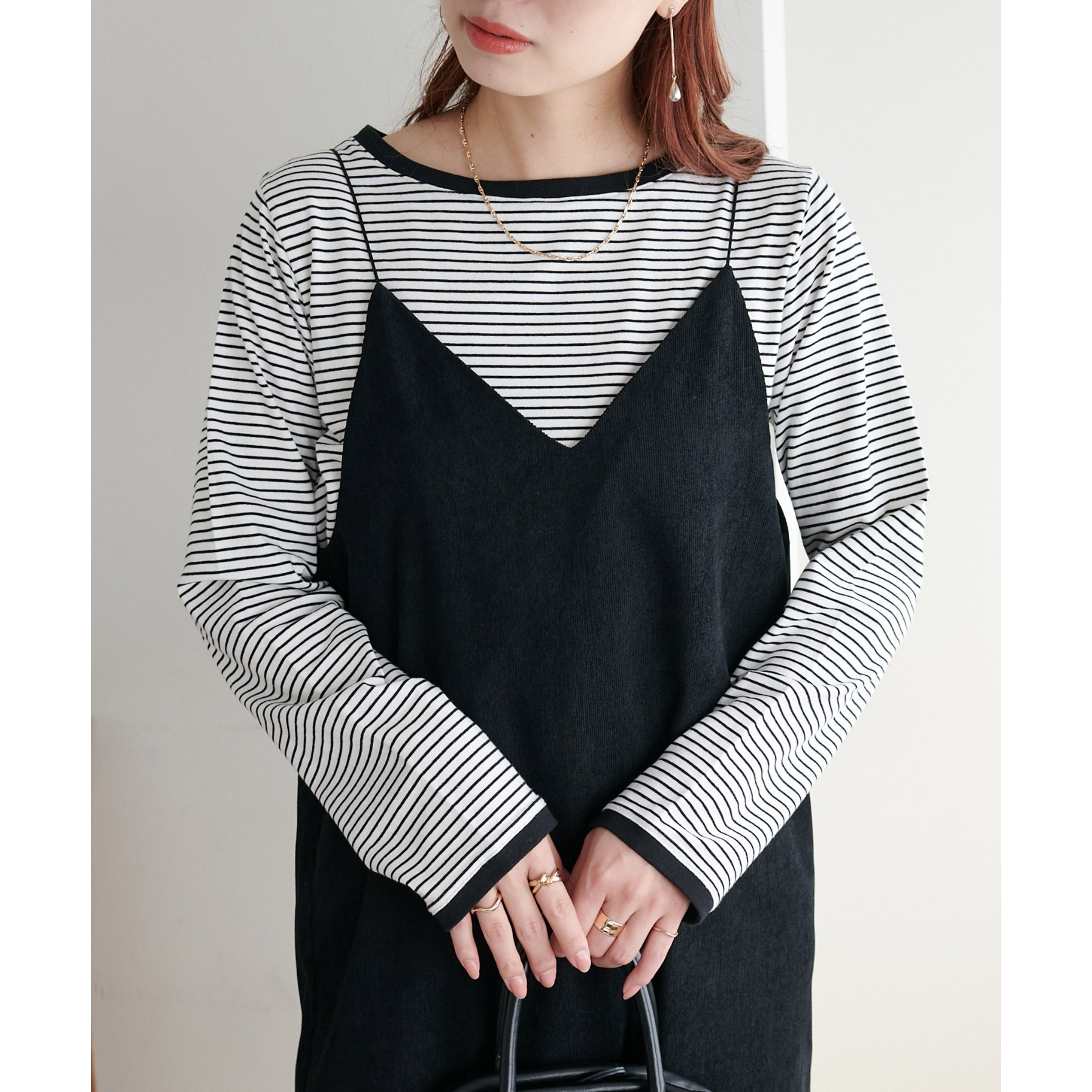 ・細めのピッチで仕上げた旬のボーダー柄と配色使いでアクセントをプラス