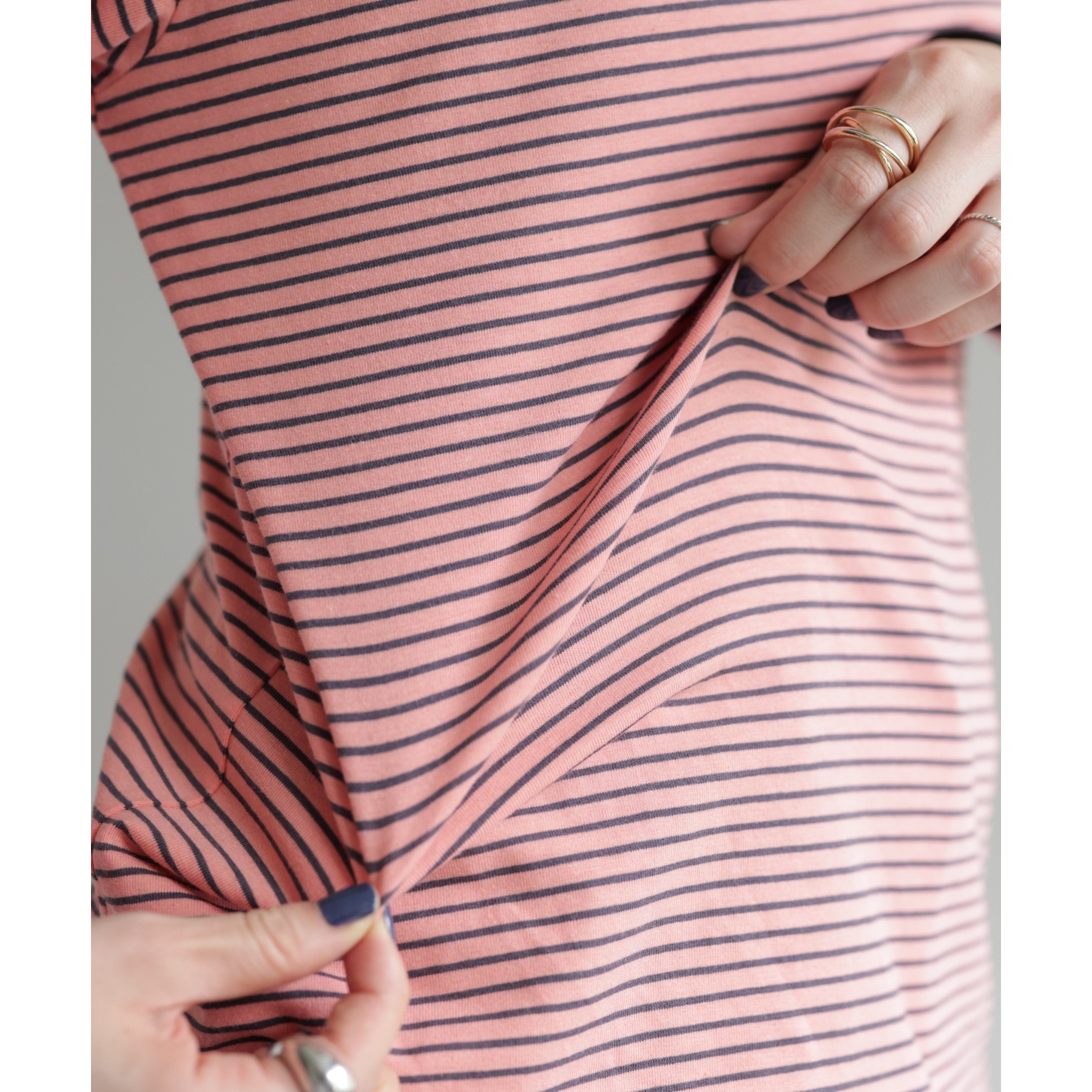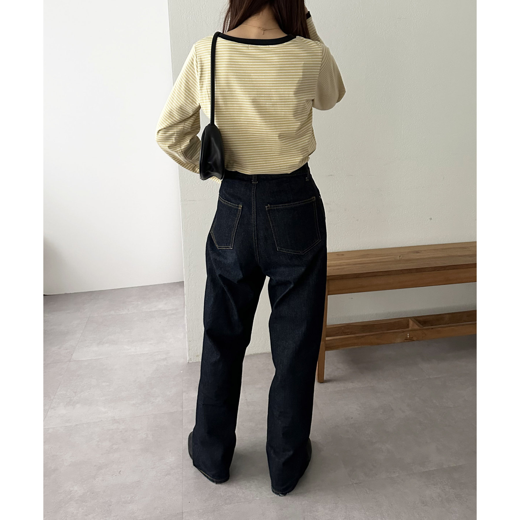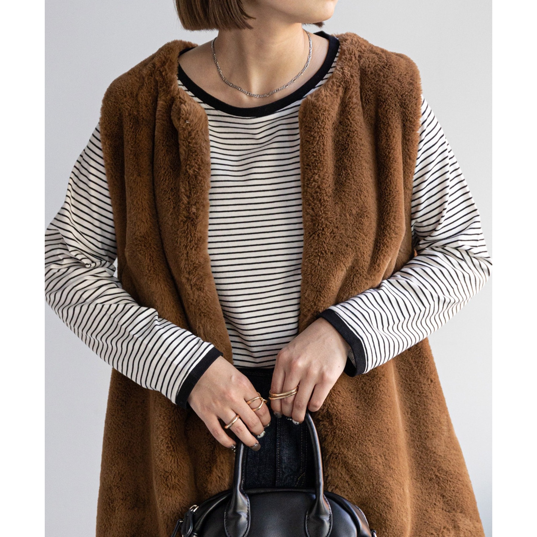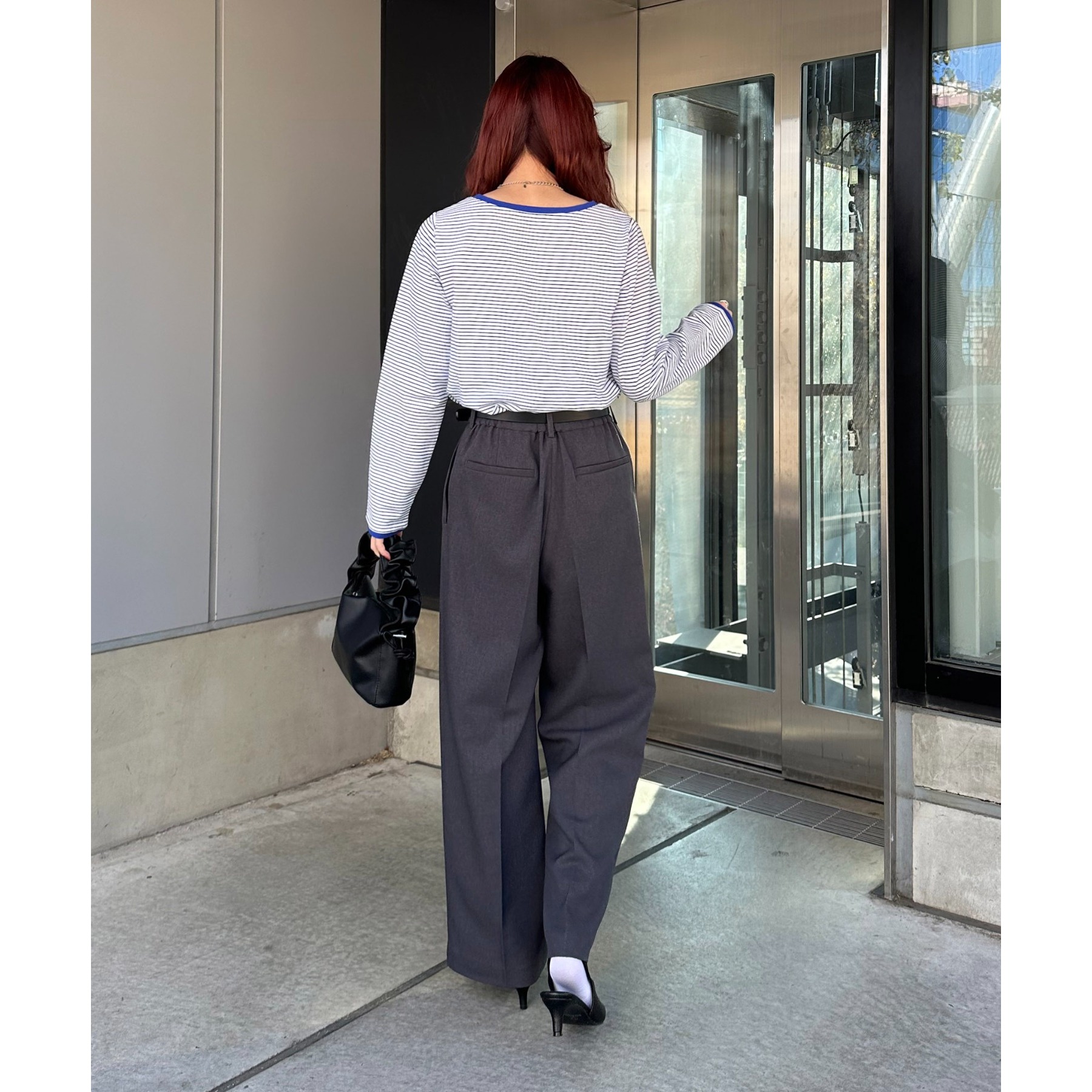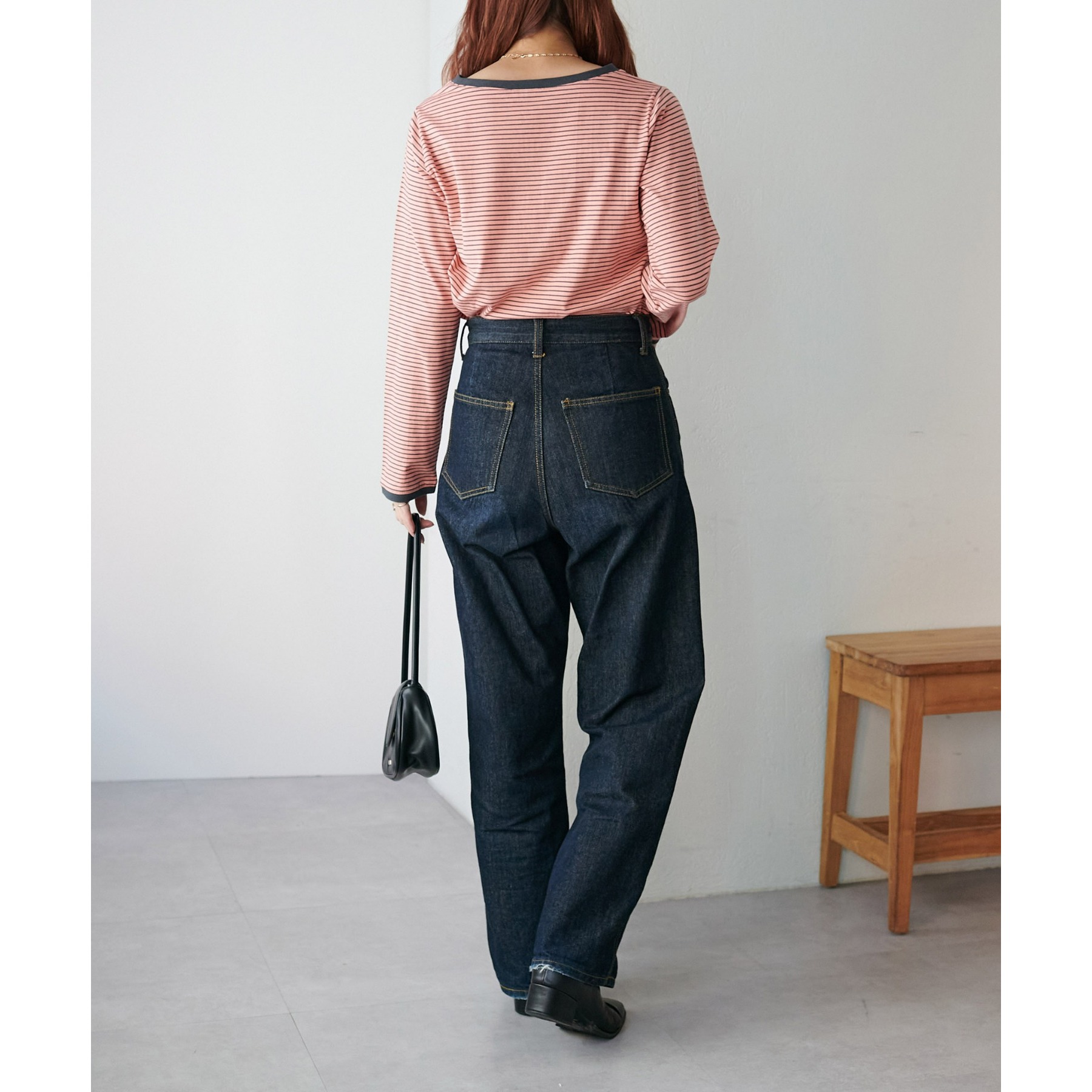 ・細めのピッチで仕上げた旬のボーダー柄と配色使いでアクセントをプラス