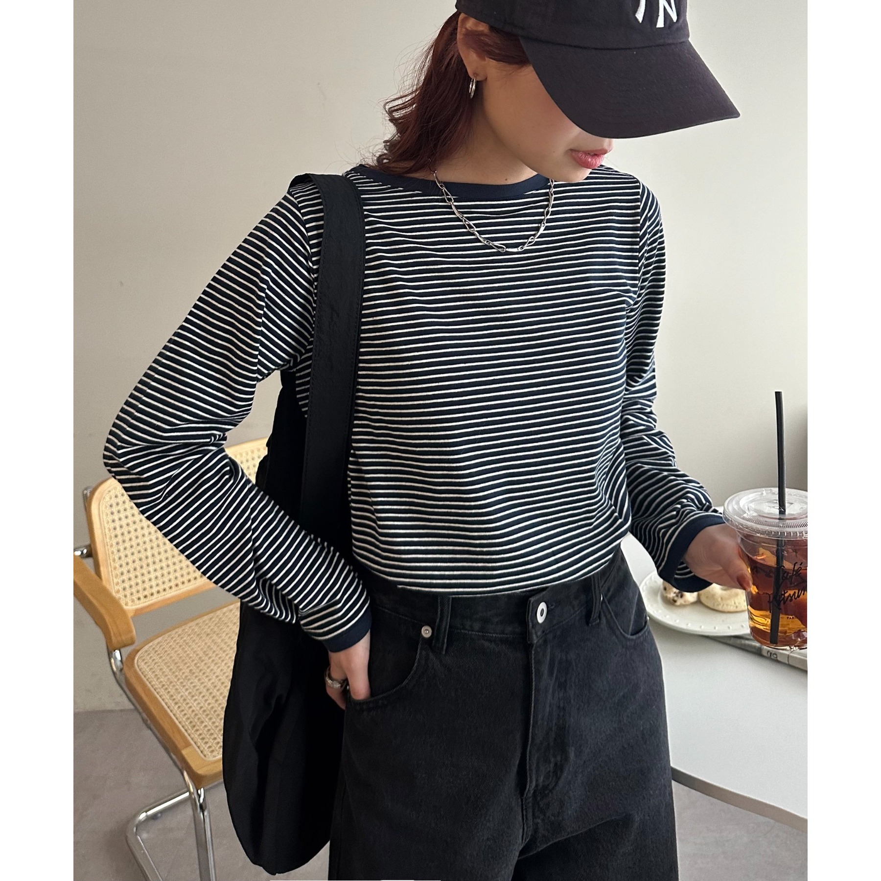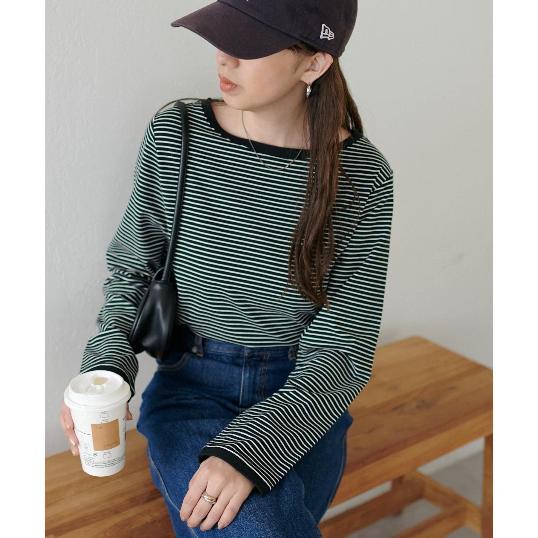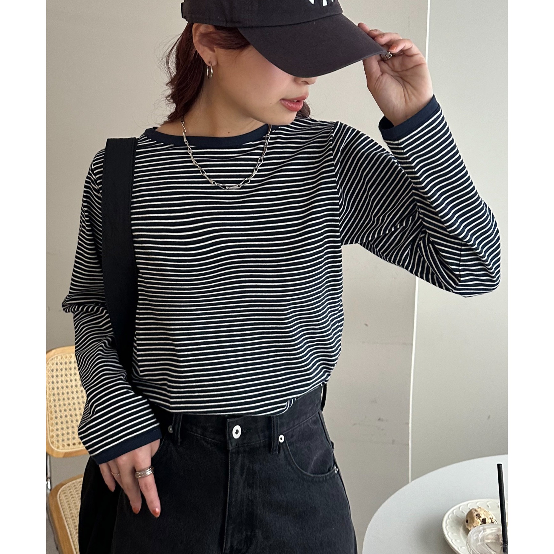 シンプルなのにトレンド感がある、細ボーダーTシャツ