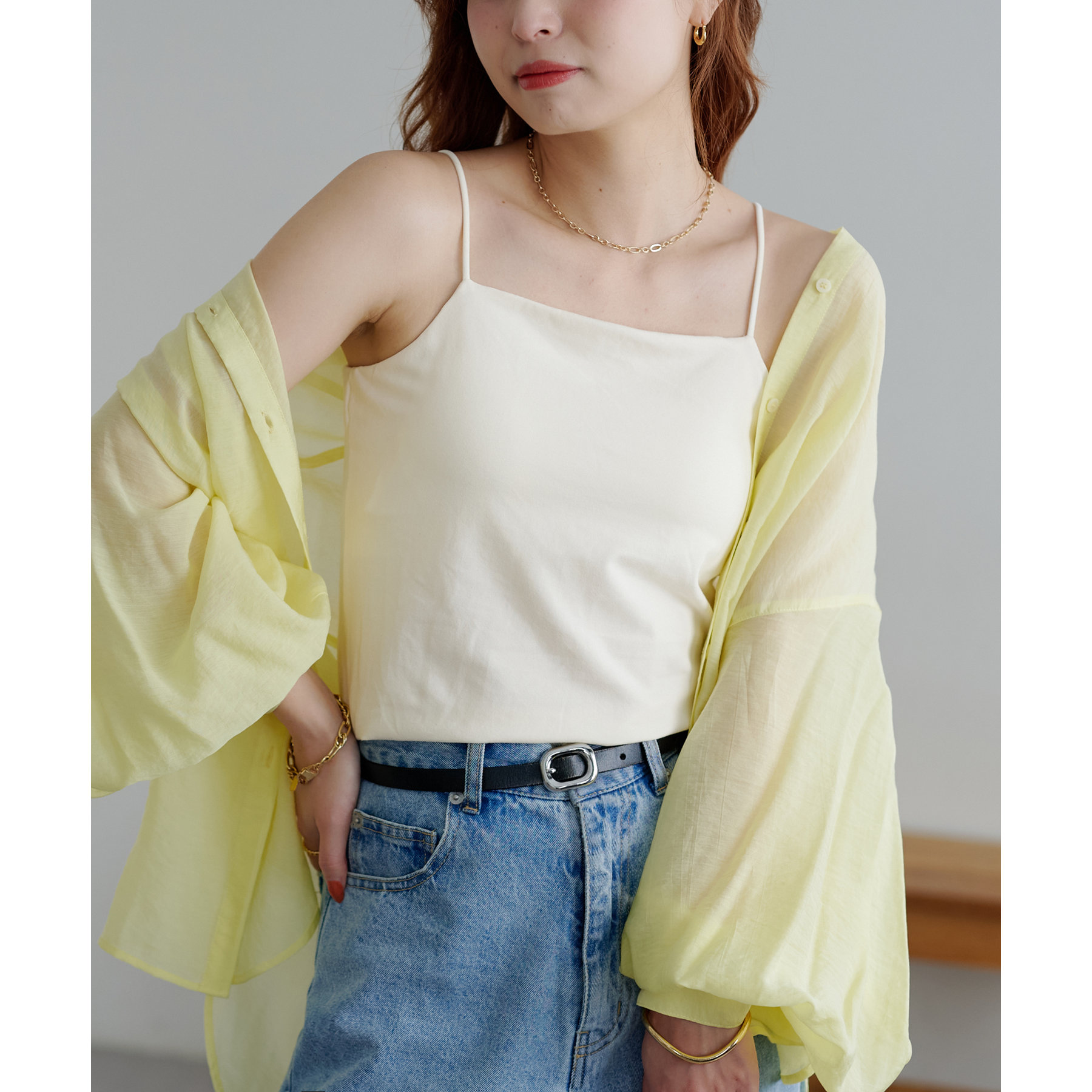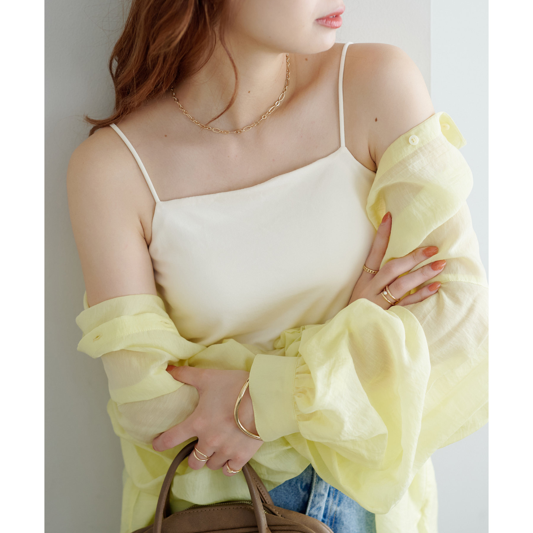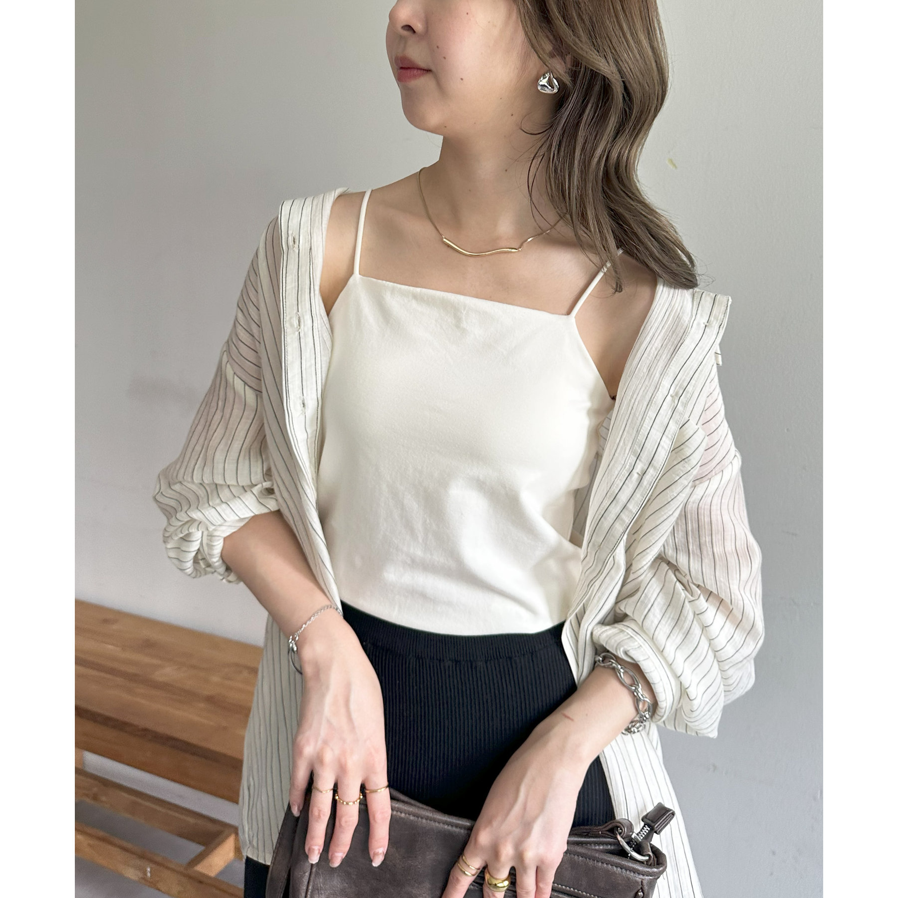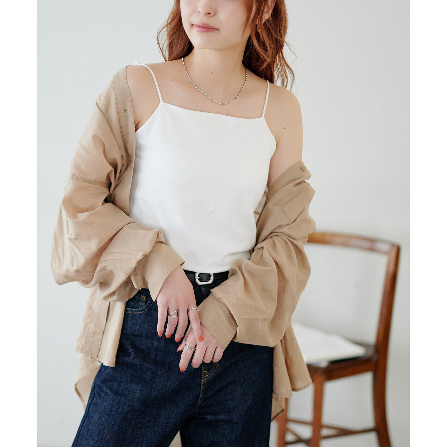 シャツやジャケット、カーディガンのインナーとして、サロペットやキャミワンピなどと合わせてヘルシーな肌見せも。
