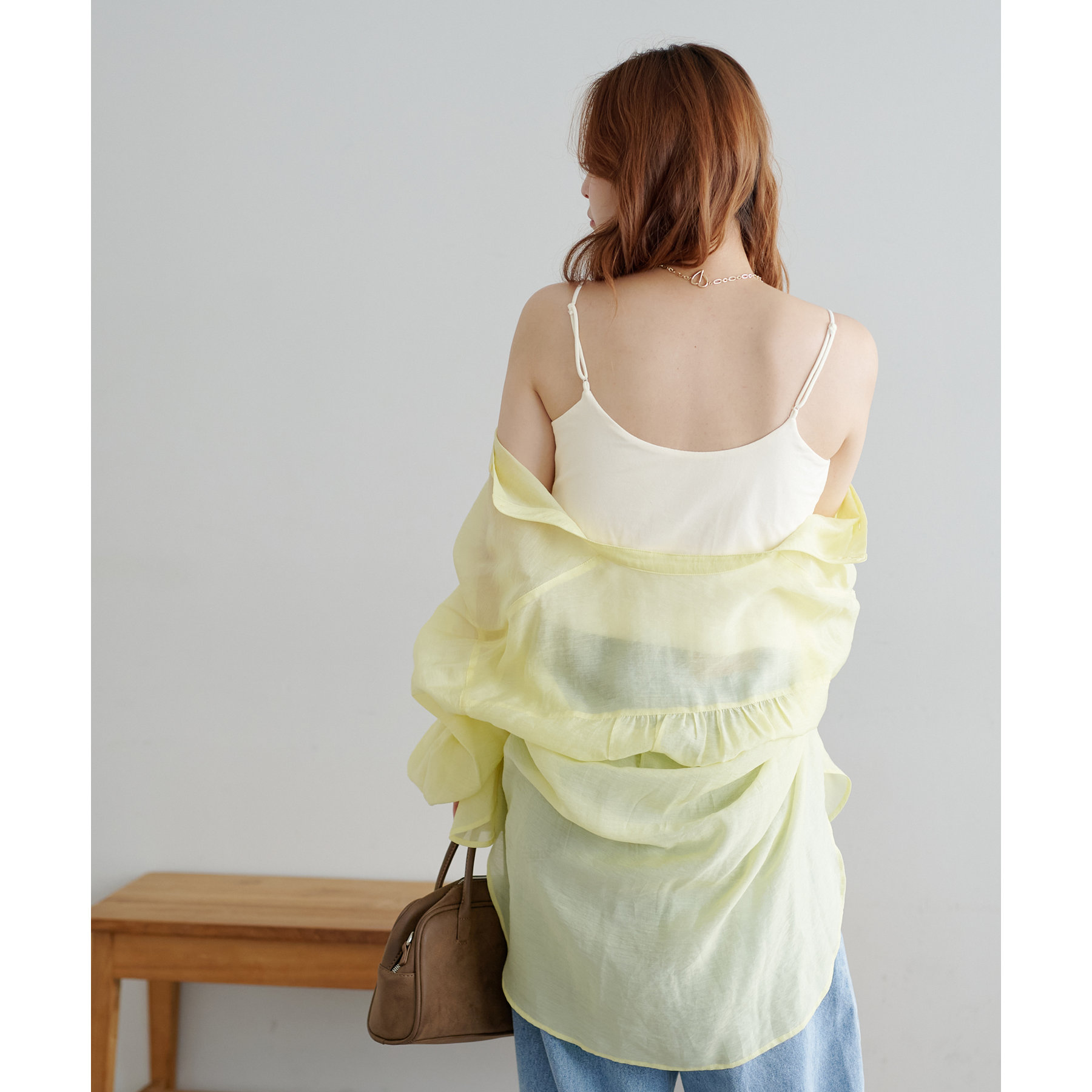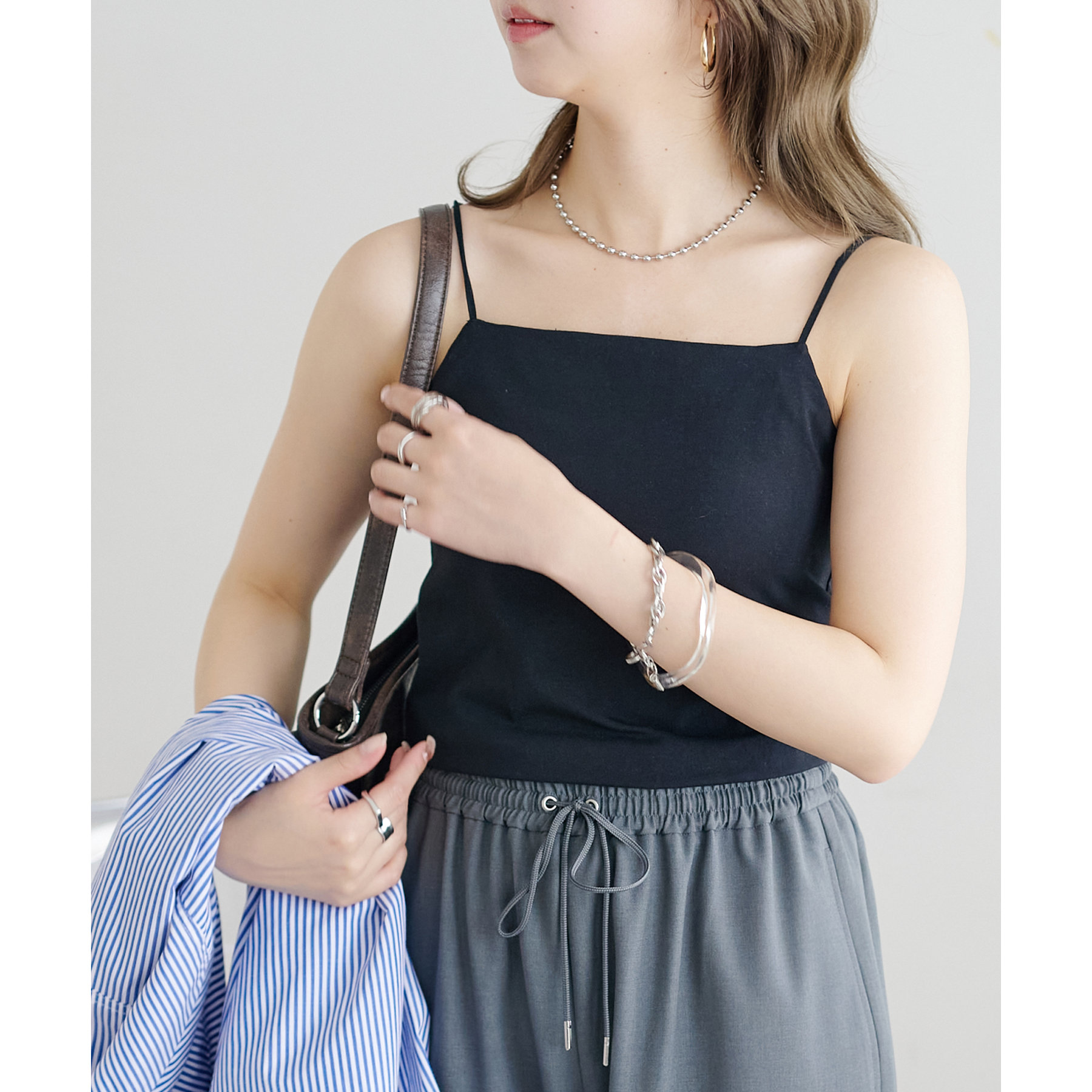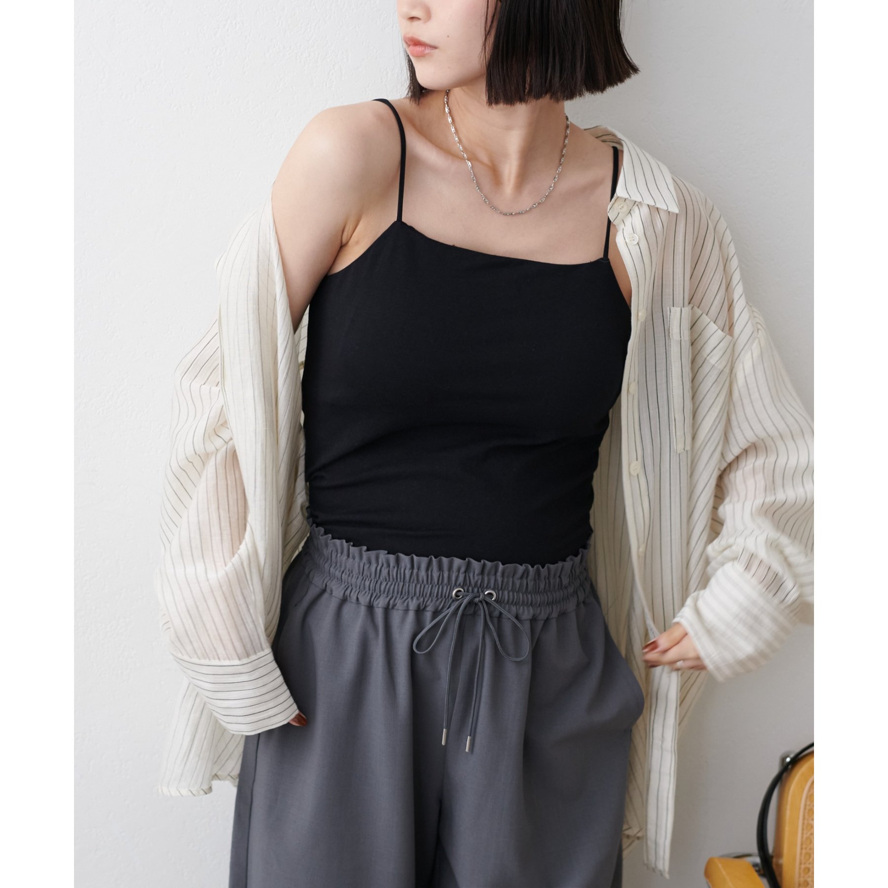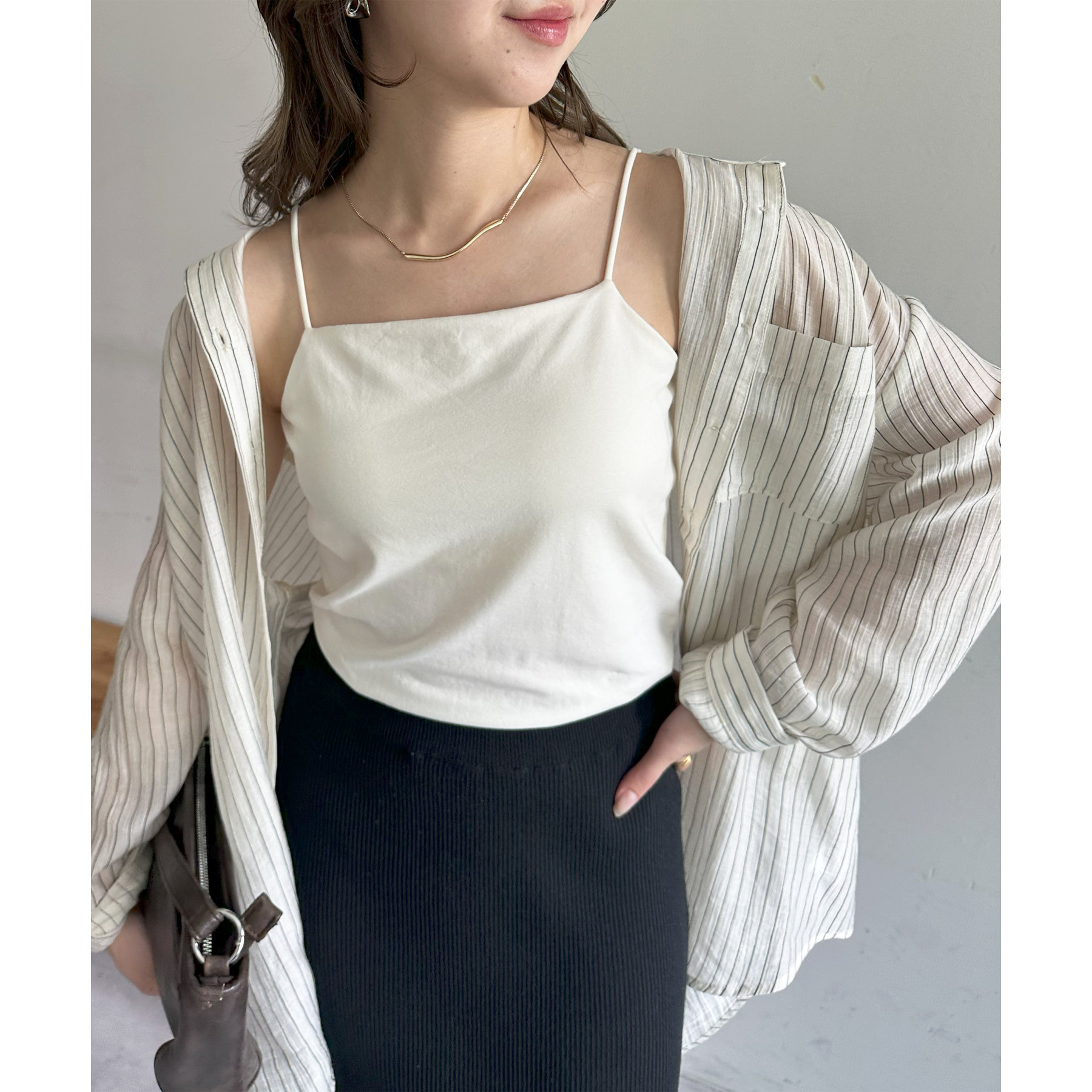 シャツやジャケット、カーディガンのインナーとして、サロペットやキャミワンピなどと合わせてヘルシーな肌見せも。