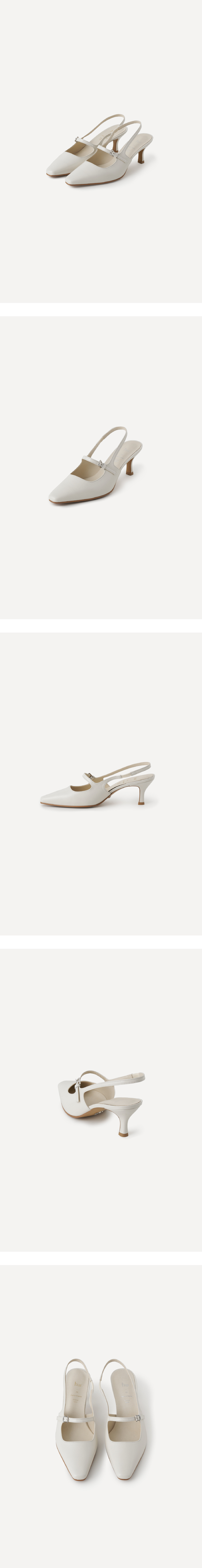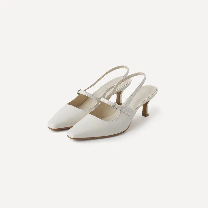 自然に足を包むスリングバックストラップのバンディングディテールと、程よい高さのミドルスプールヒールが調和し、安定した履き心地と快適なフィット感を提供します。