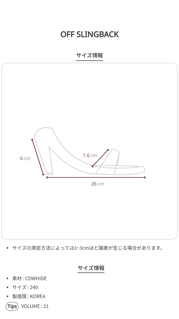 フェミニンな感性に満ちた OFF SLINGBACK で、多彩なコーディネートを完成させてください。