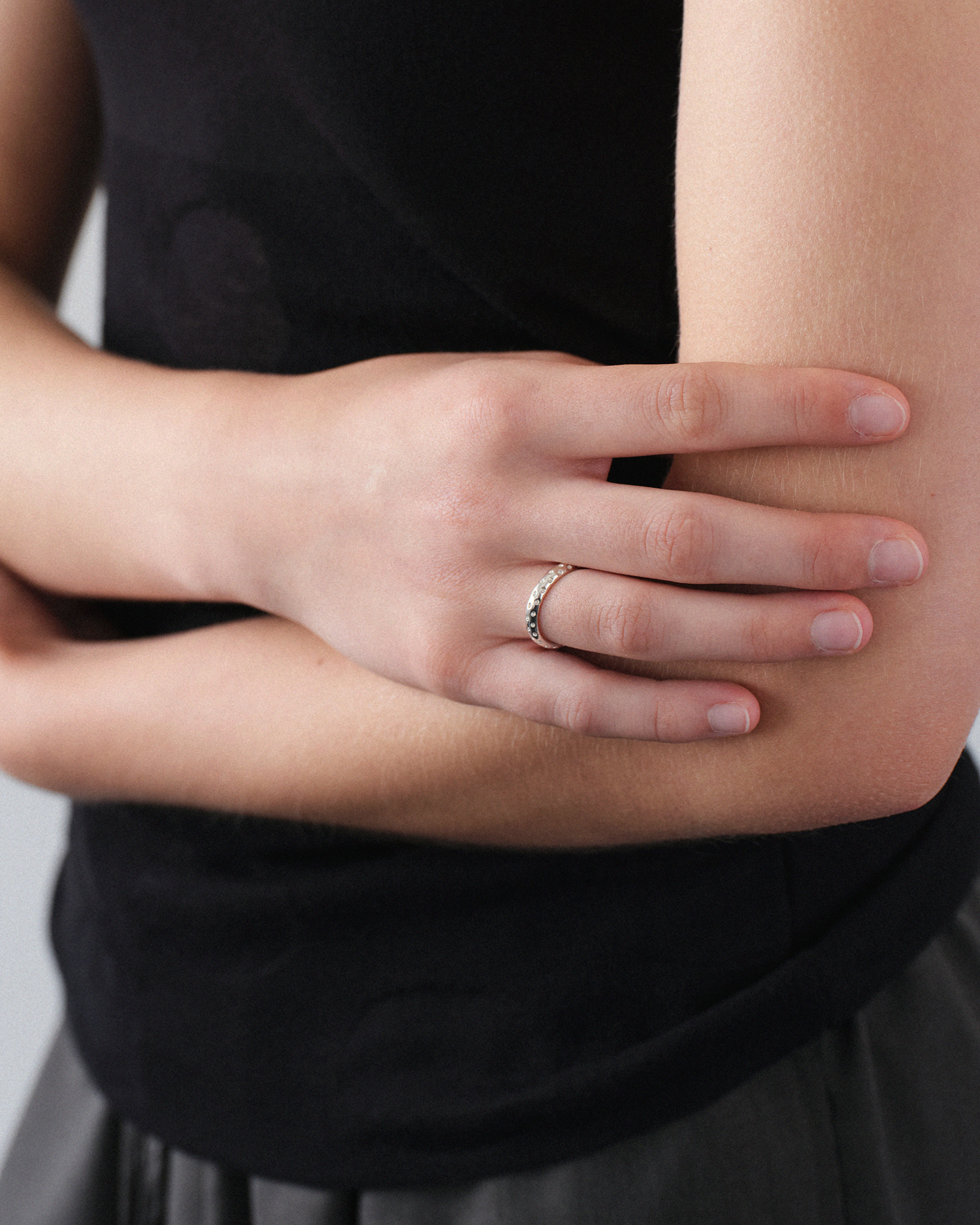ドット状のくぼみが魅力的なリングです。