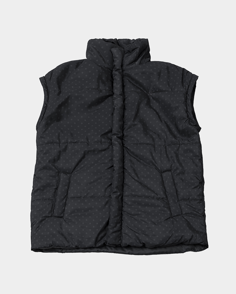 Dot Snow Sleeve Detachable Two-Way Vest Puffer Padded Jumper [Black]