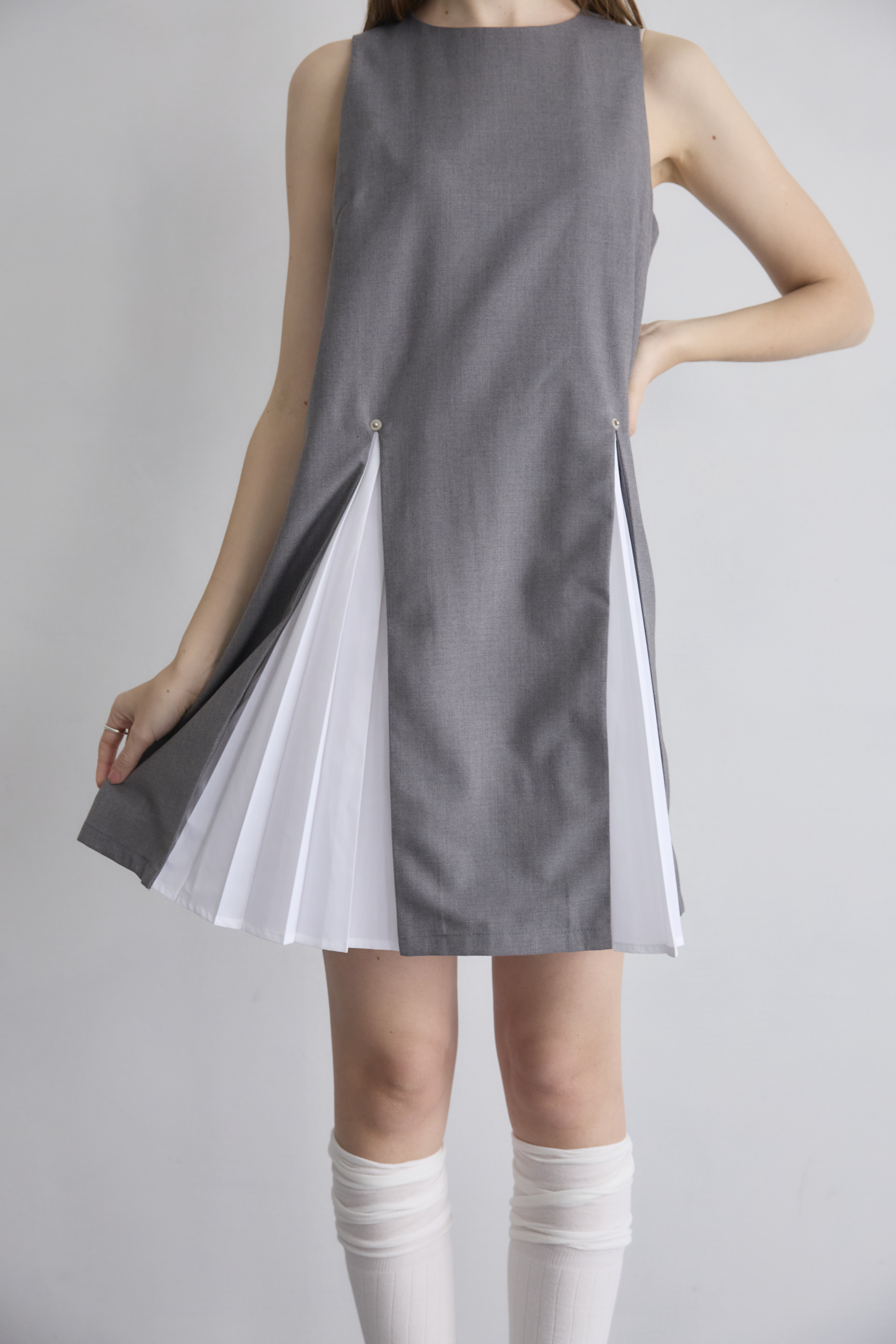Pleated A-line Short One-Piece