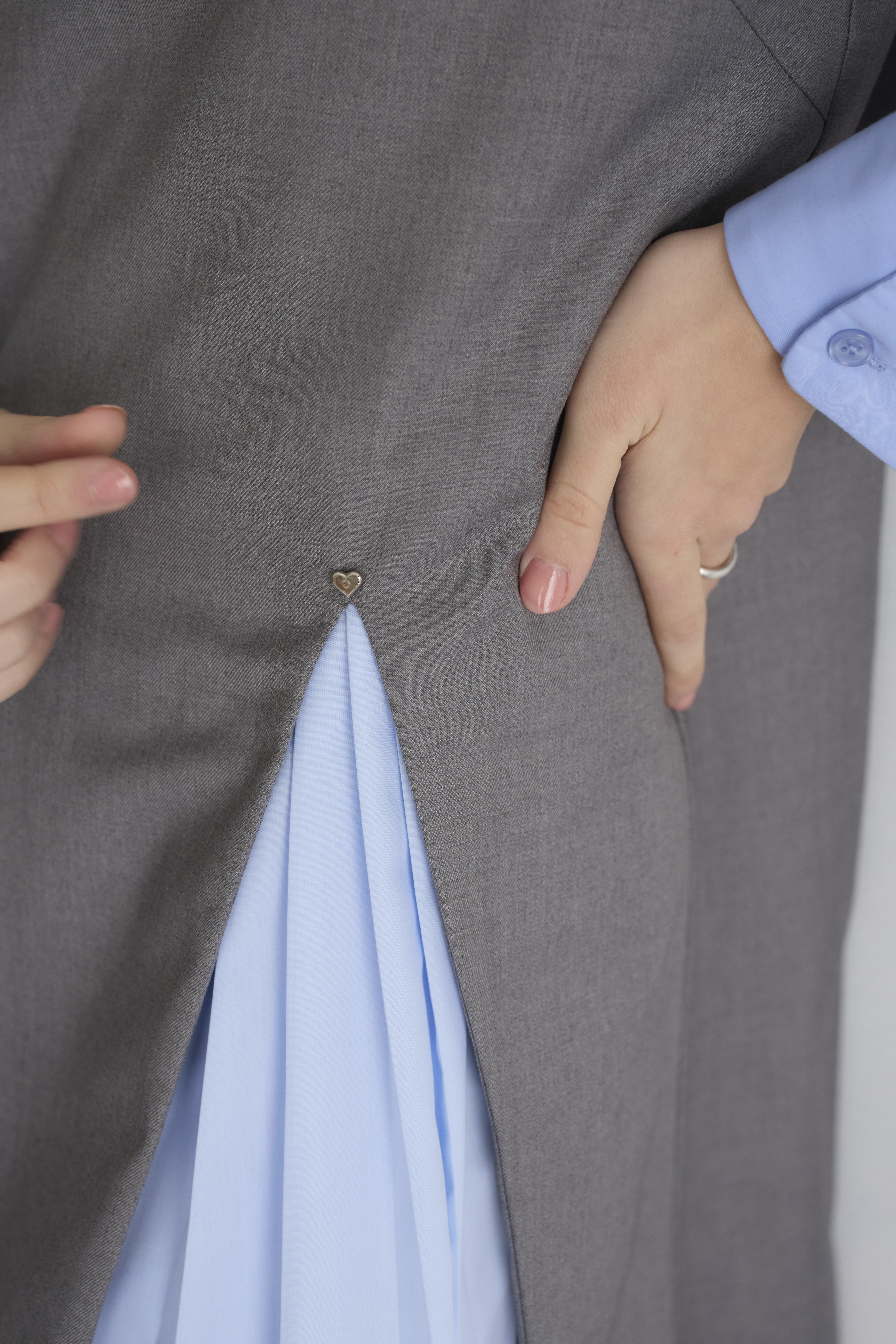 さりげなく輝くハートのリベットがアクセントに
