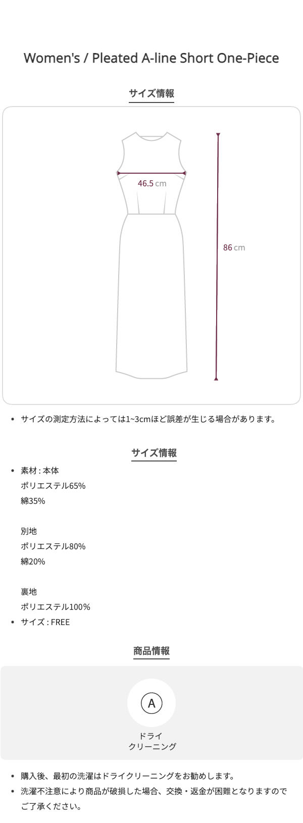 着丈86cm、バスト93cm