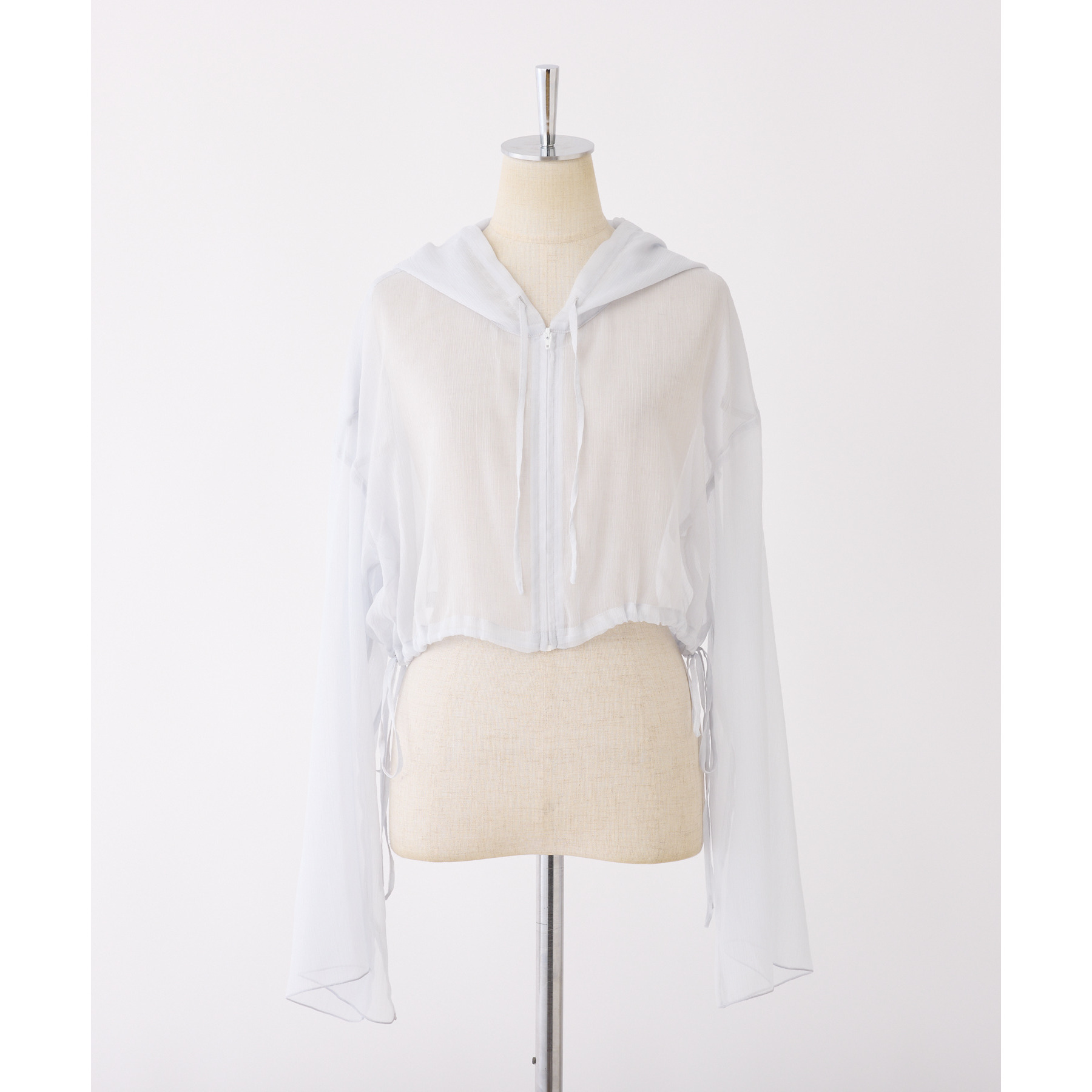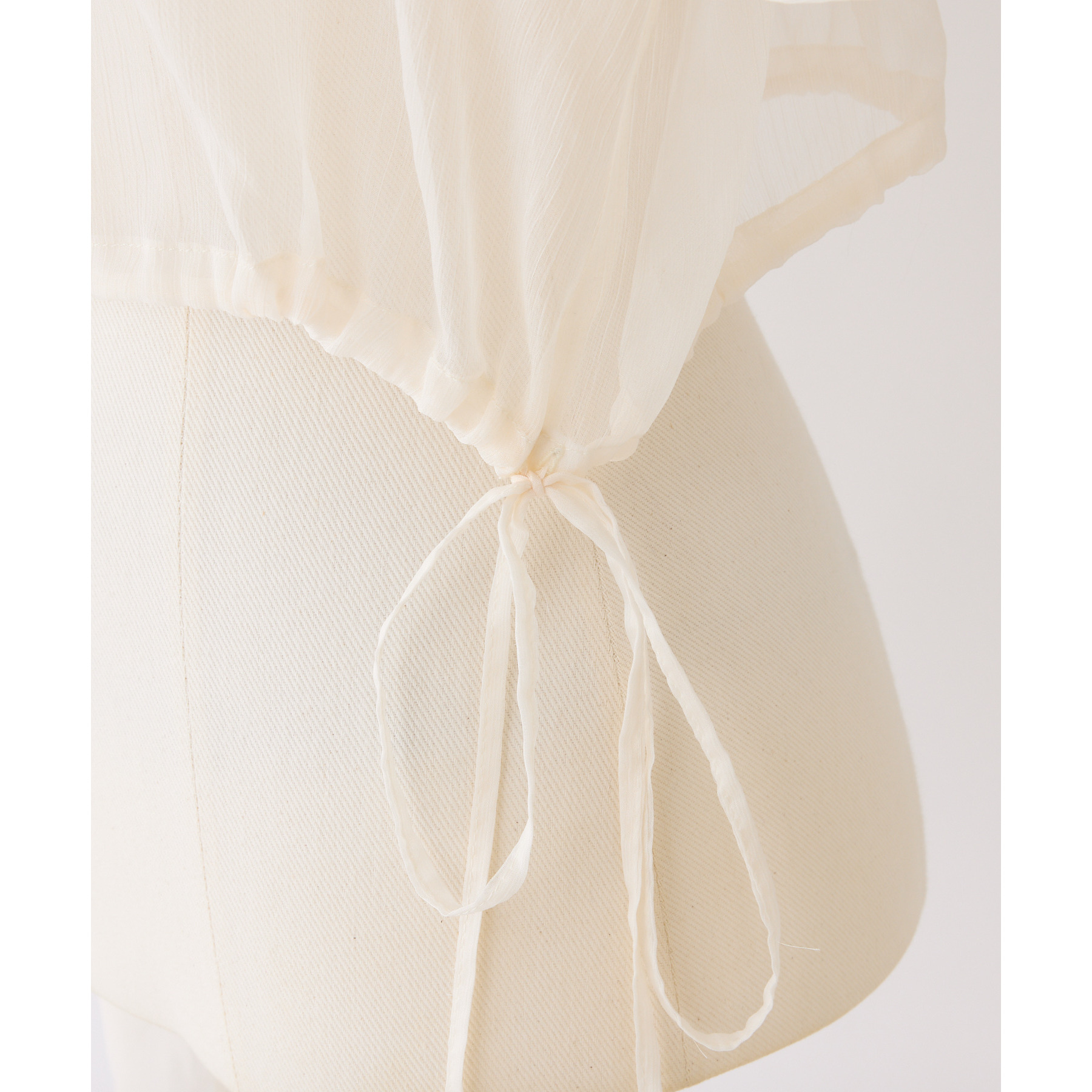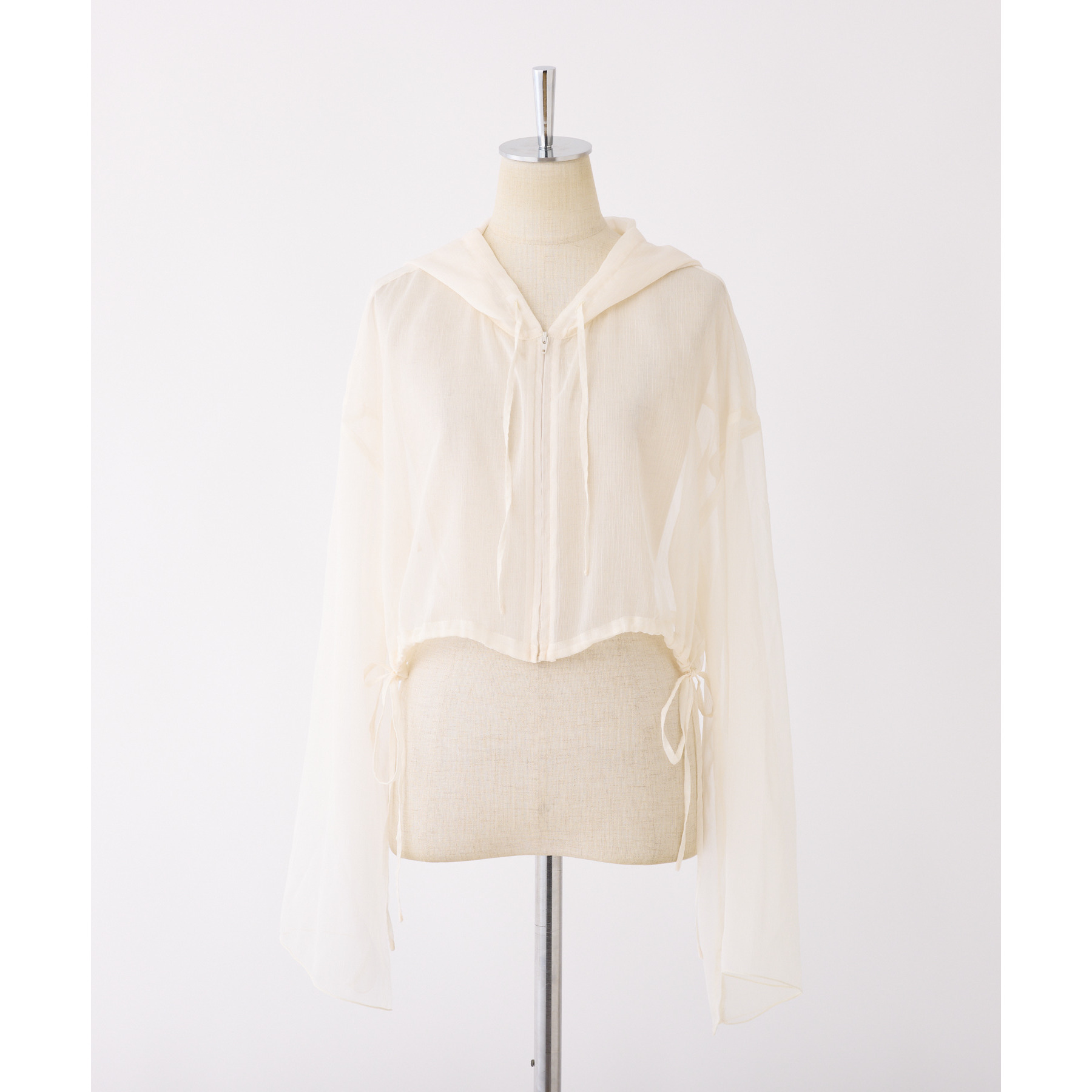 着丈が短いデザインで、さらに絞りがあるのでシルエットが調節できスタイルアップ効果も◎。
