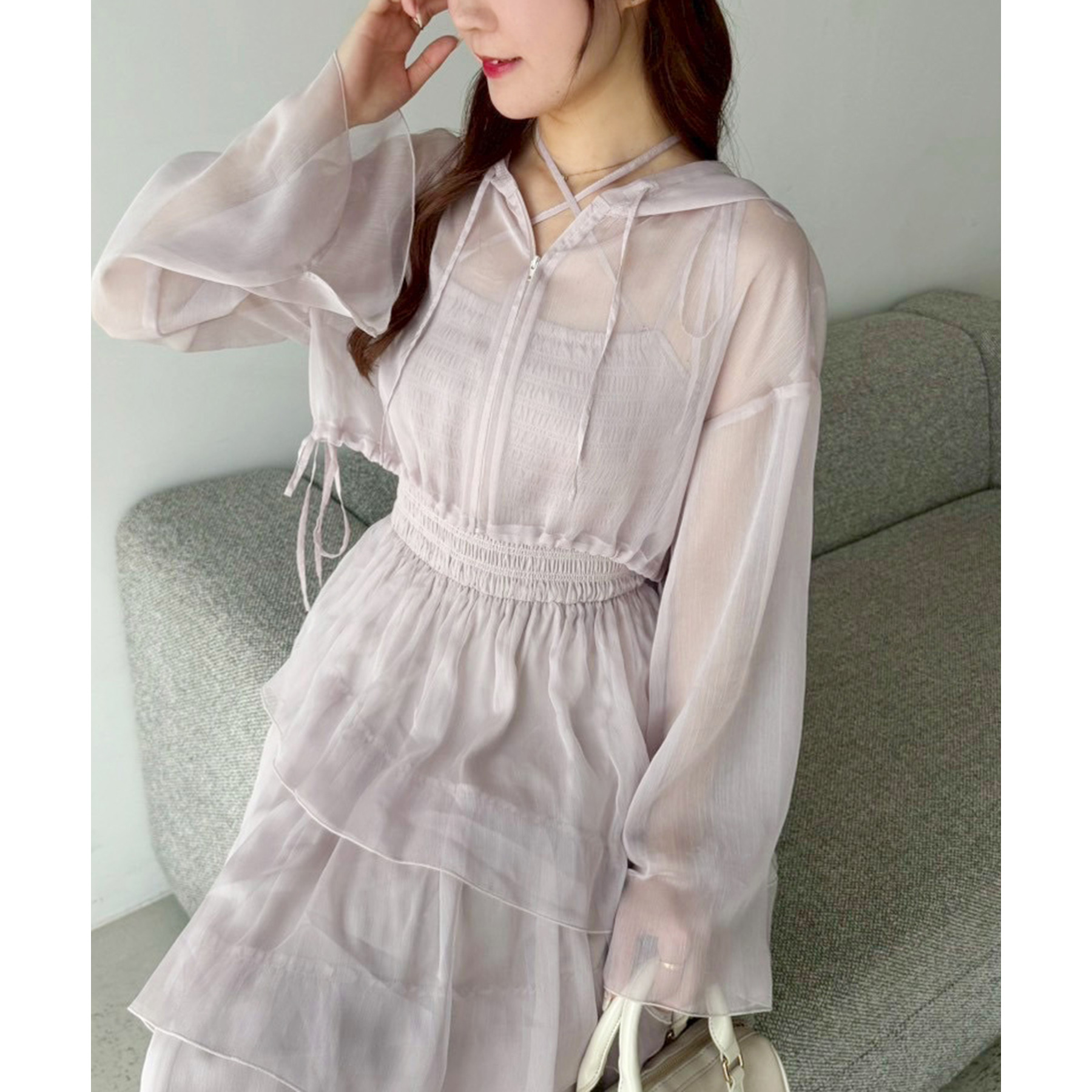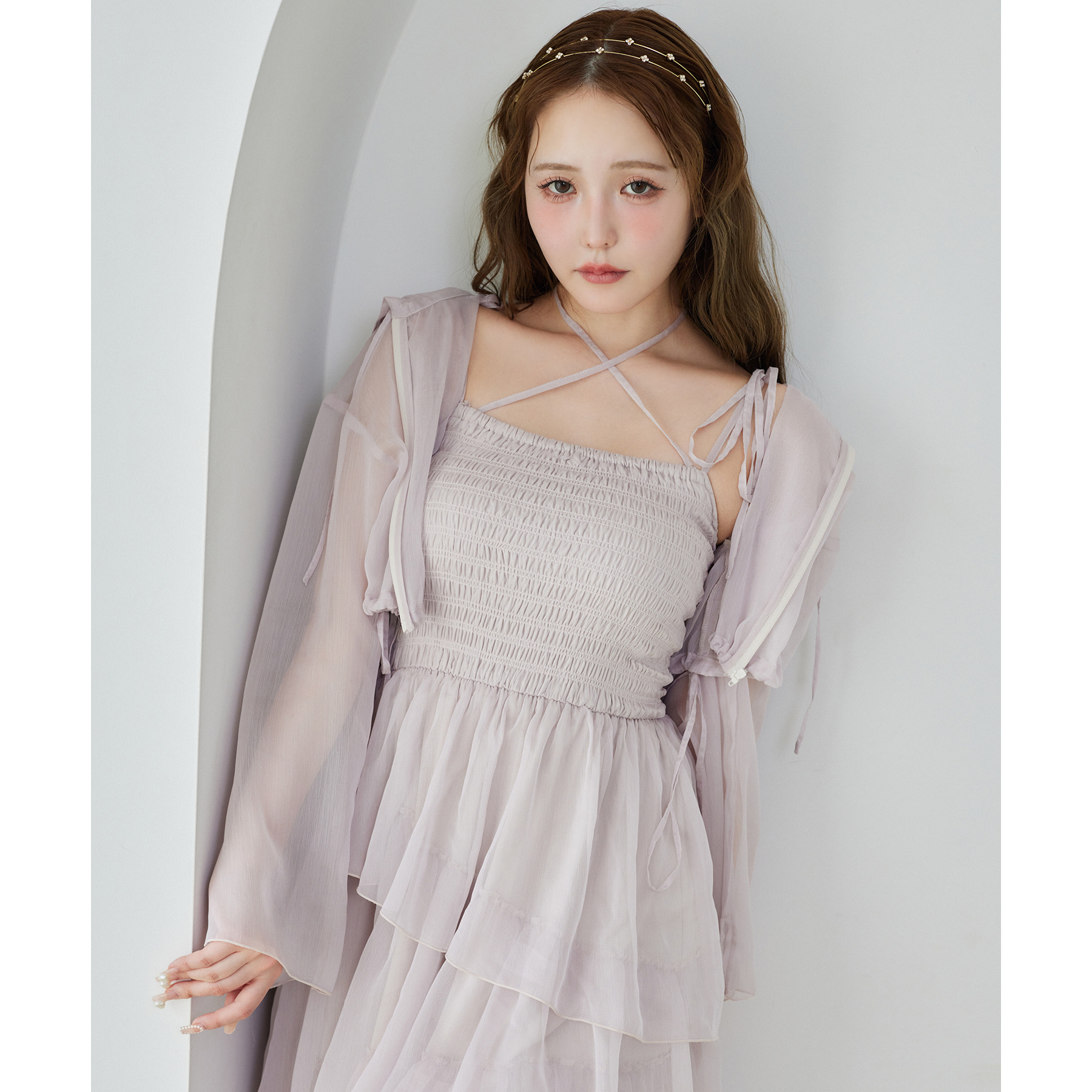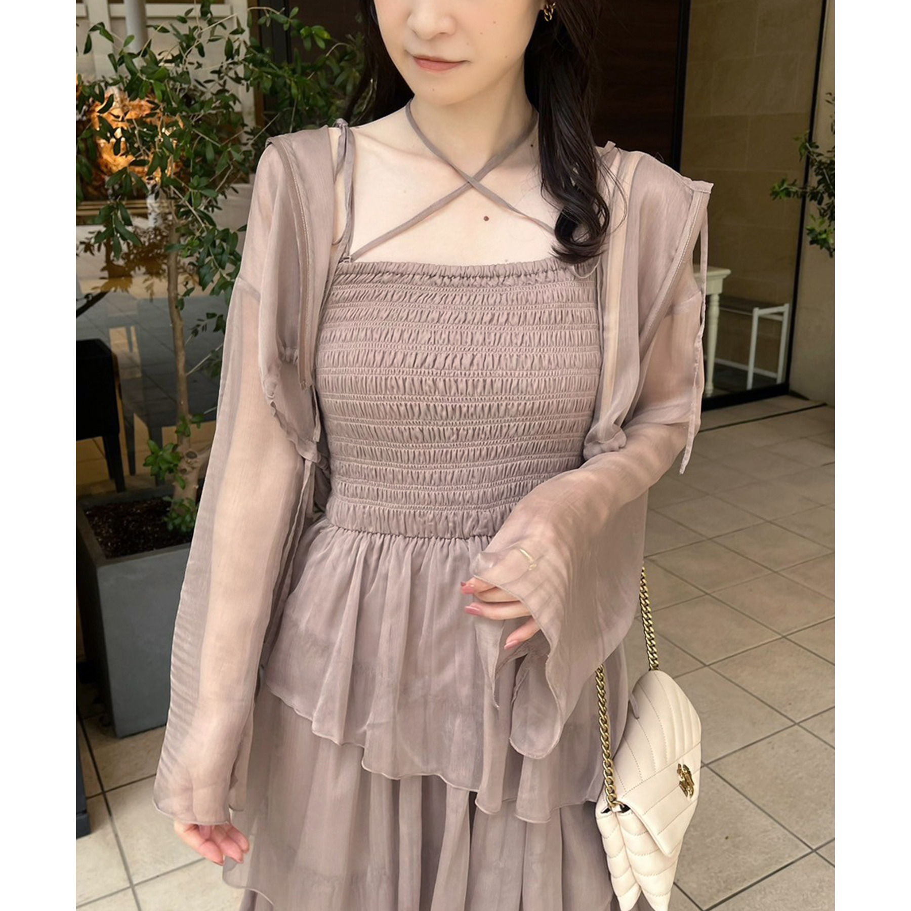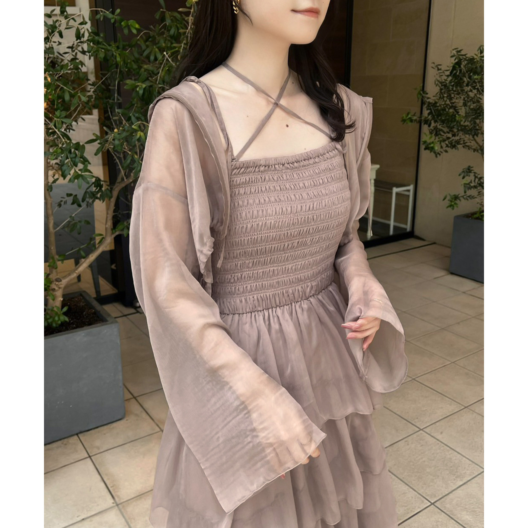 これからの時期はノースリーブのワンピースやキャミソール、ビスチェとの合わせも◎
