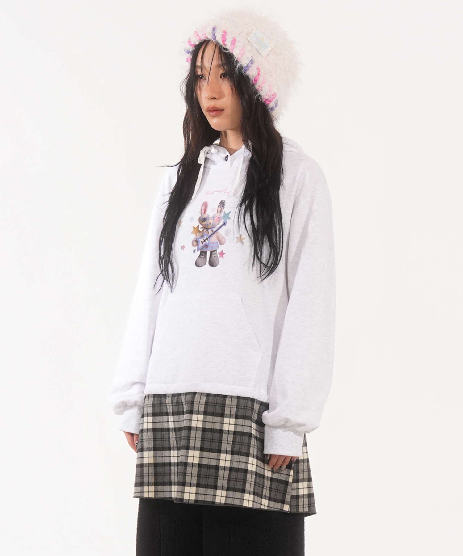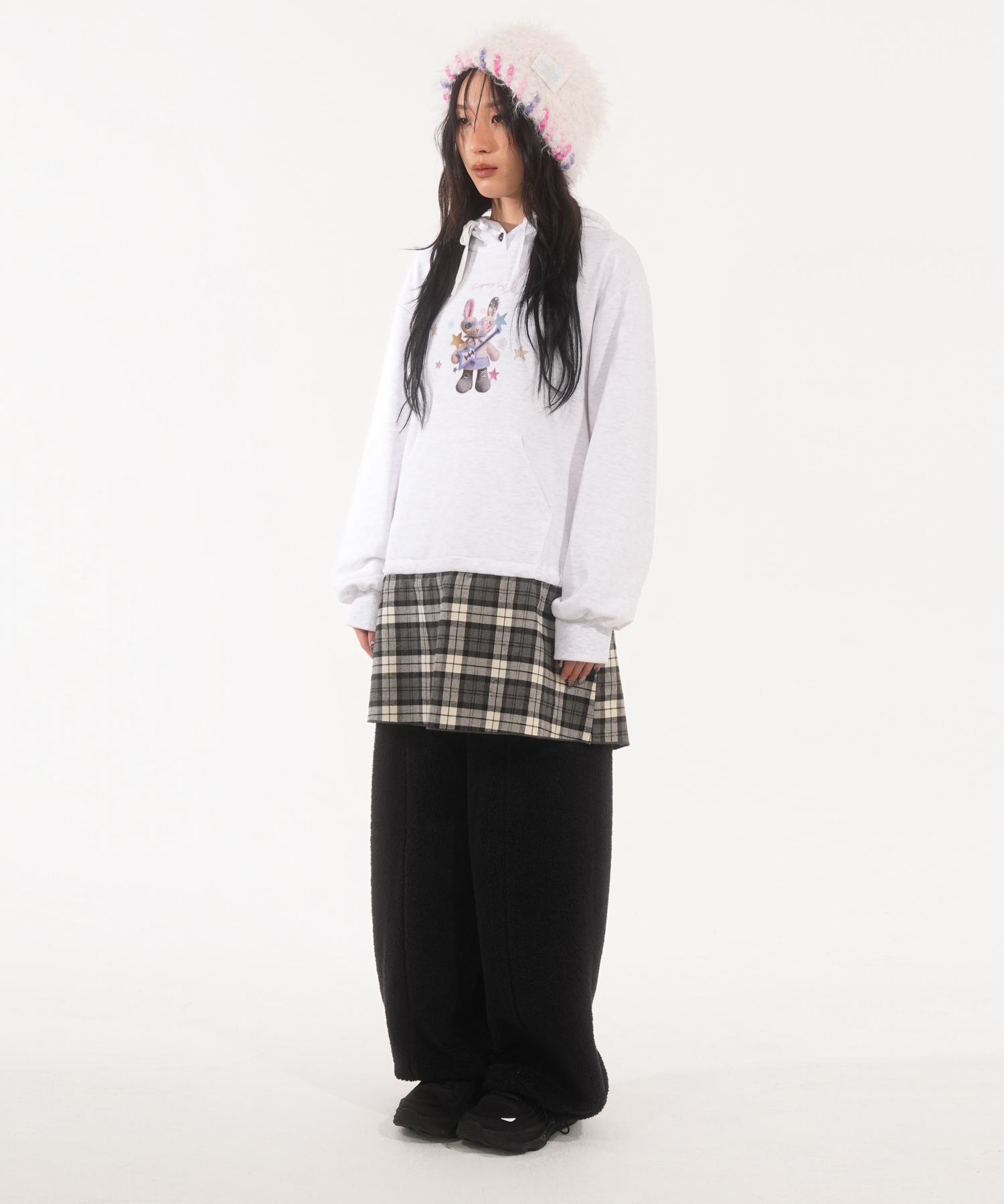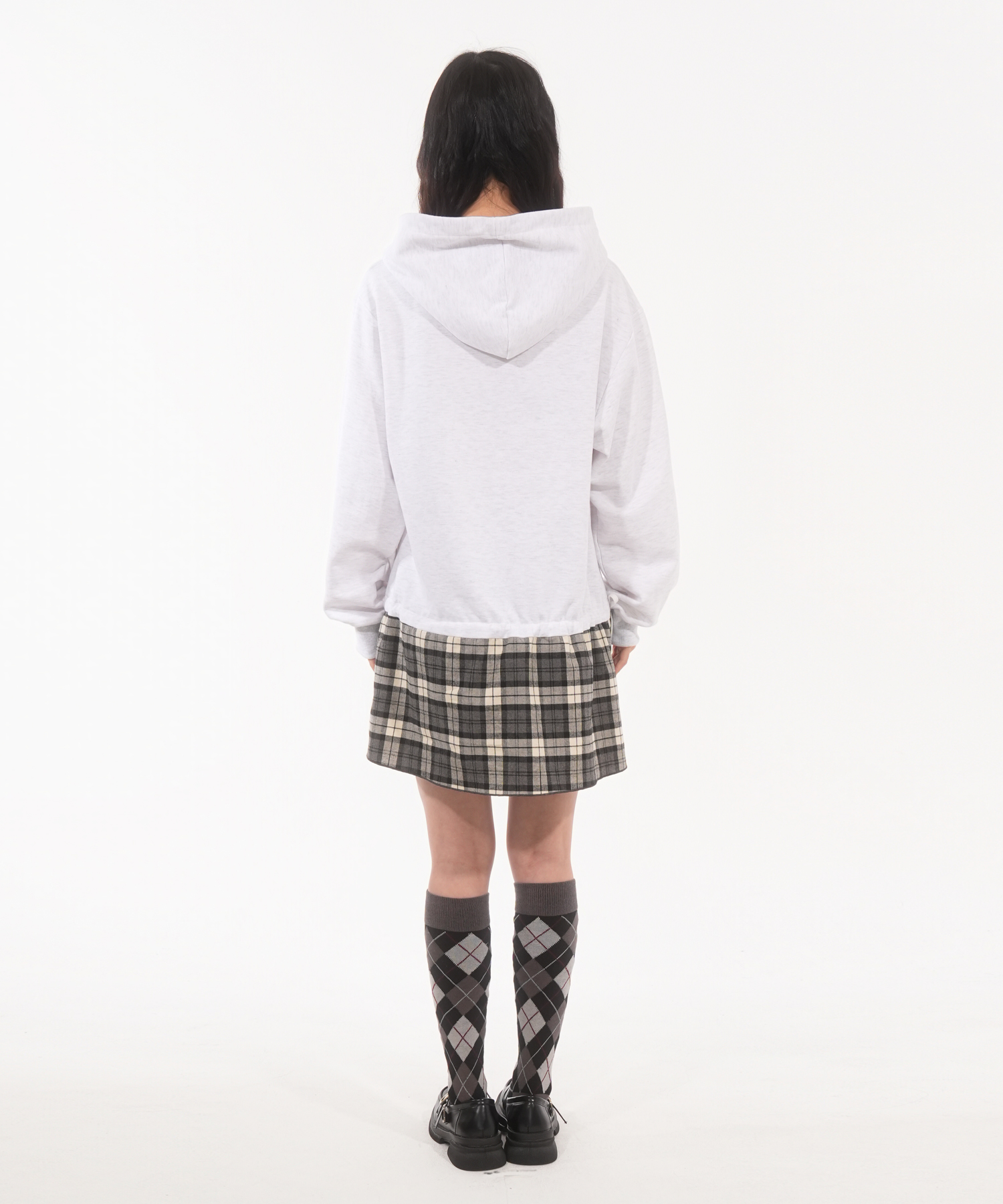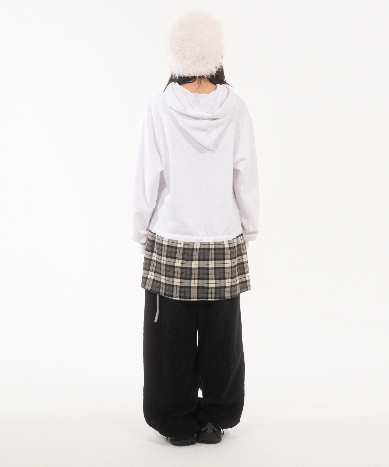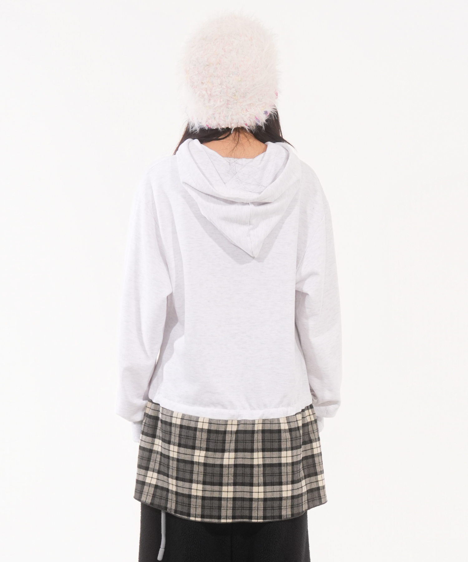 * 오버사이즈 핏의 체크 스커트 후드 원피스