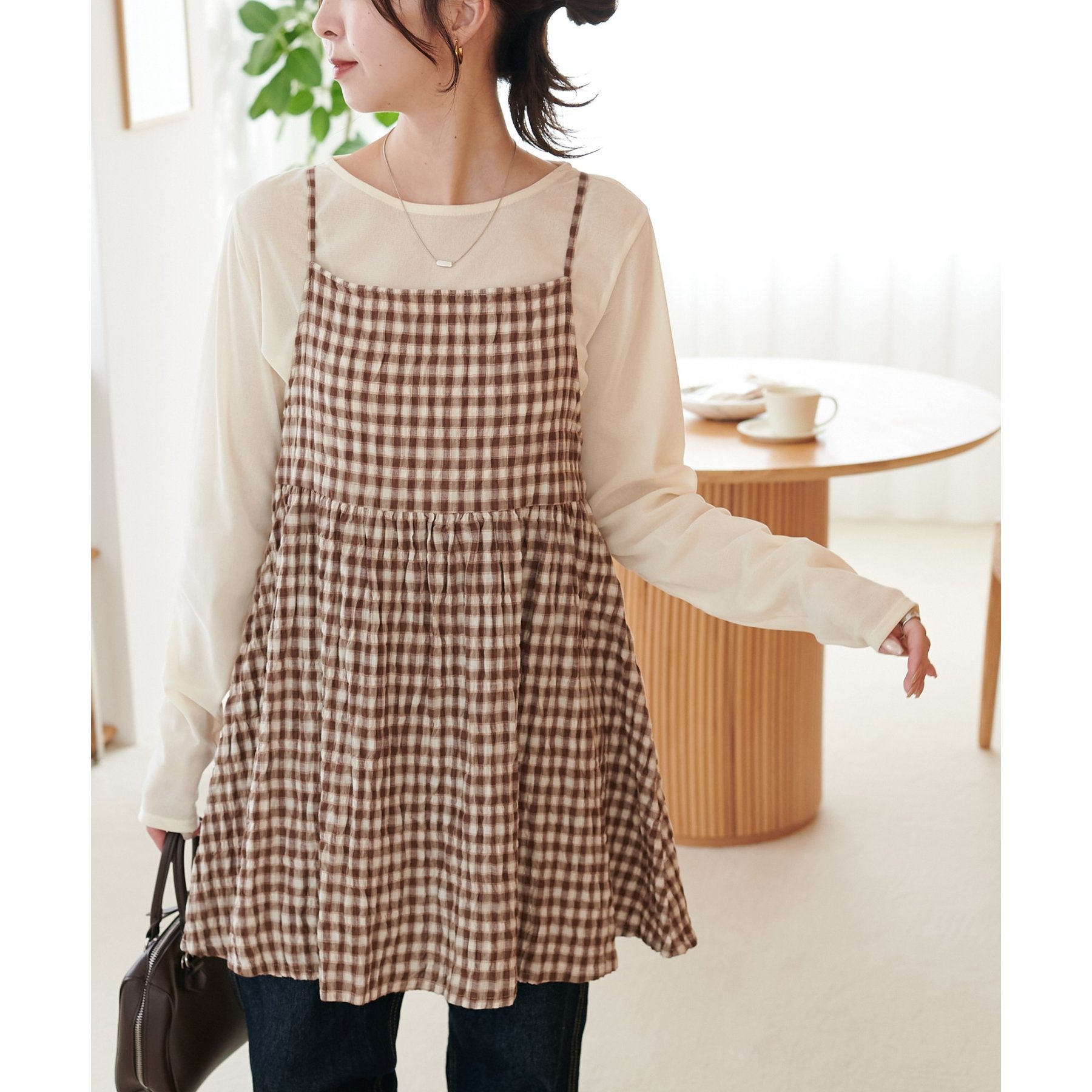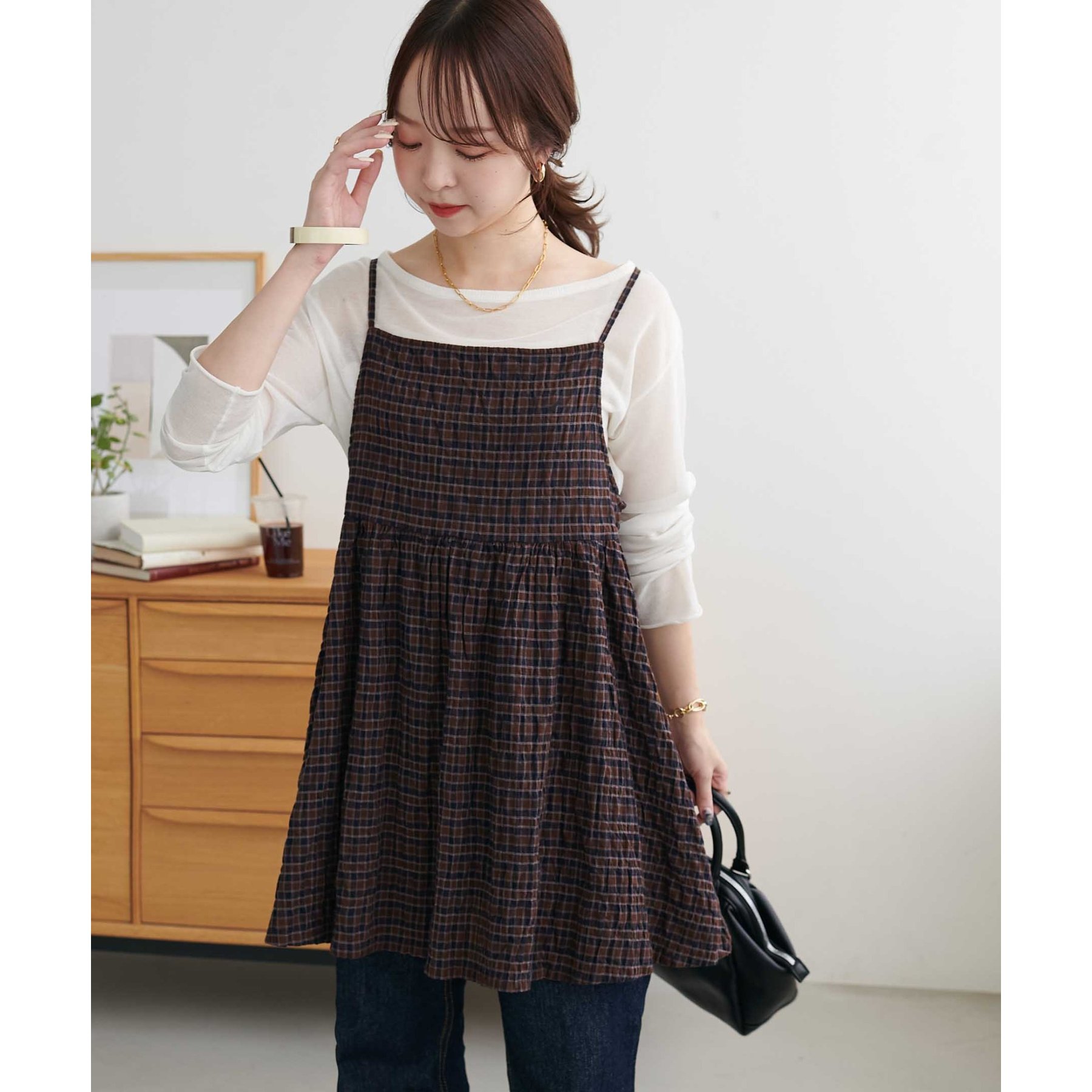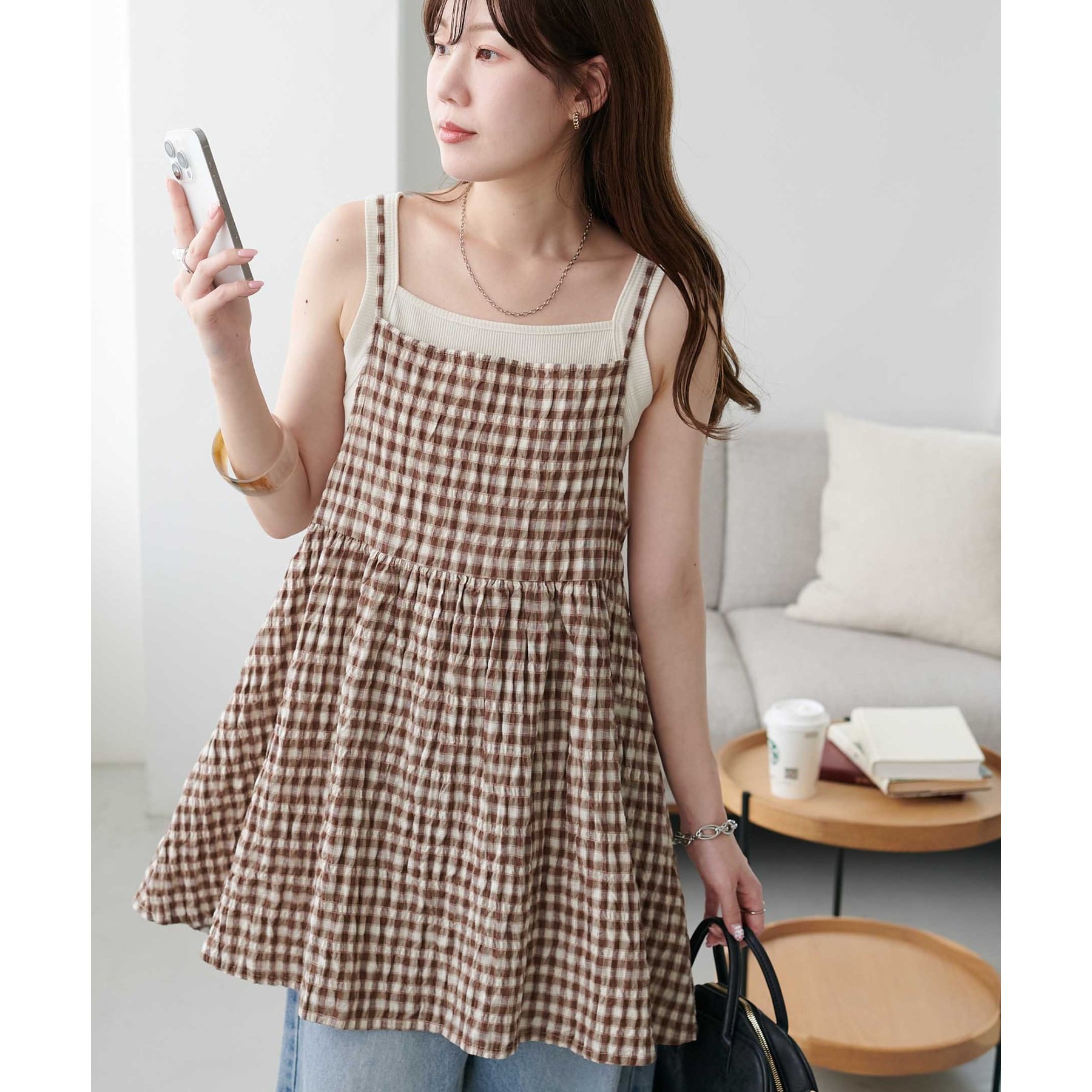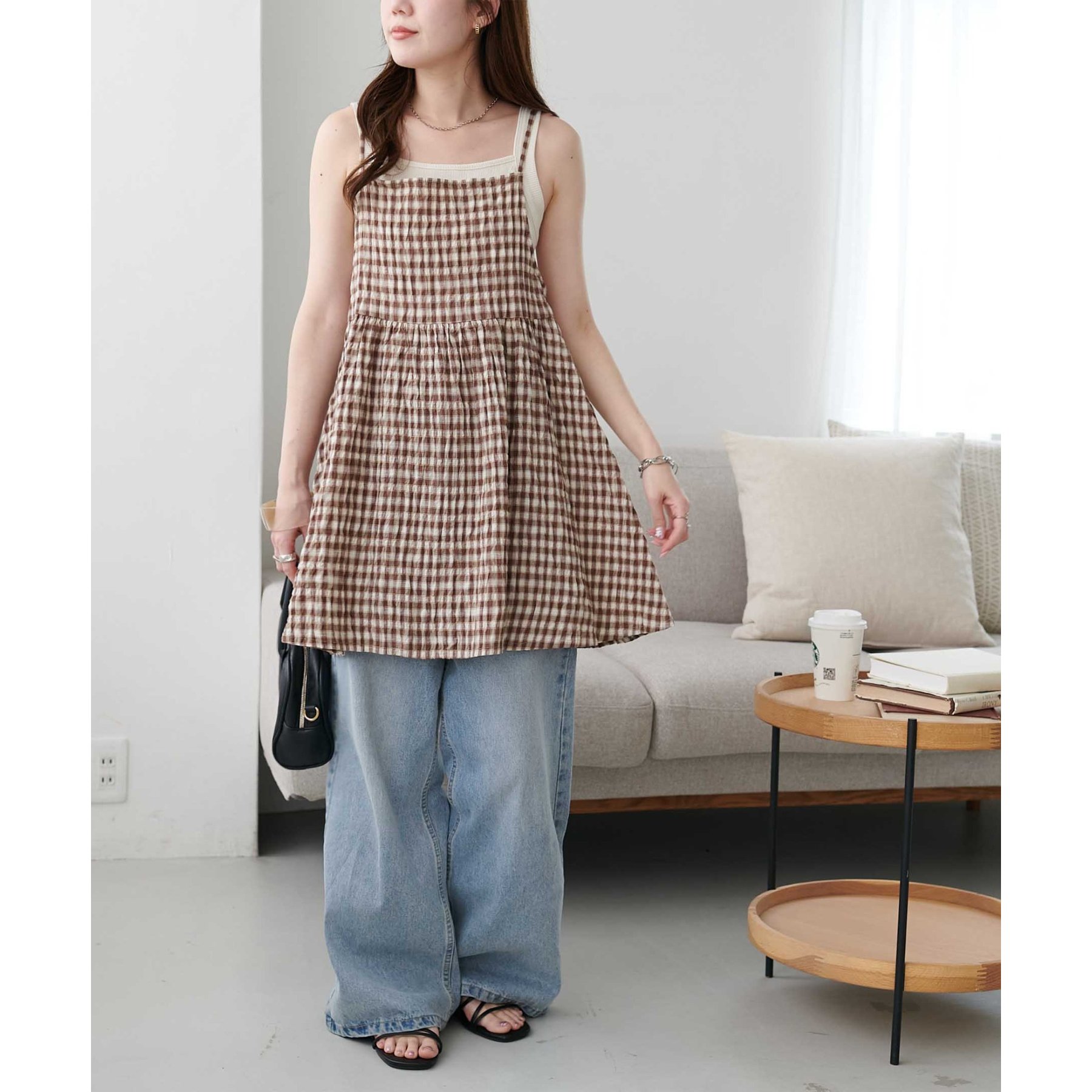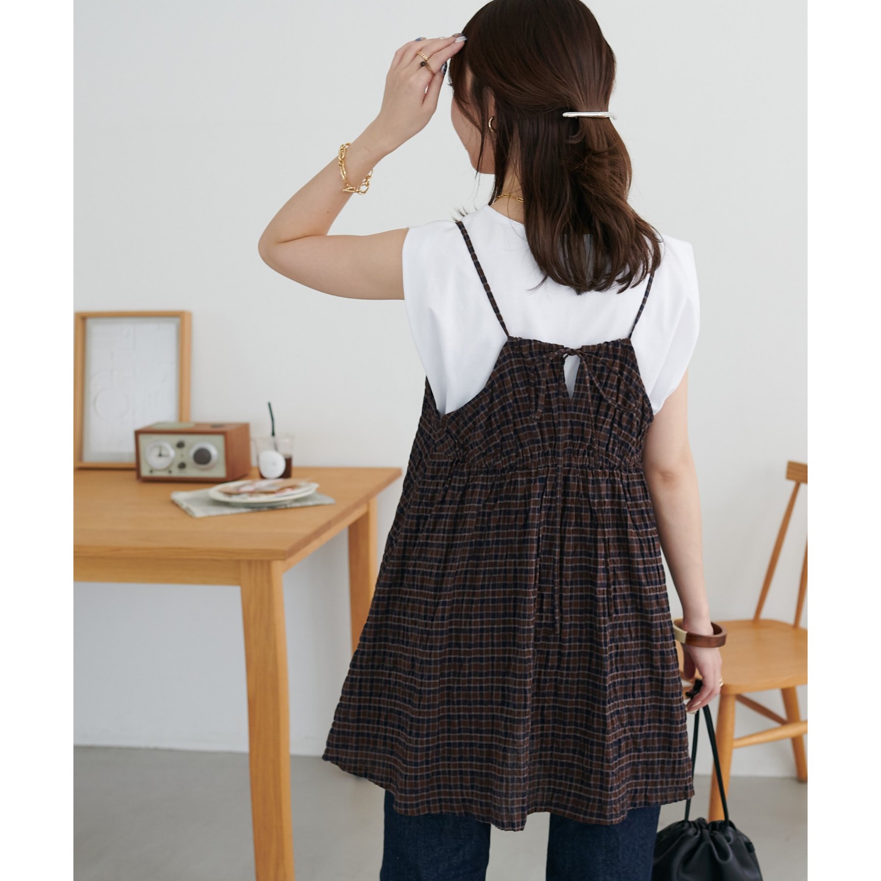 ナチュラルな雰囲気漂う、チェックキャミチュニック