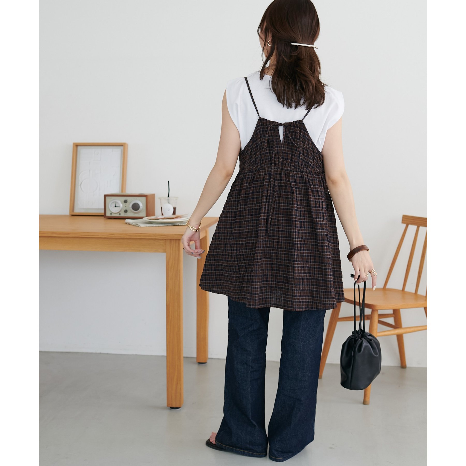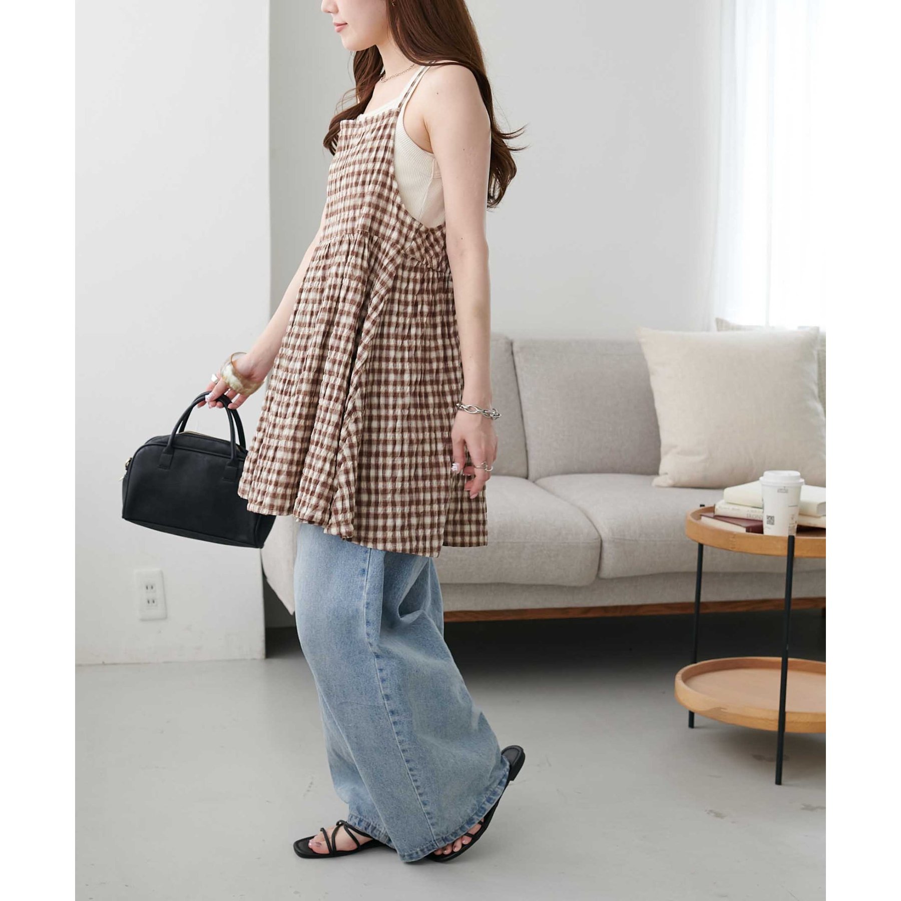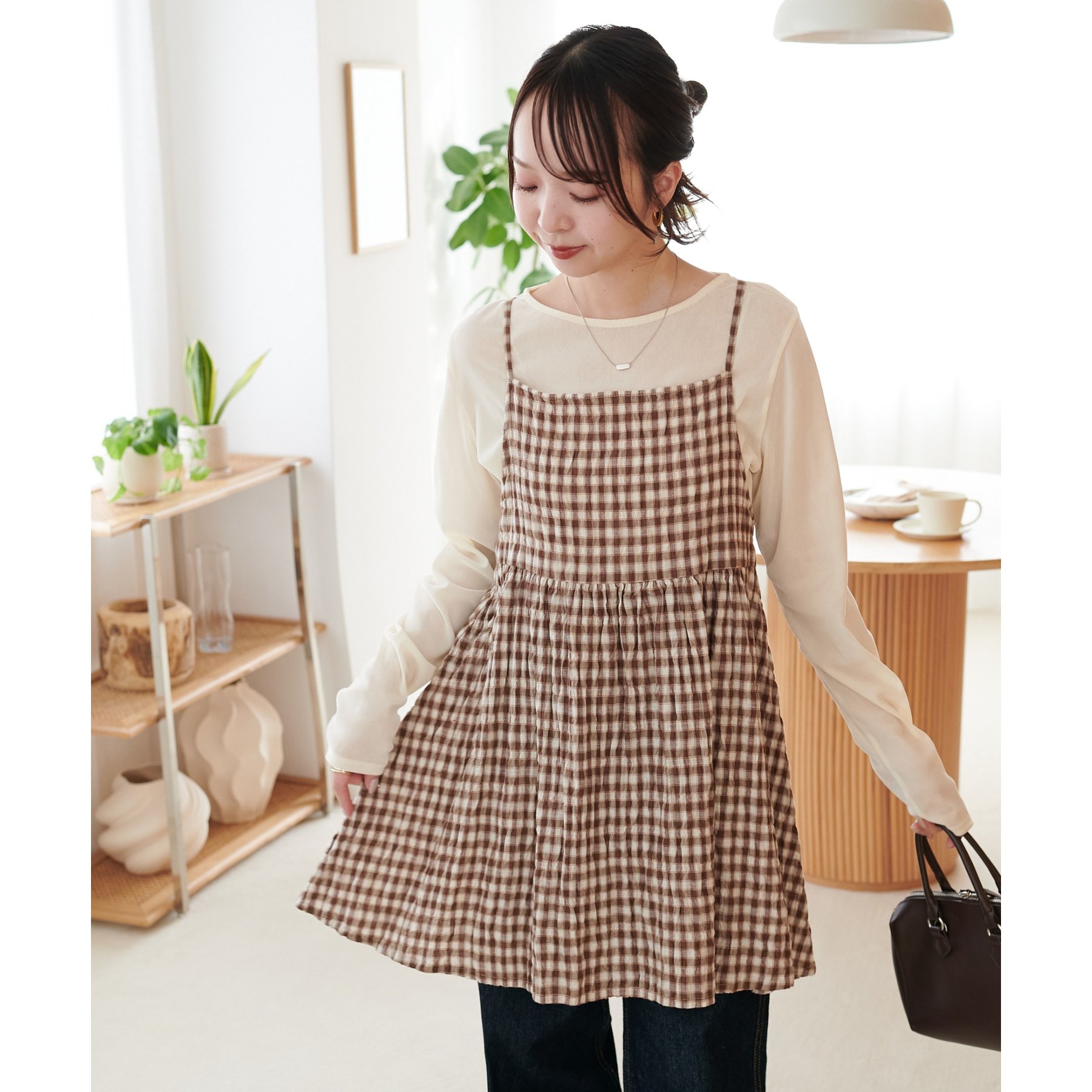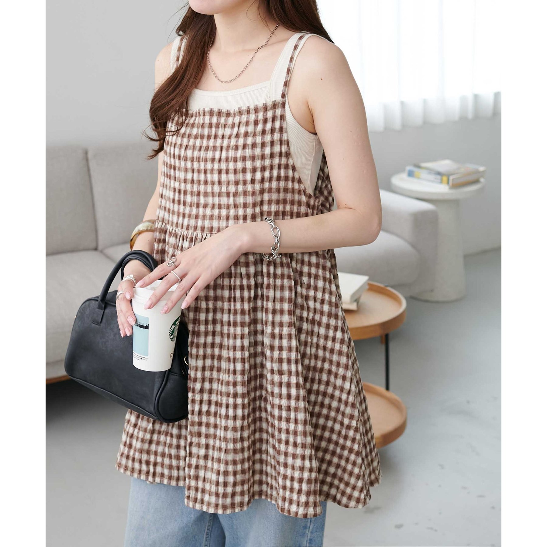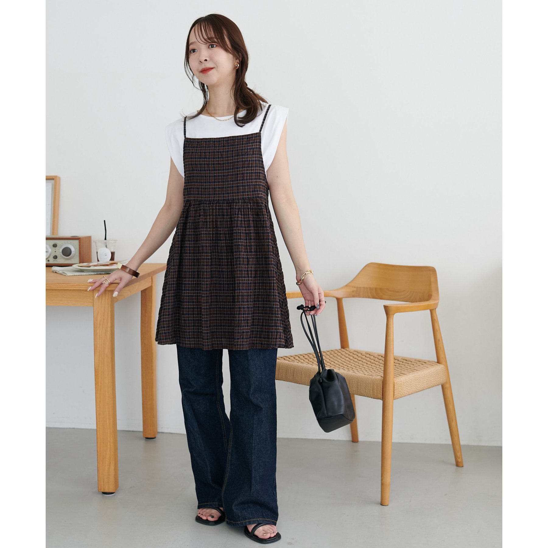 ナチュラルな雰囲気漂う、チェックキャミチュニック