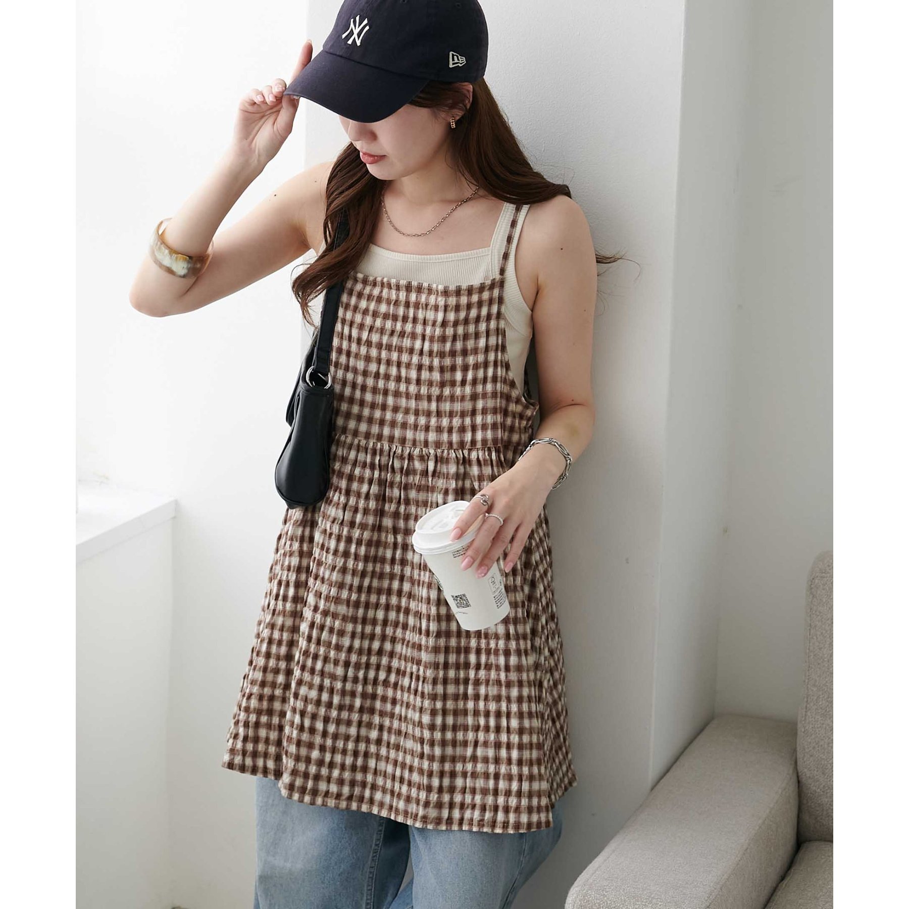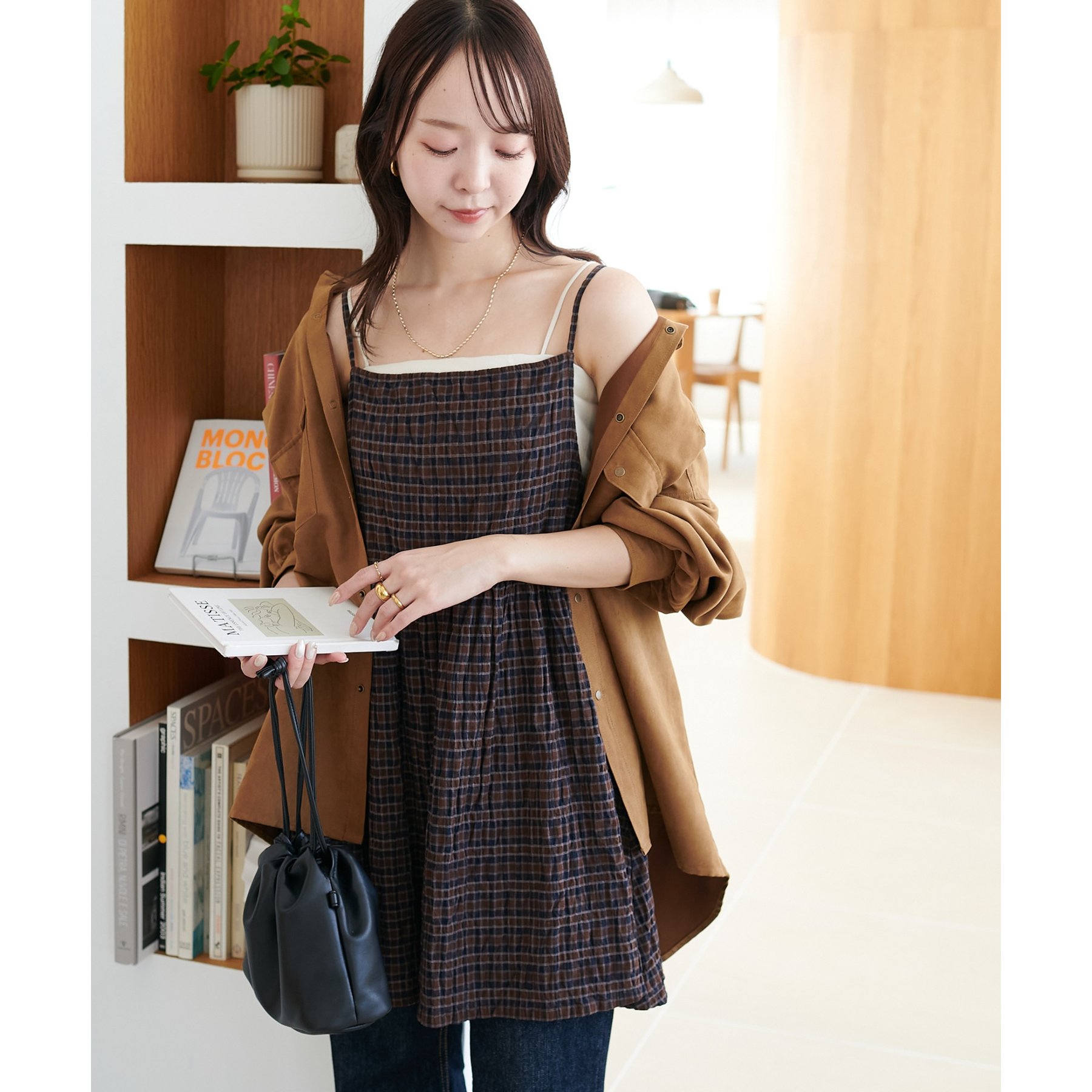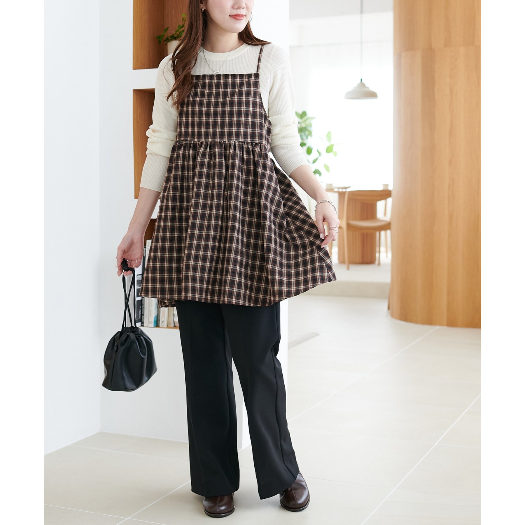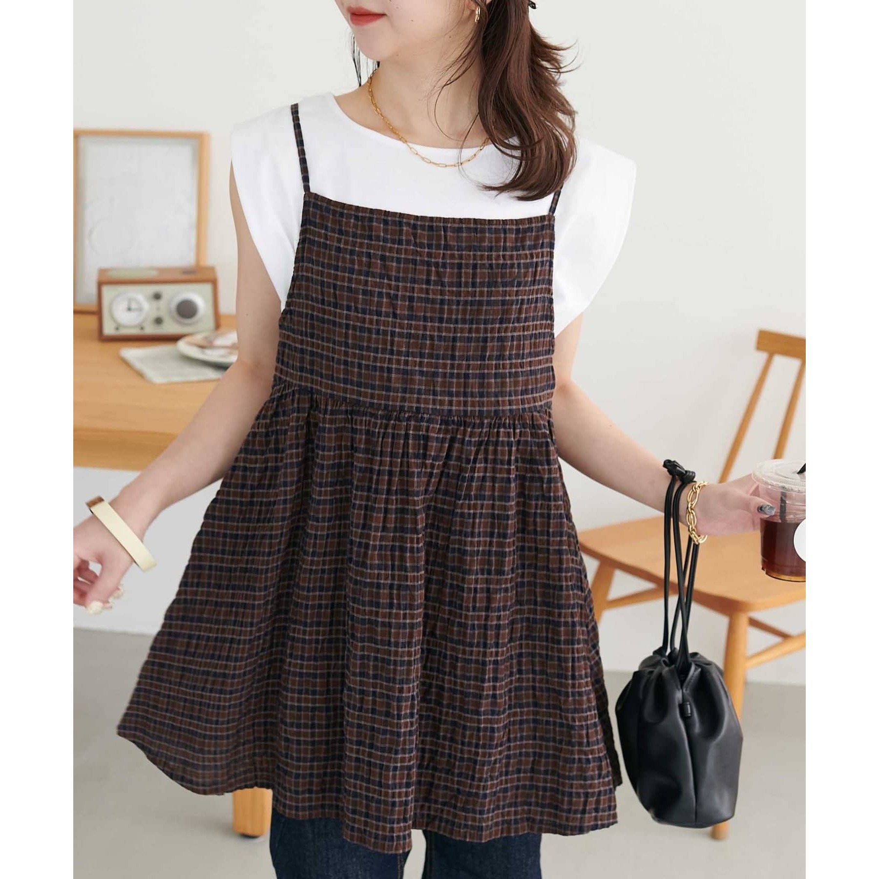 ナチュラルな雰囲気漂う、チェックキャミチュニック