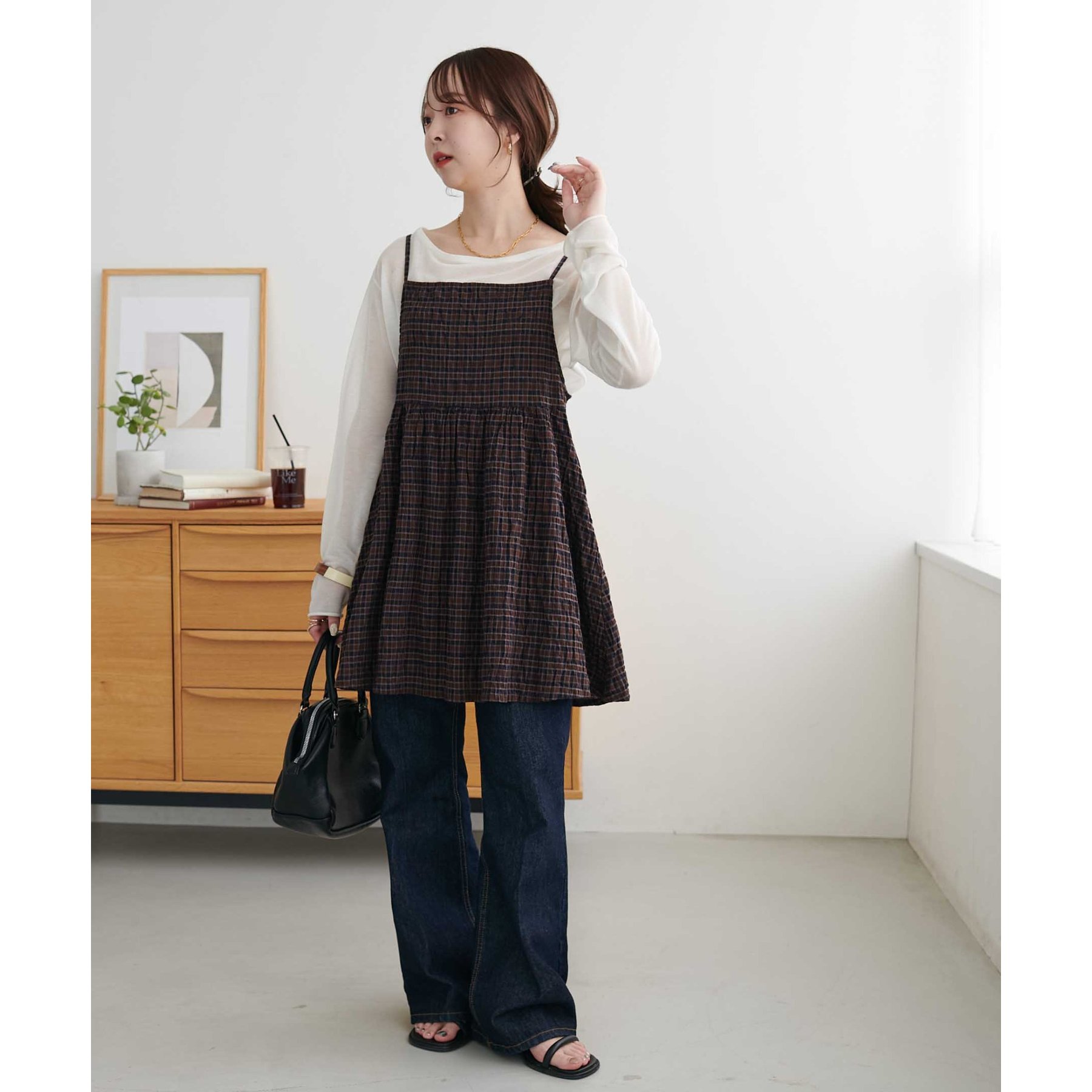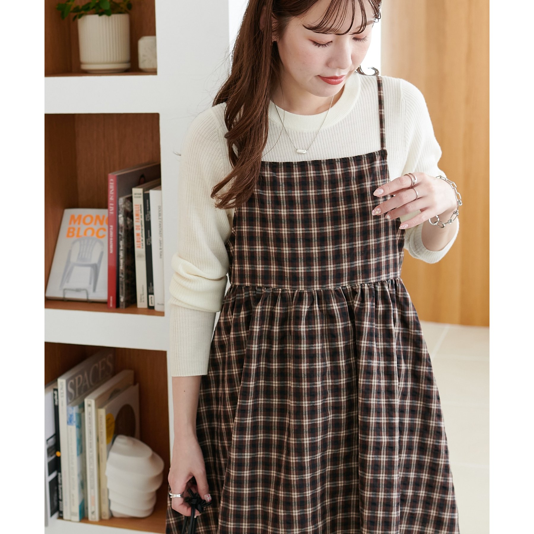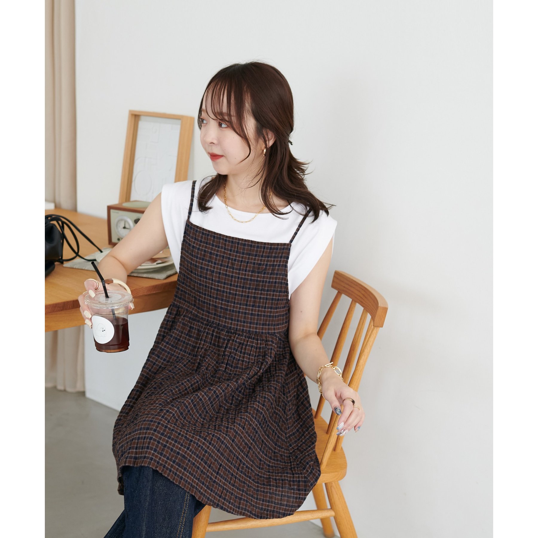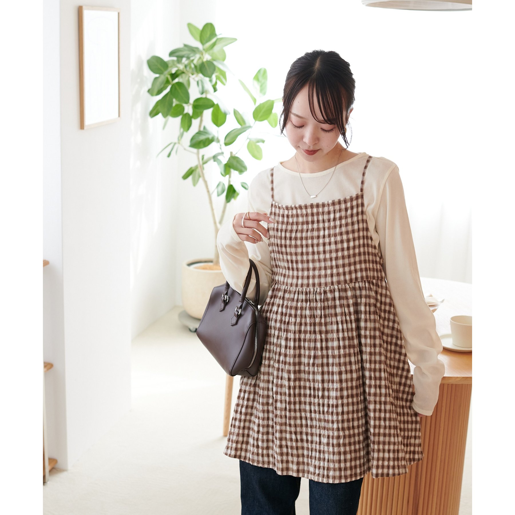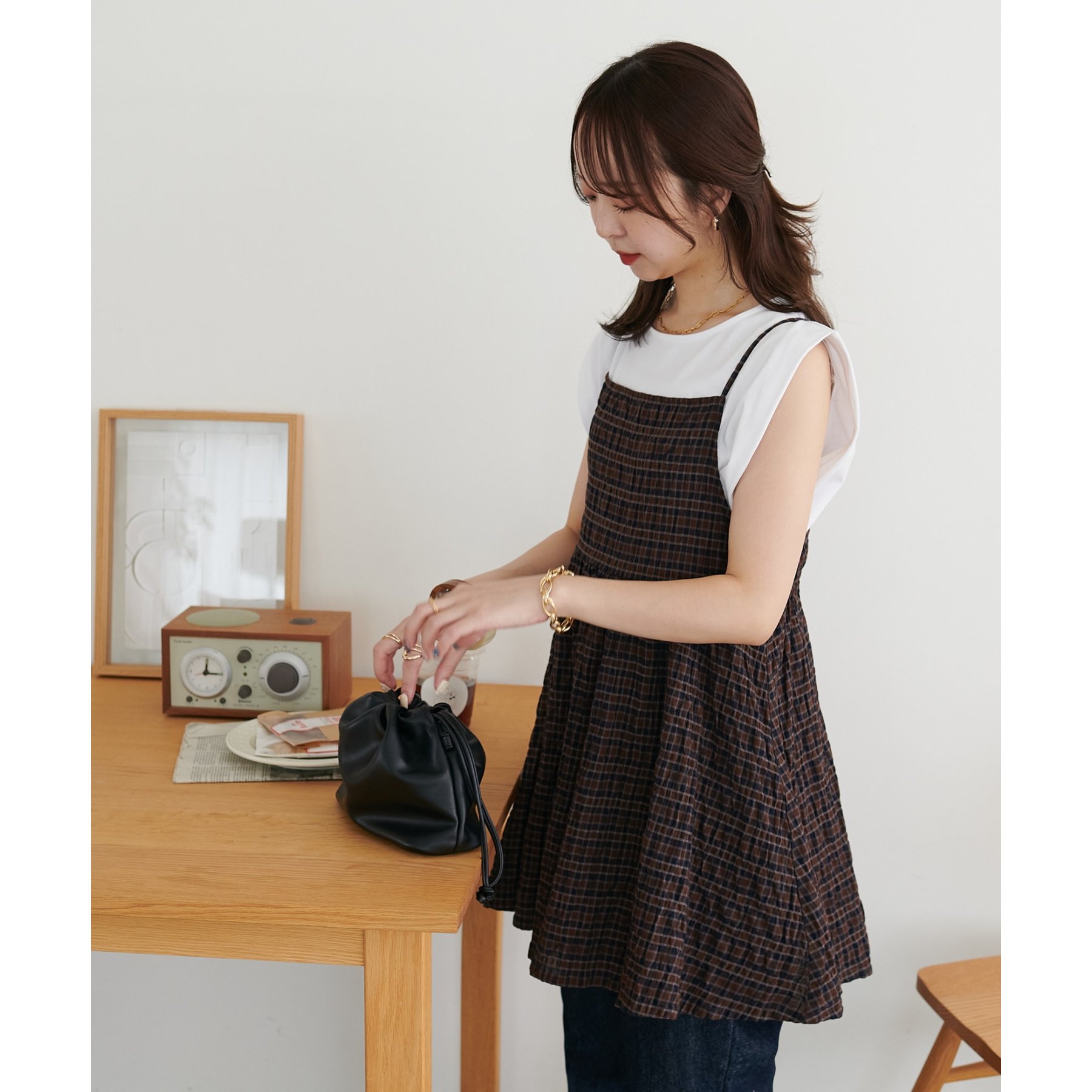ナチュラルな雰囲気漂う、チェックキャミチュニック