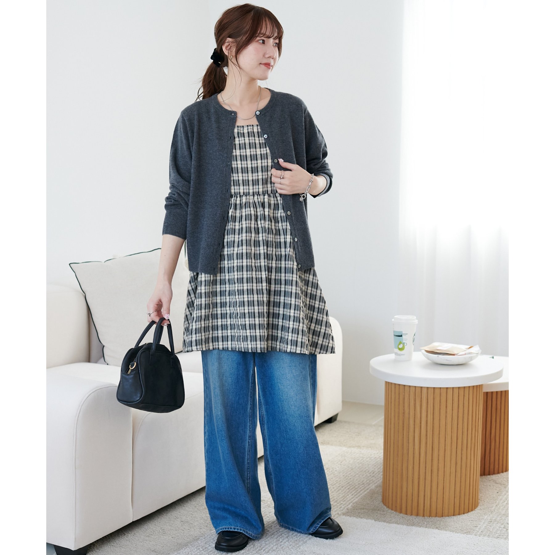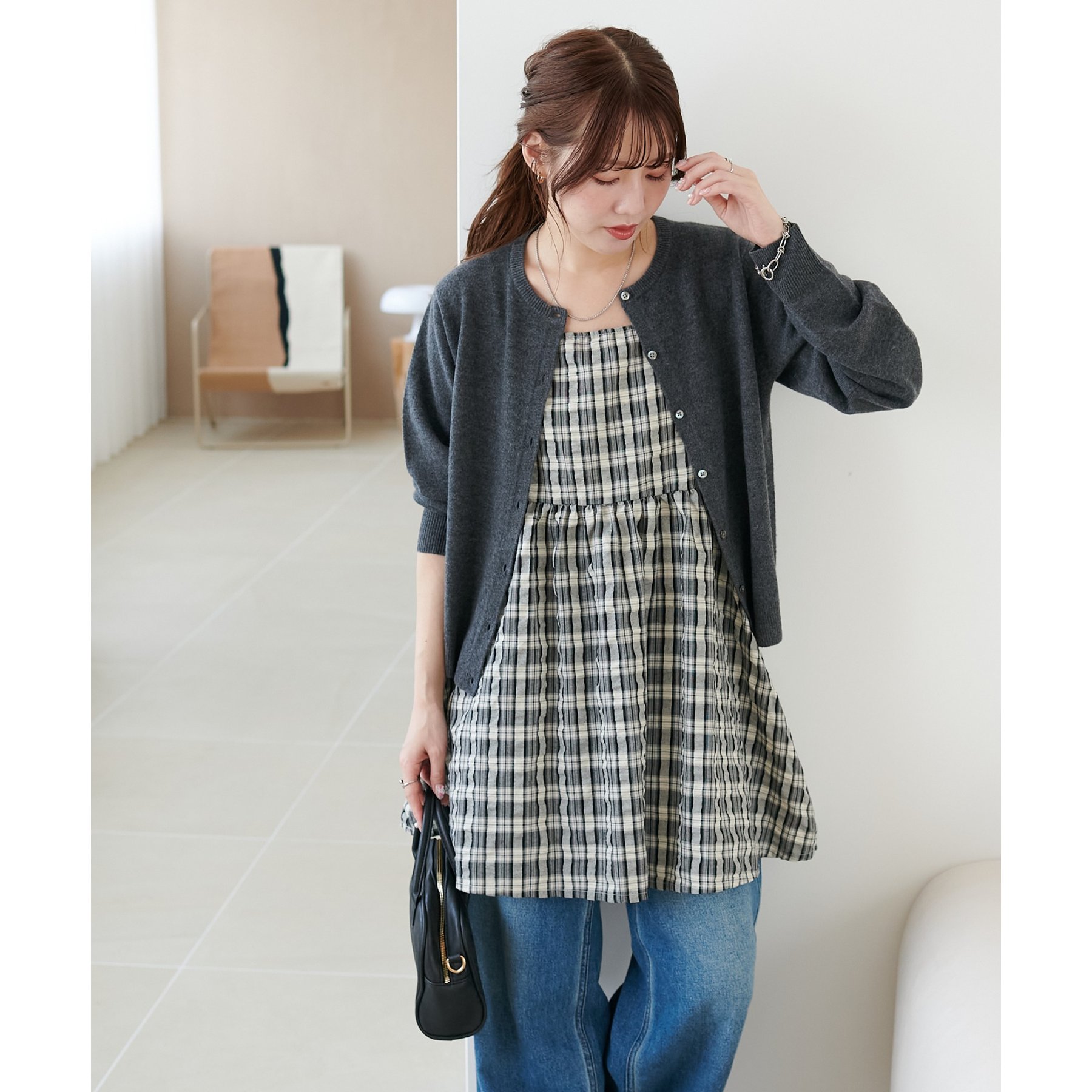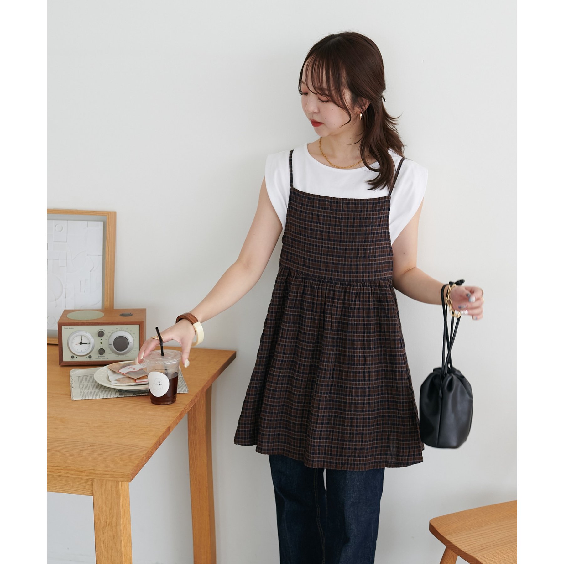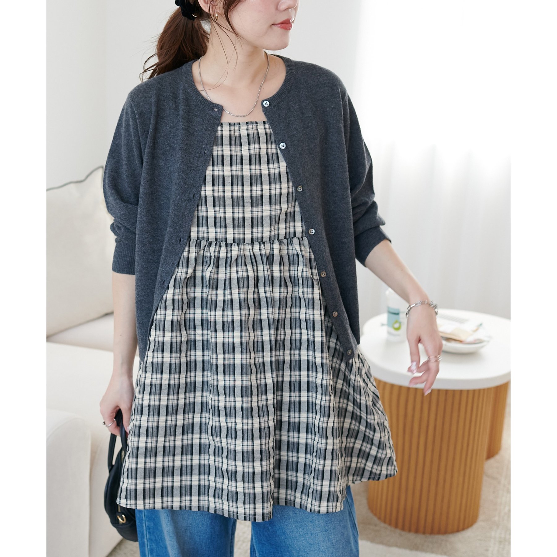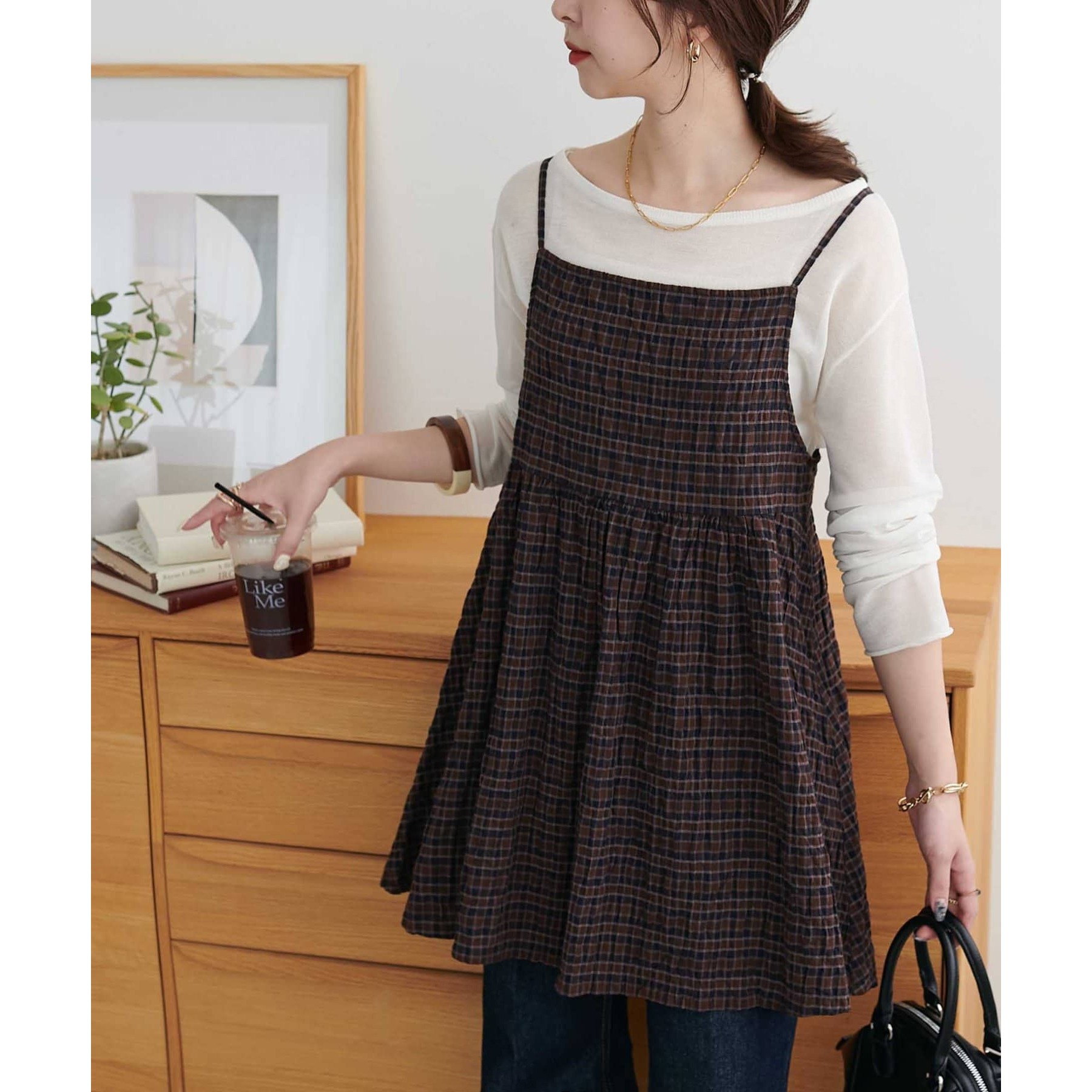 ナチュラルな雰囲気漂う、チェックキャミチュニック