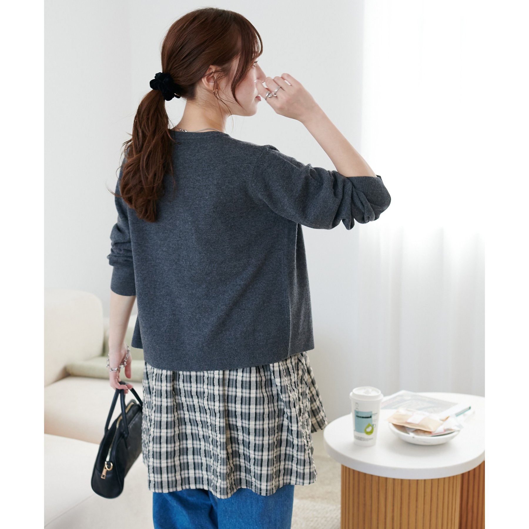 秋口にはインナーを長袖に変えて、ジャケットやカーディガンを羽織ることでロングシーズン活躍できます◎