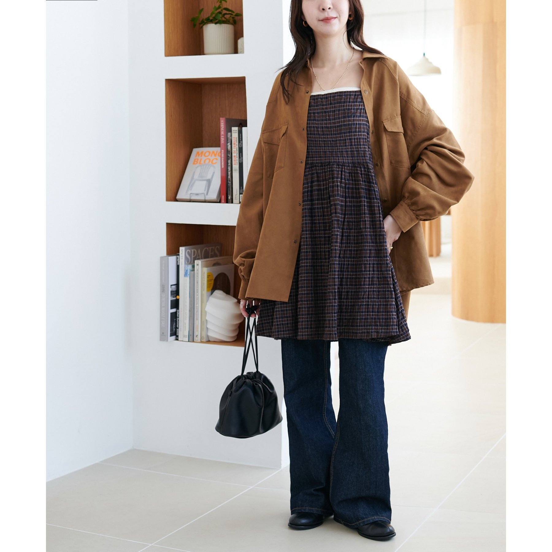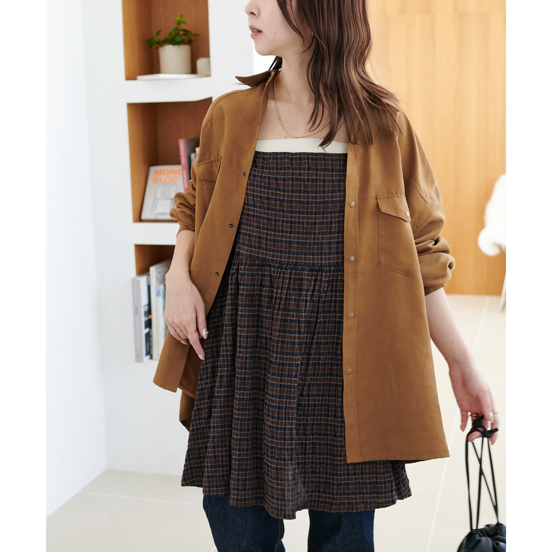 【新色追加!】シャーリングチェックキャミチュニック