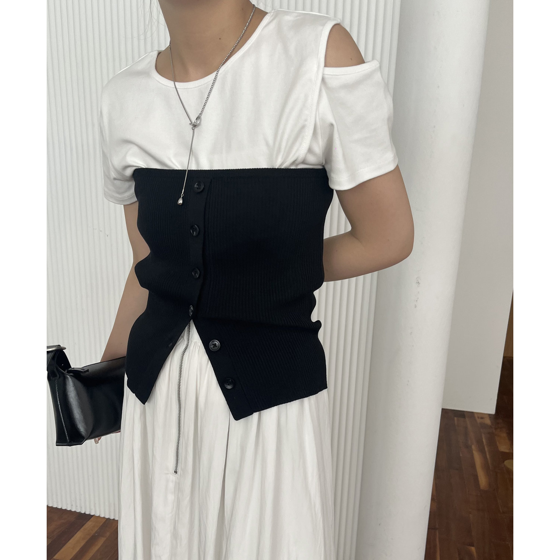 【ホワイト着用アイテム①】ビスチェSETアシメTシャツ