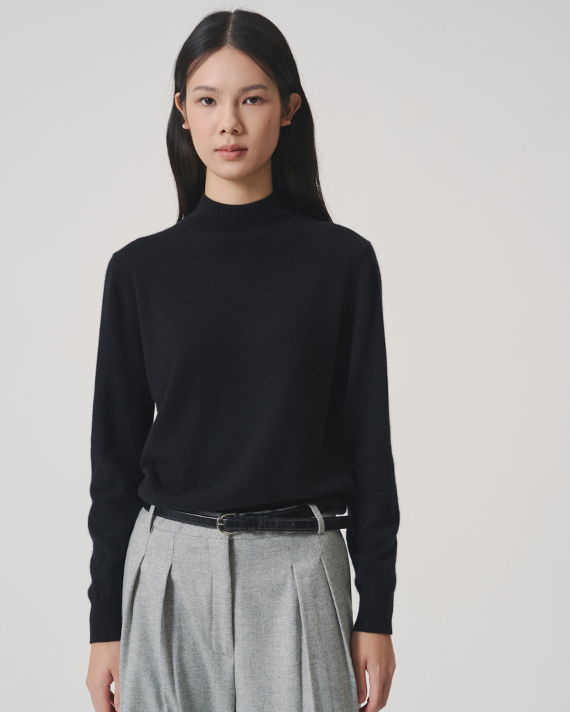 [UNISEX] Cashmere Essential Blend Mock Neck Black_W