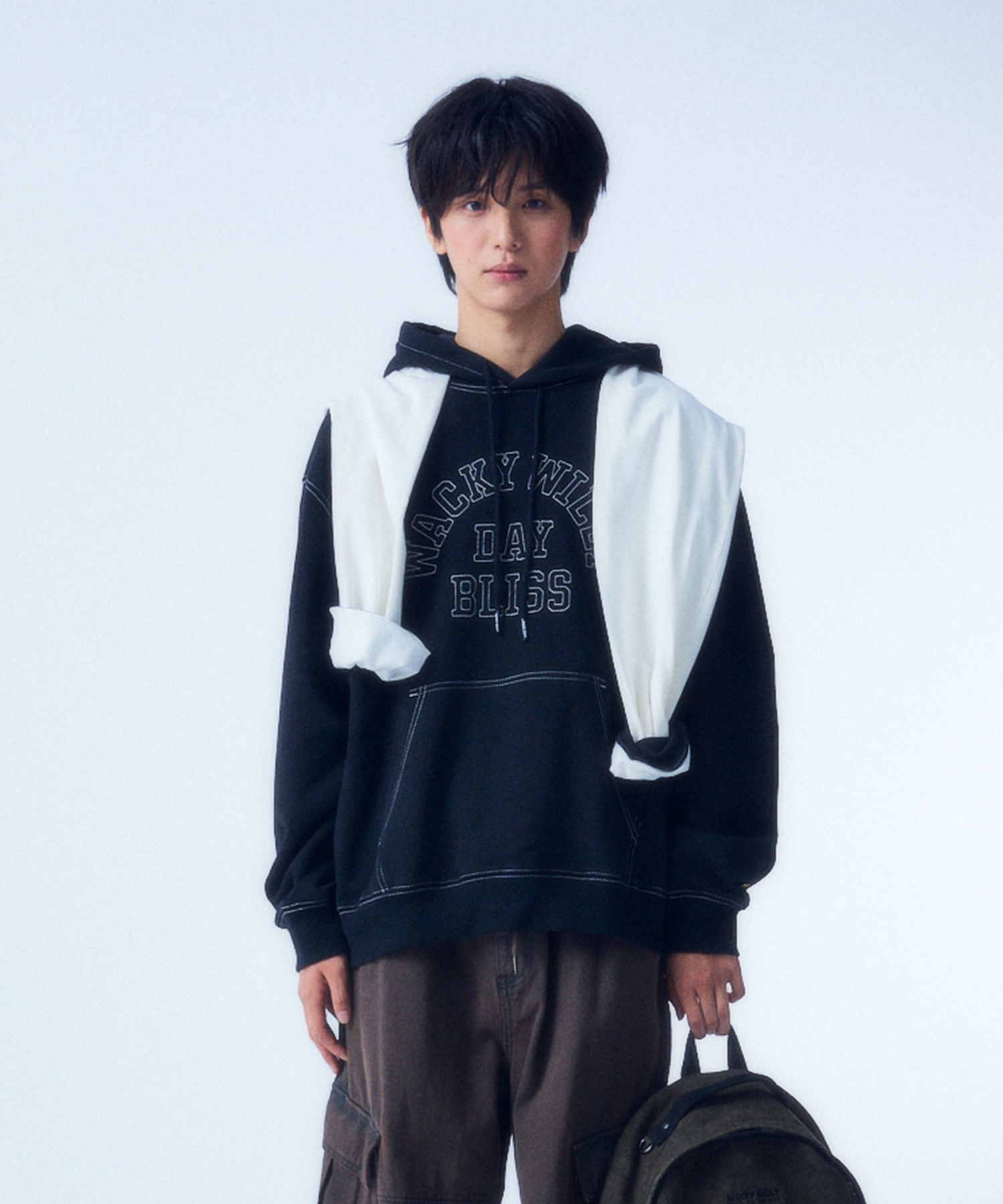 Typographic Stitch Hooded Sweatshirt in Black