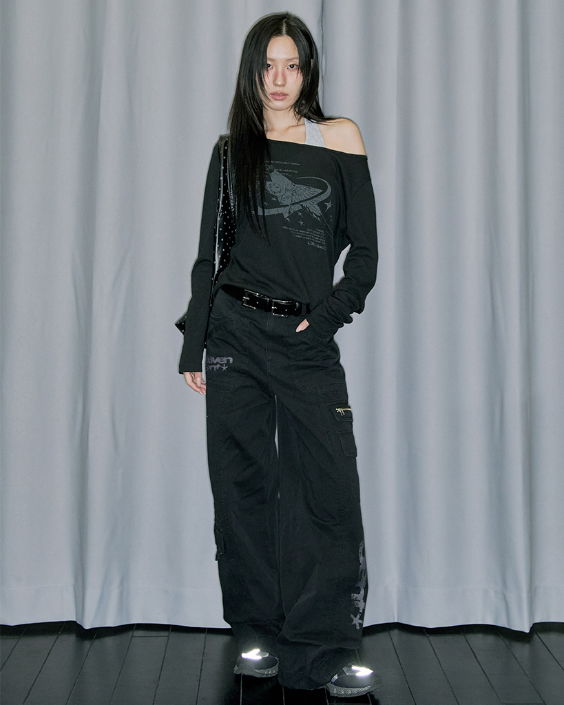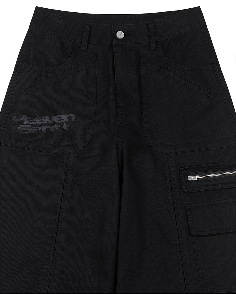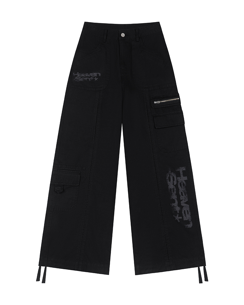 Heaven Sent Graphic Cotton Cargo Pants - BLACK