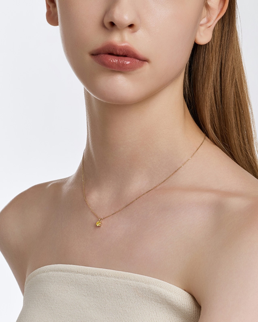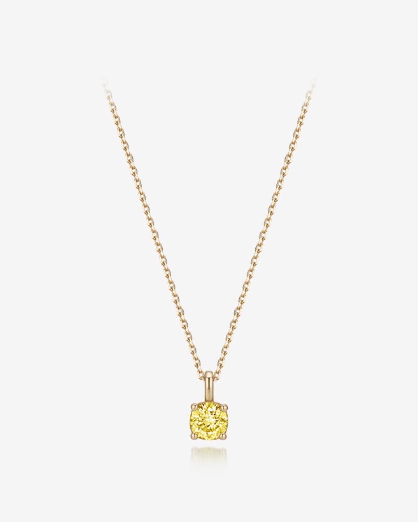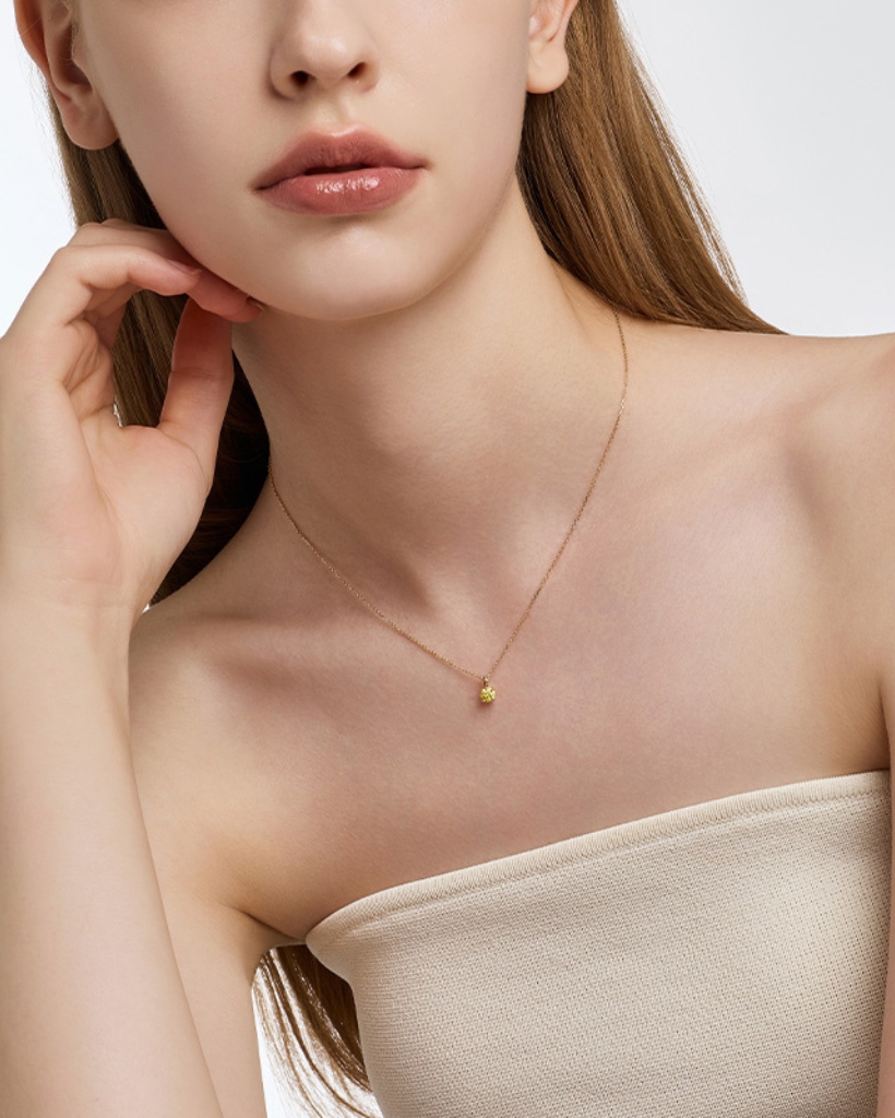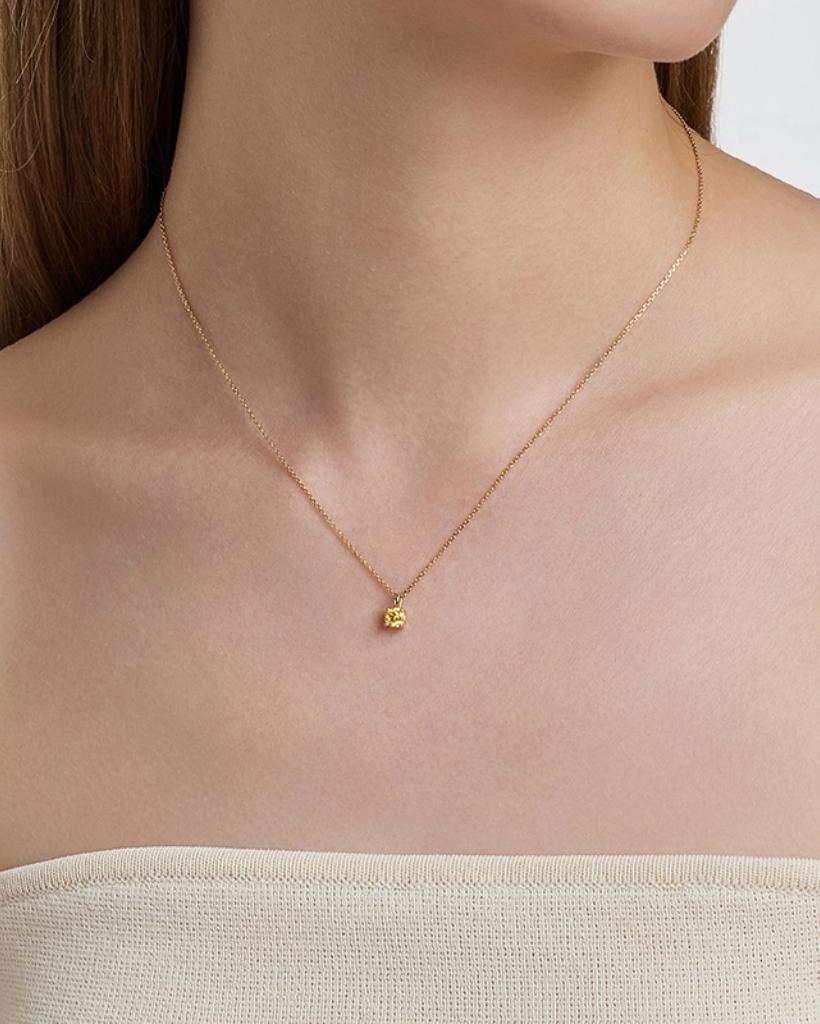 ホリデーの眩しい光を込めた3部イエローラップグロウンダイヤモンドをセットしたソリティアネックレスです。