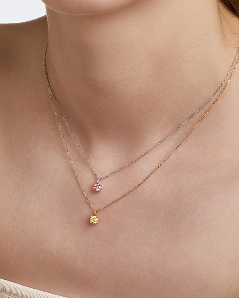光の角度と肌のトーンによって違うキラキラカラーのダイヤモンドが魅力的で、