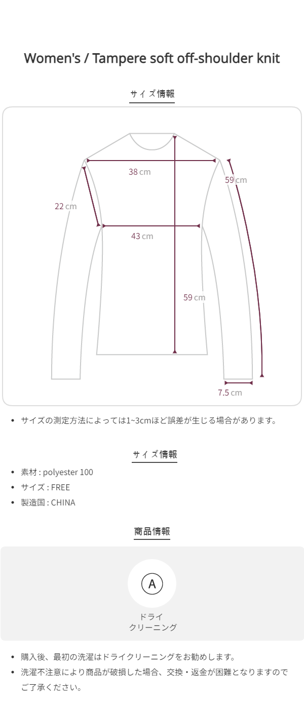 HEIGHT 168cm / BUST 81cm / WAIST 58cm / HIP 83cm