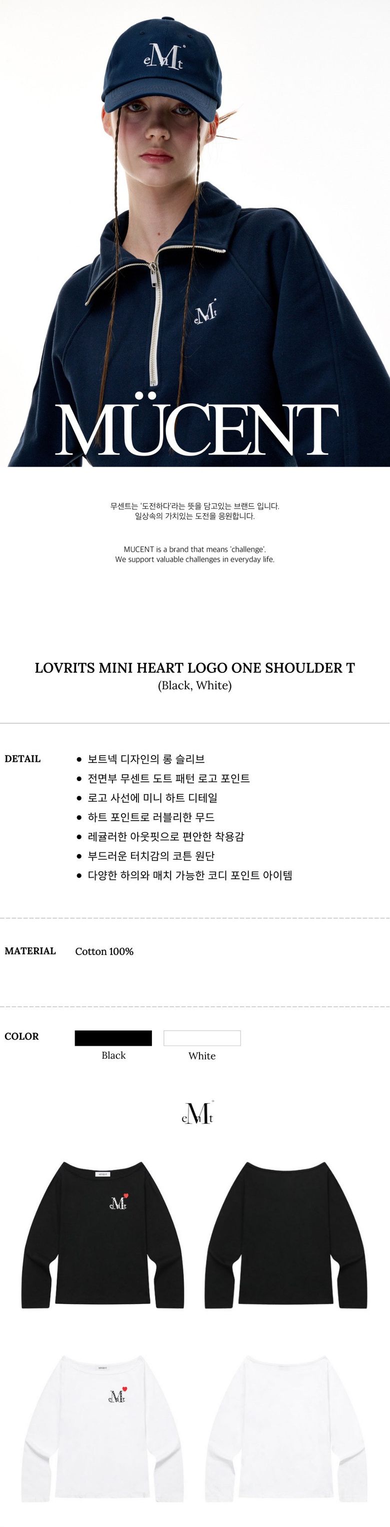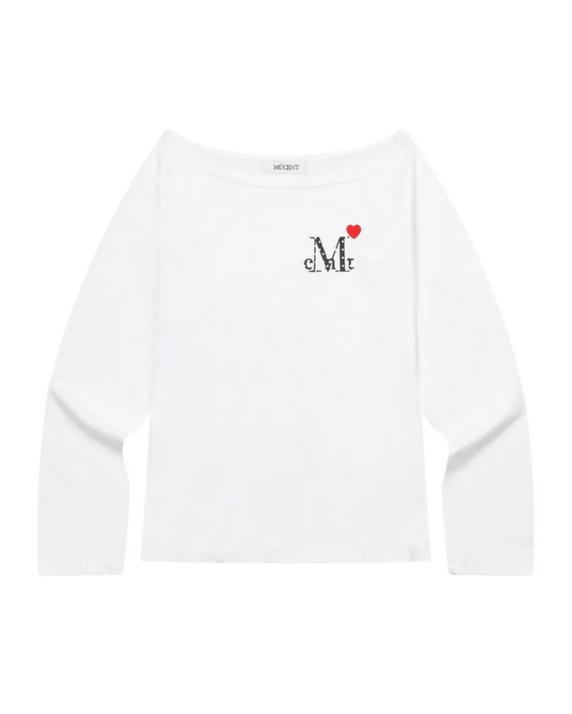 Lovelits Mini Heart Logo One-Shoulder Long-Sleeve Tee (2 Colors)