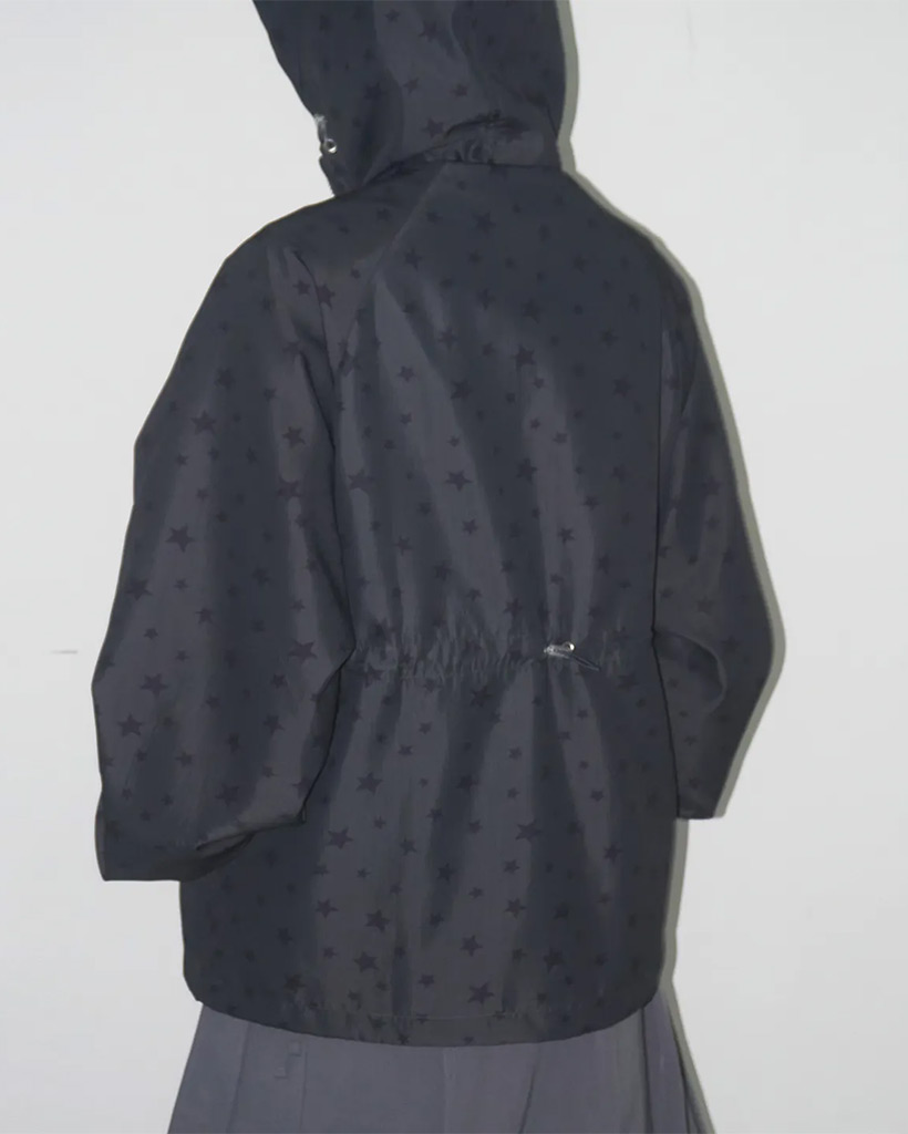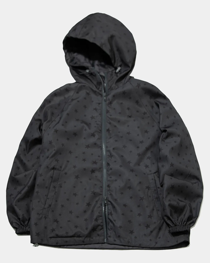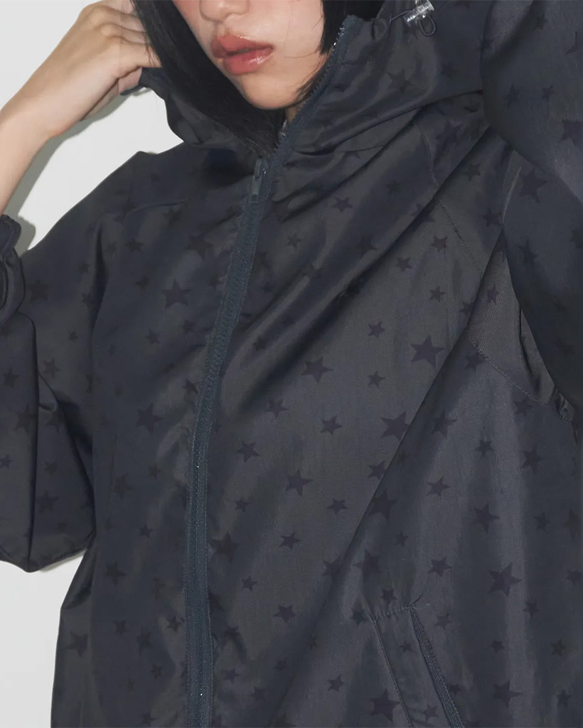 Star Print Overfit Windbreaker Hooded String Windbreaker [Charcoal]