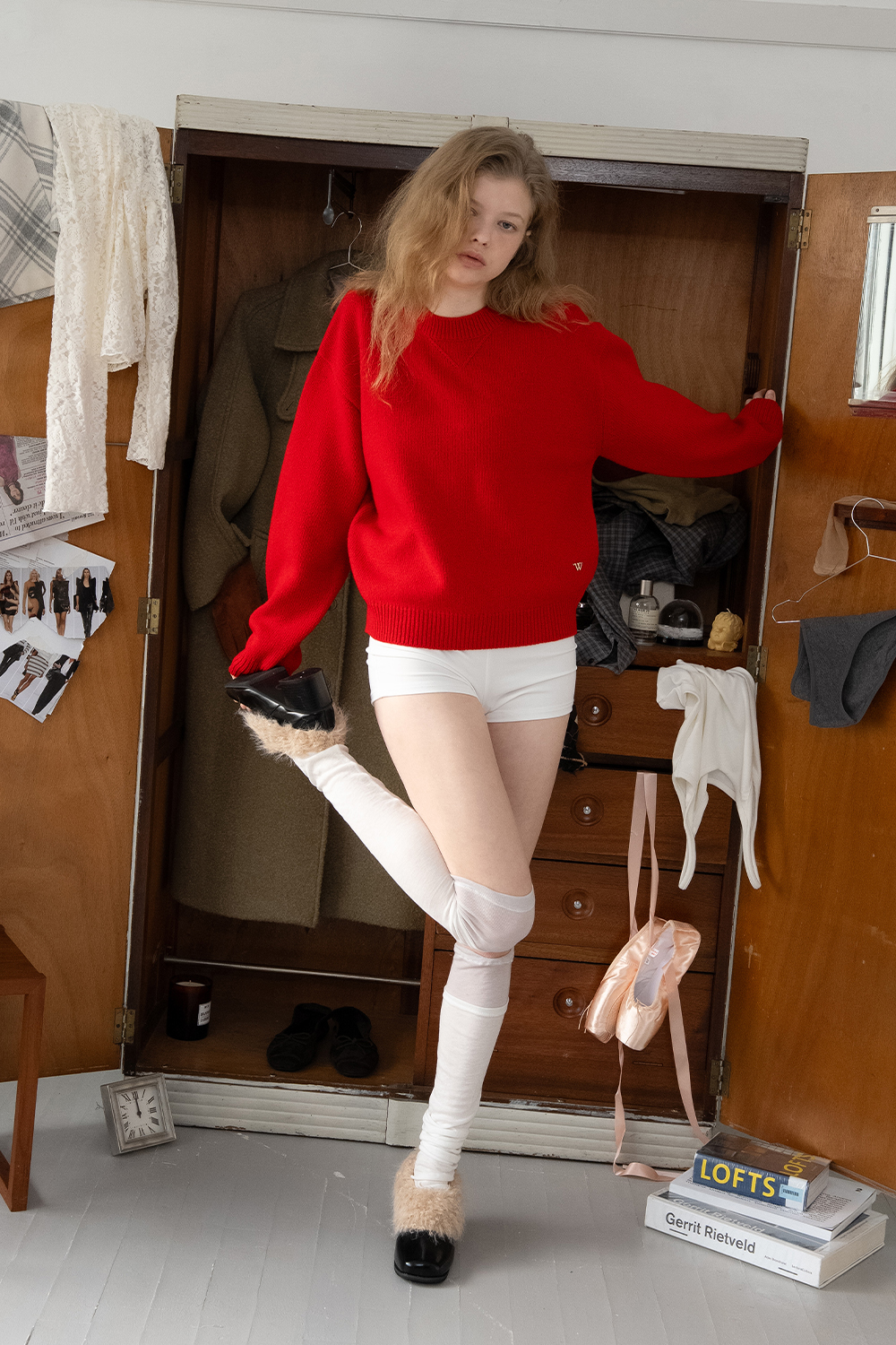 無駄のないシンプルなシルエットの「Basic crew knit」です。