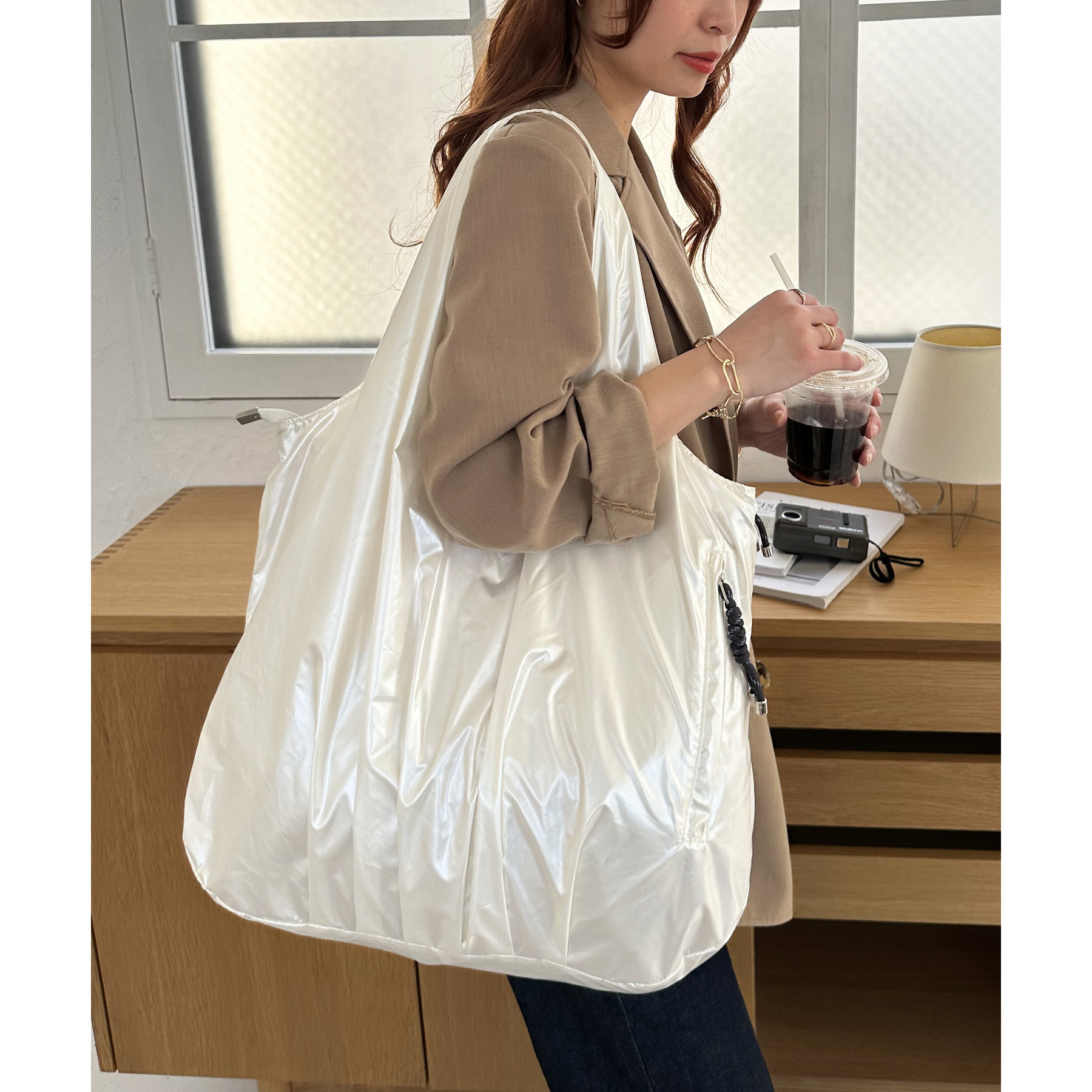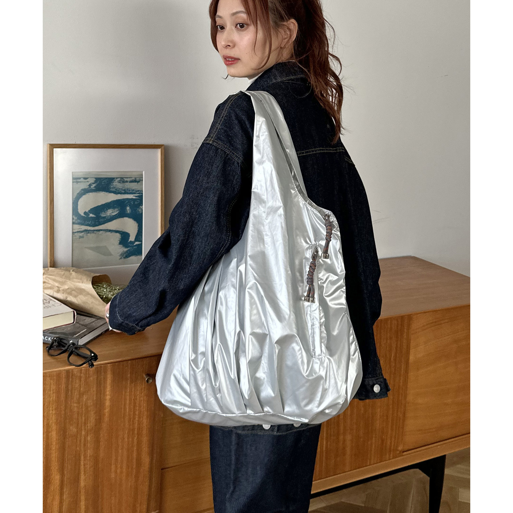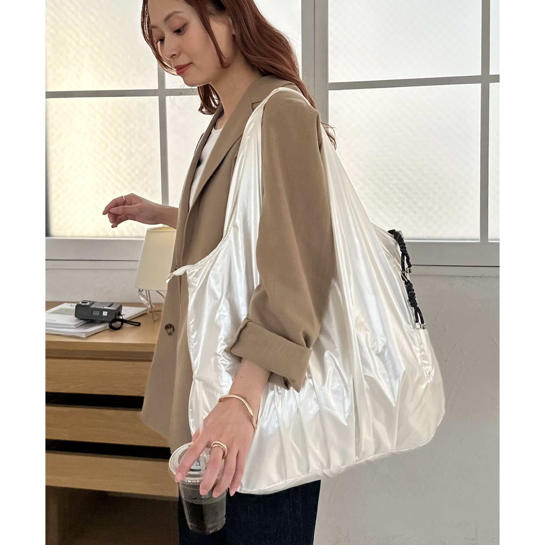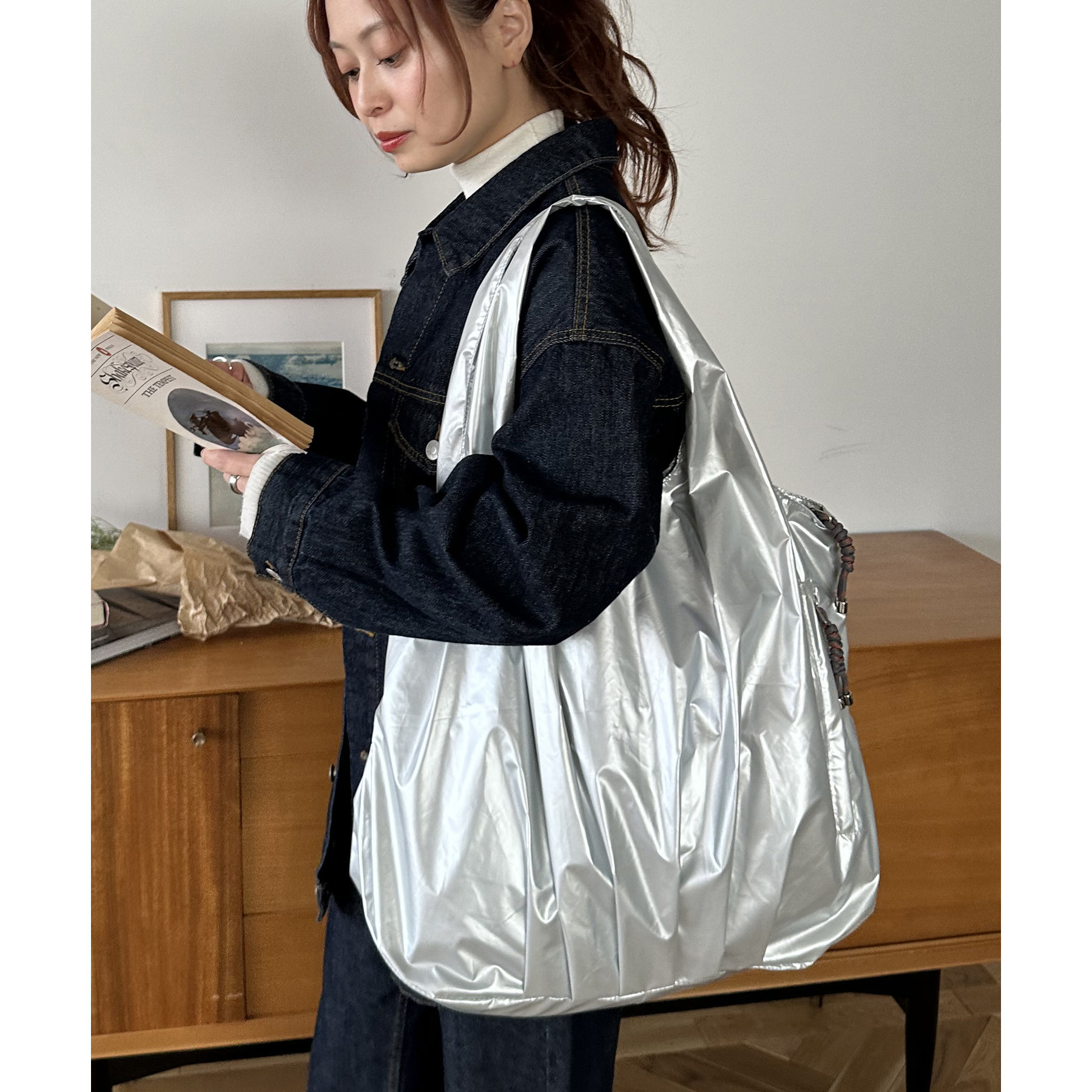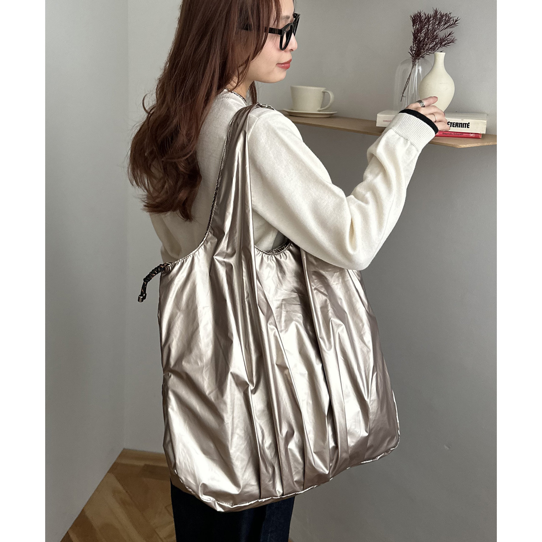 ビッグメタリックギャザートートバッグ