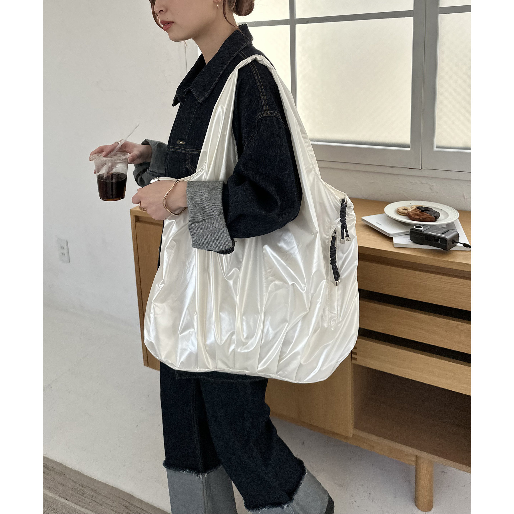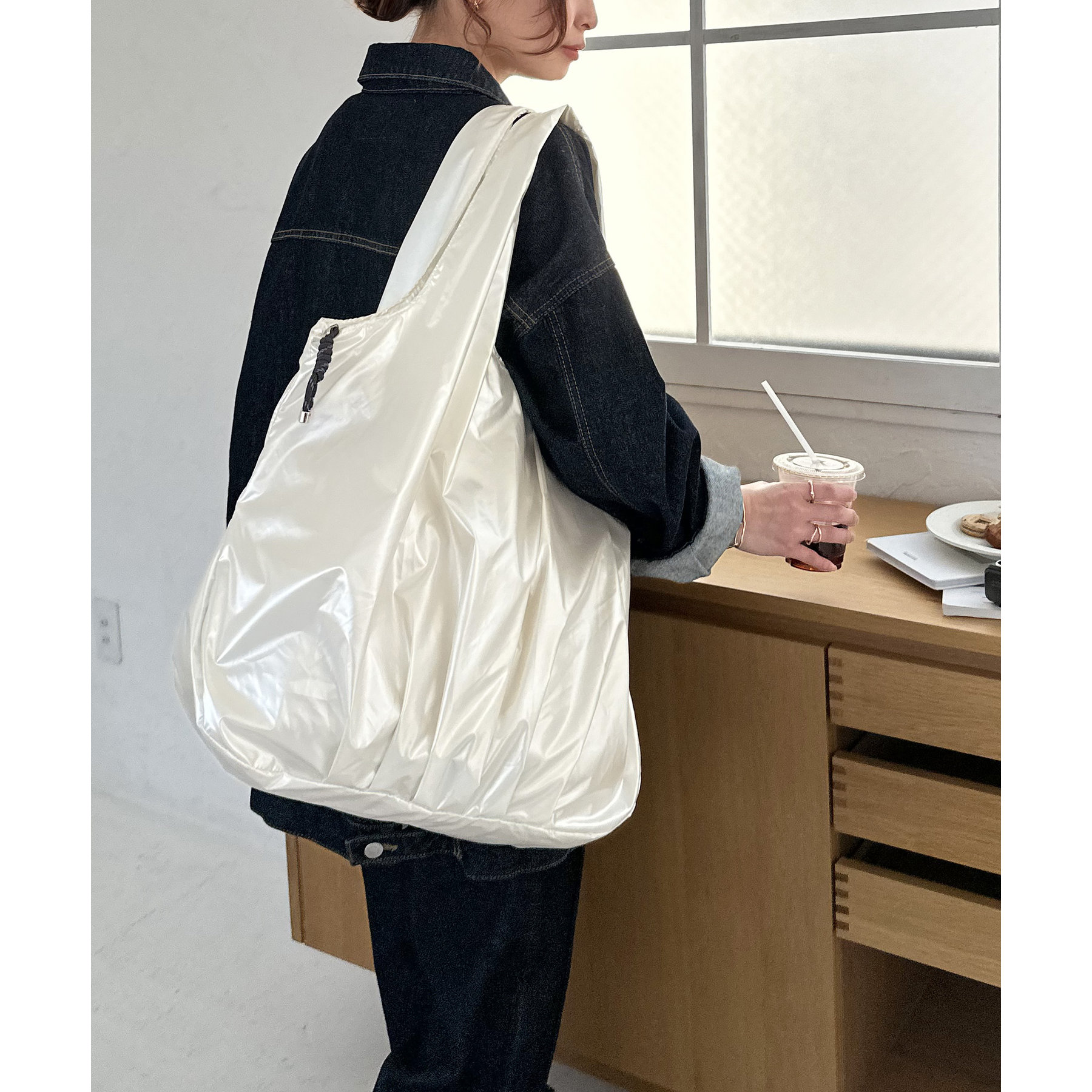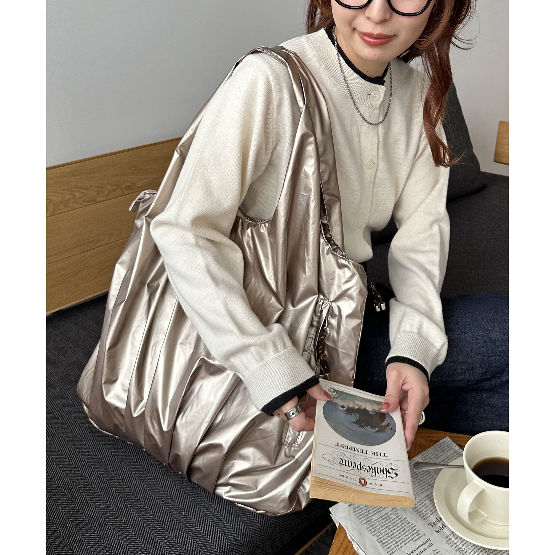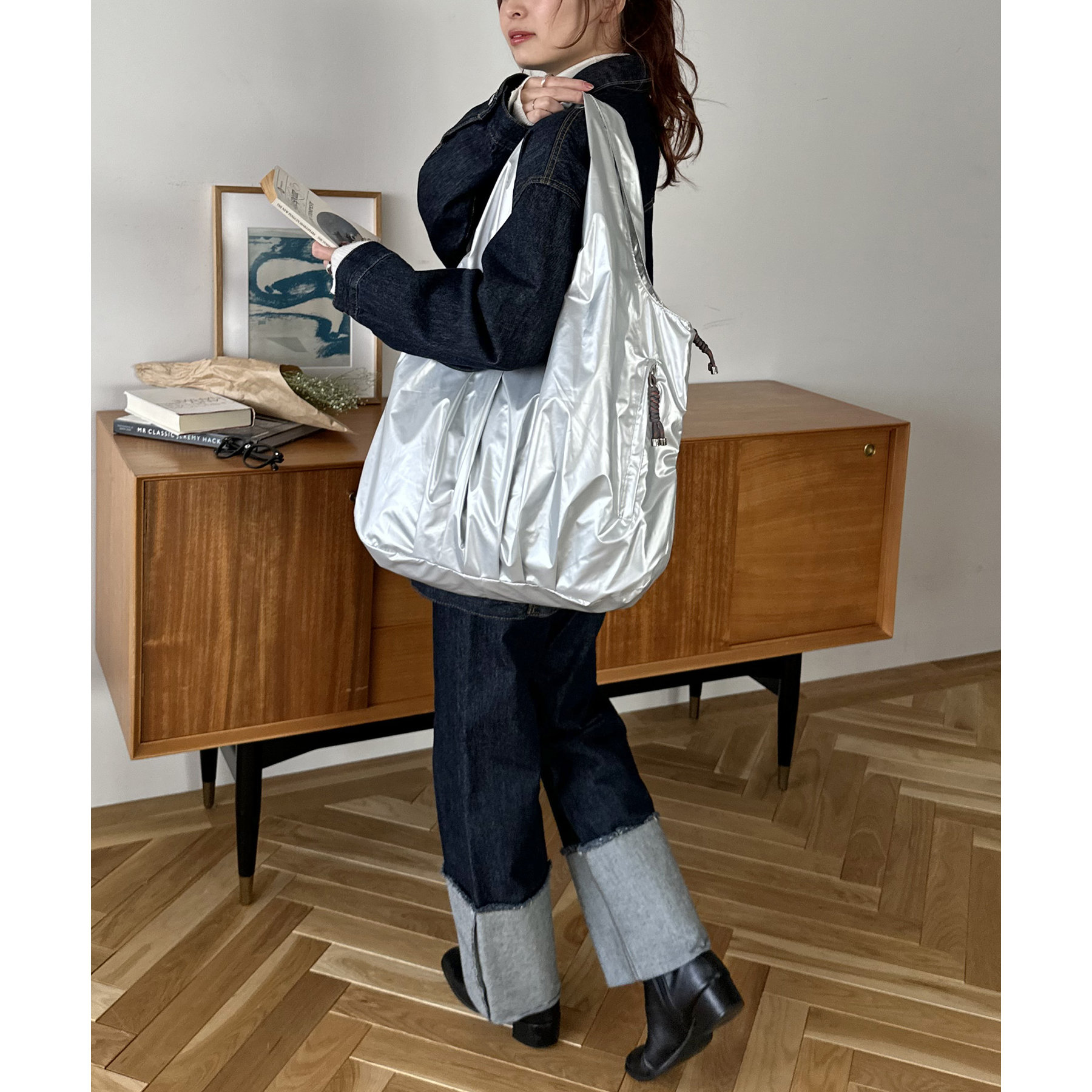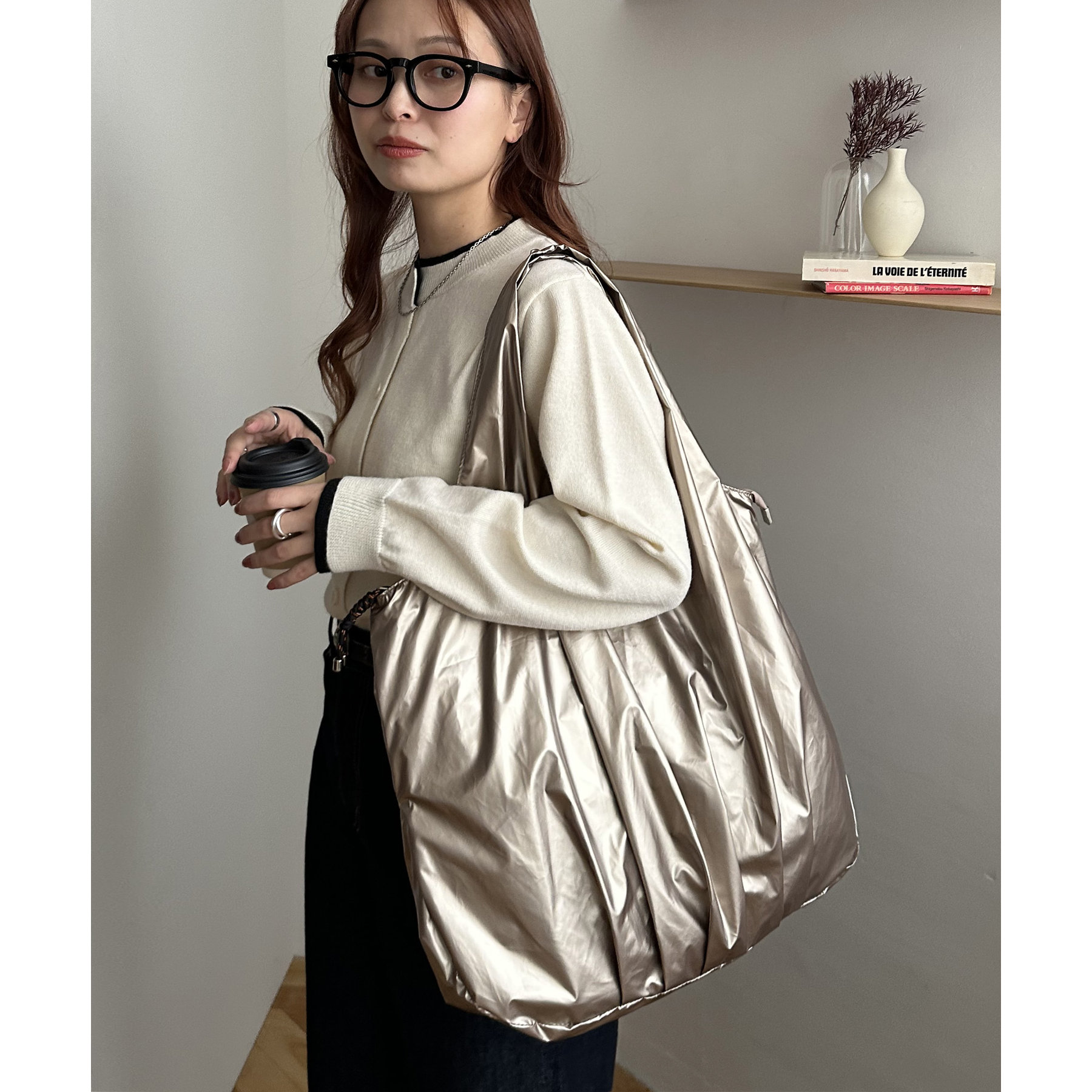 ビッグメタリックギャザートートバッグ