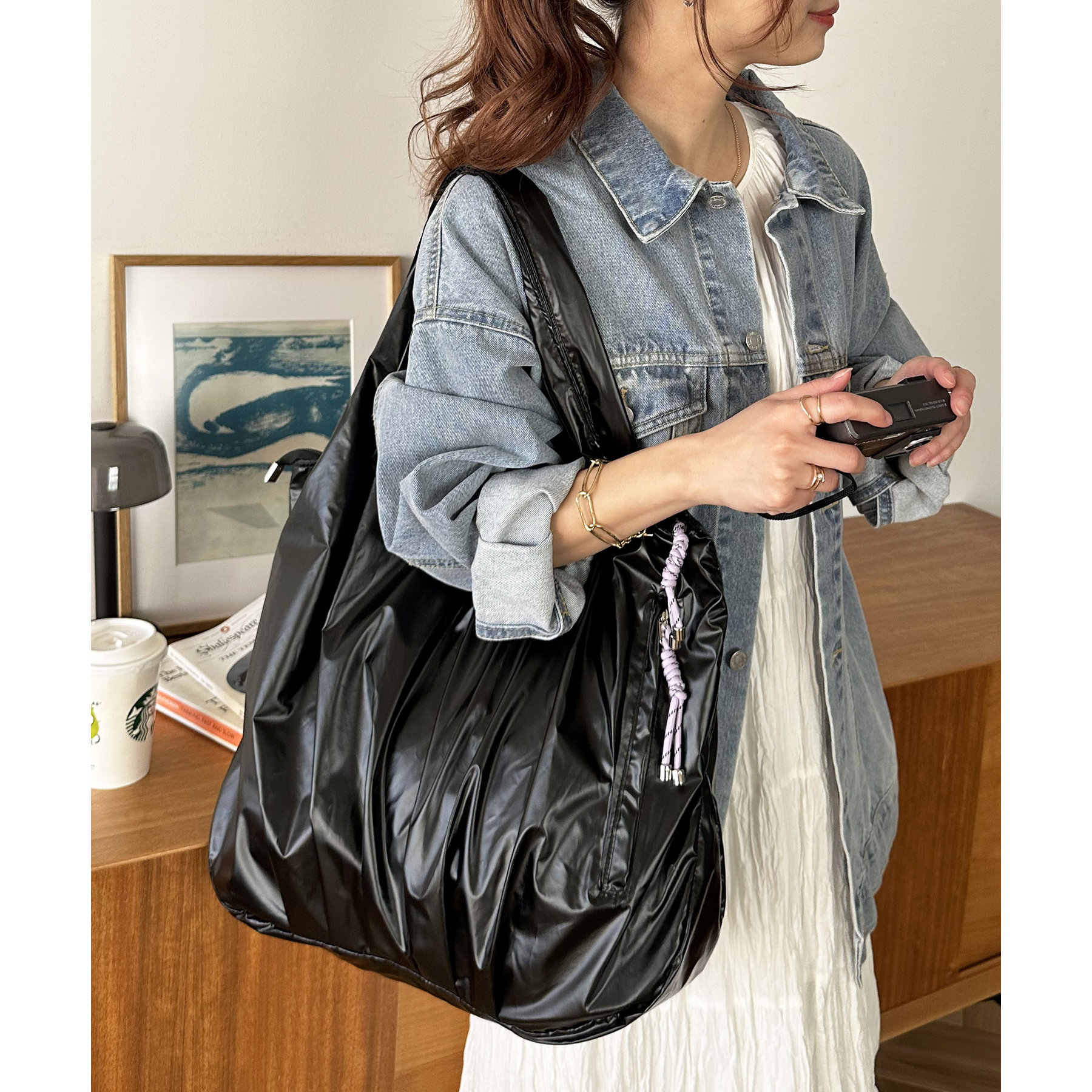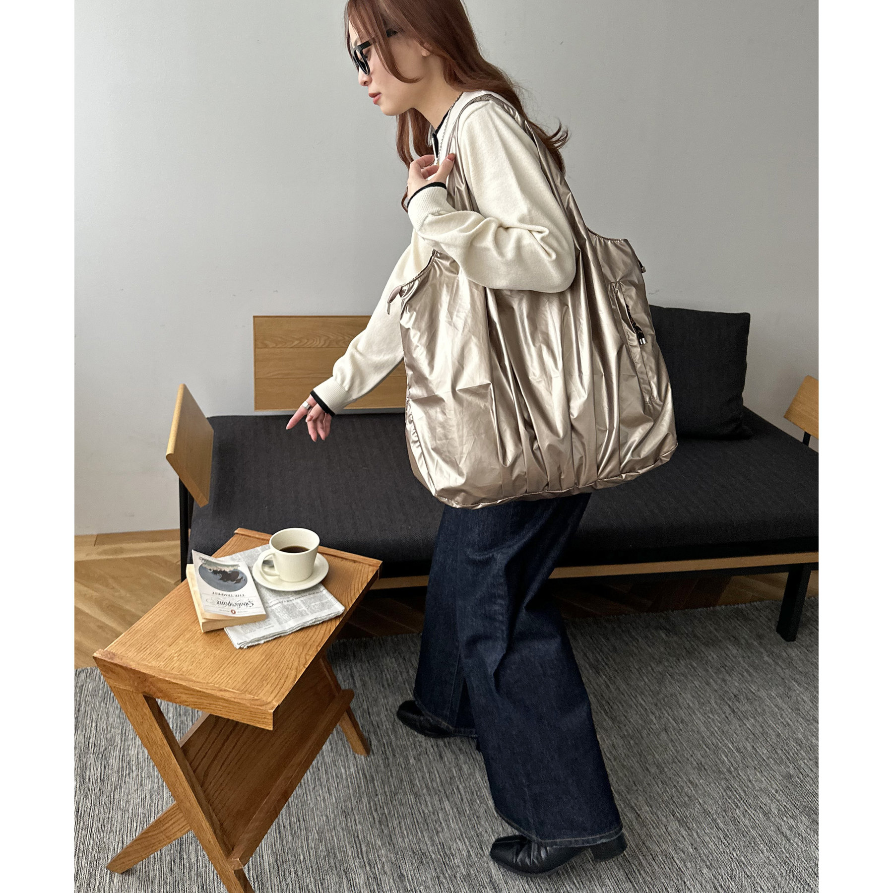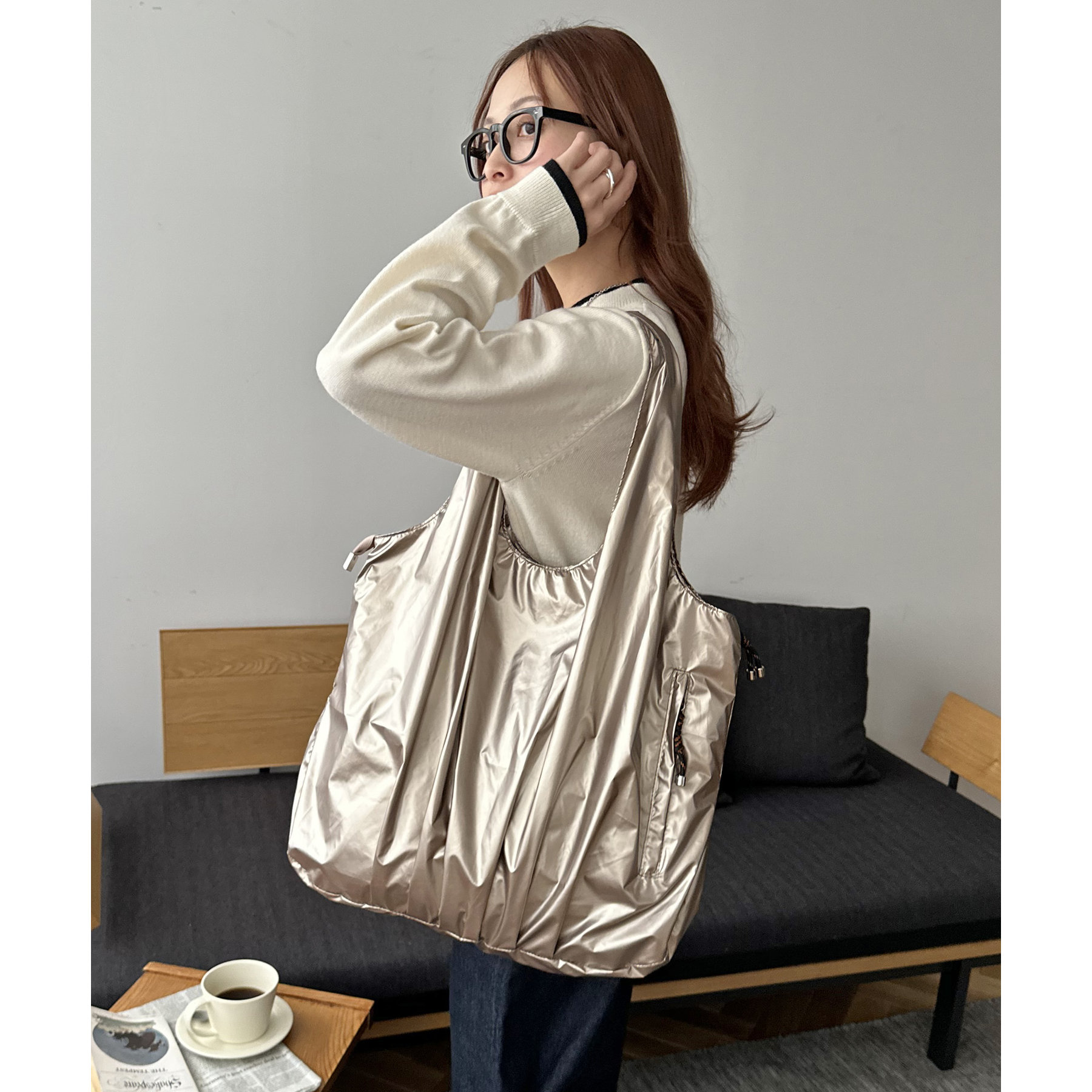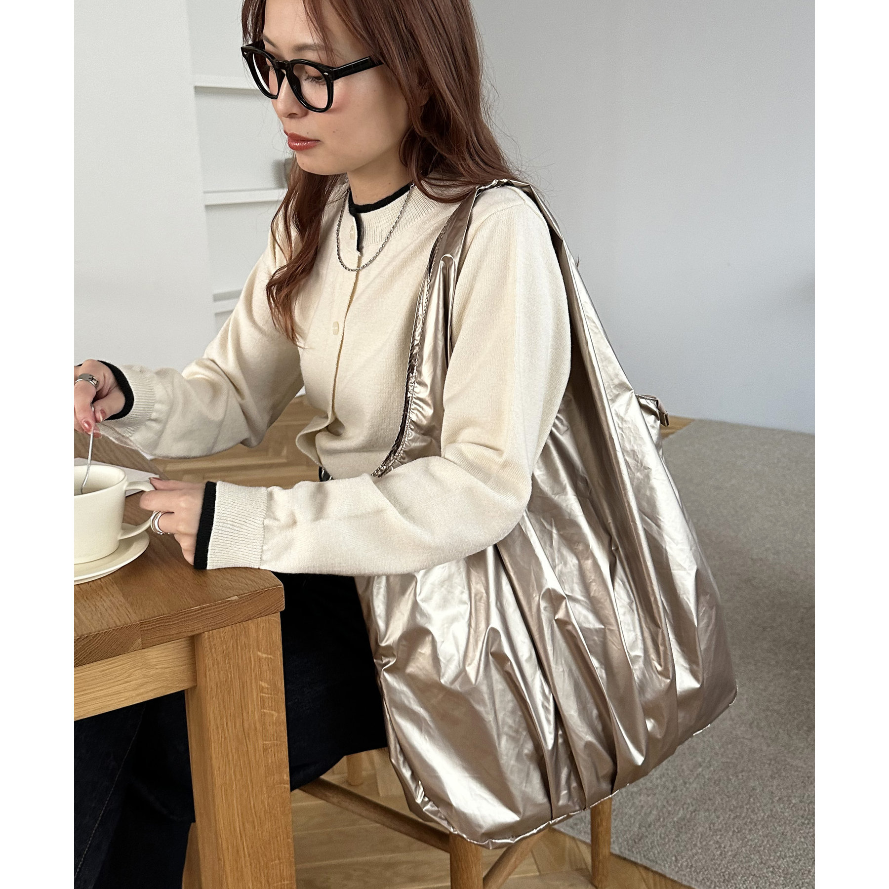 ビッグメタリックギャザートートバッグ