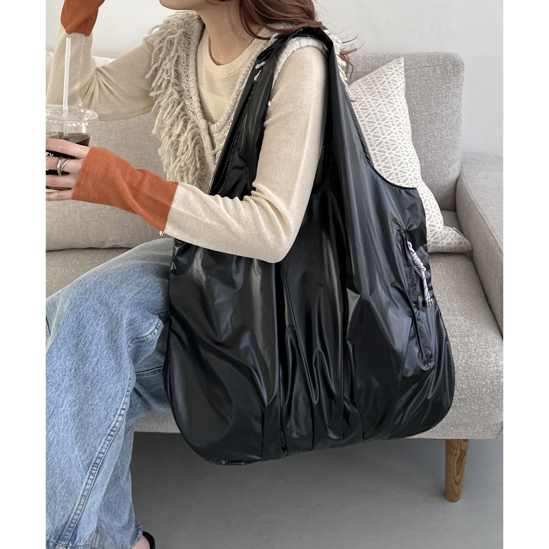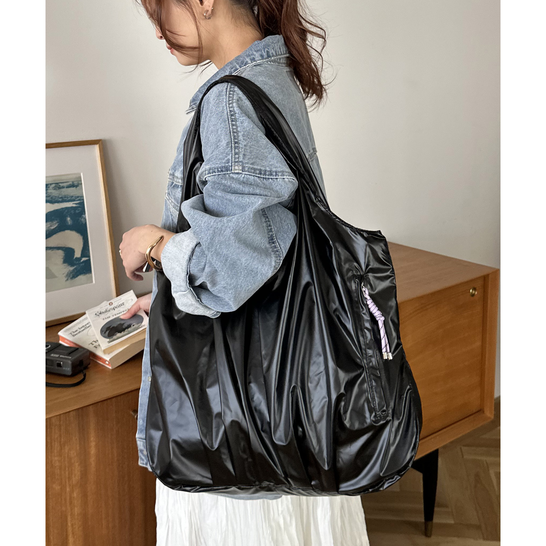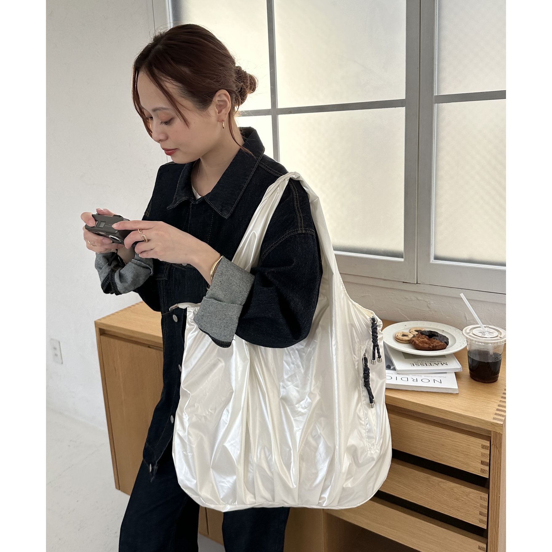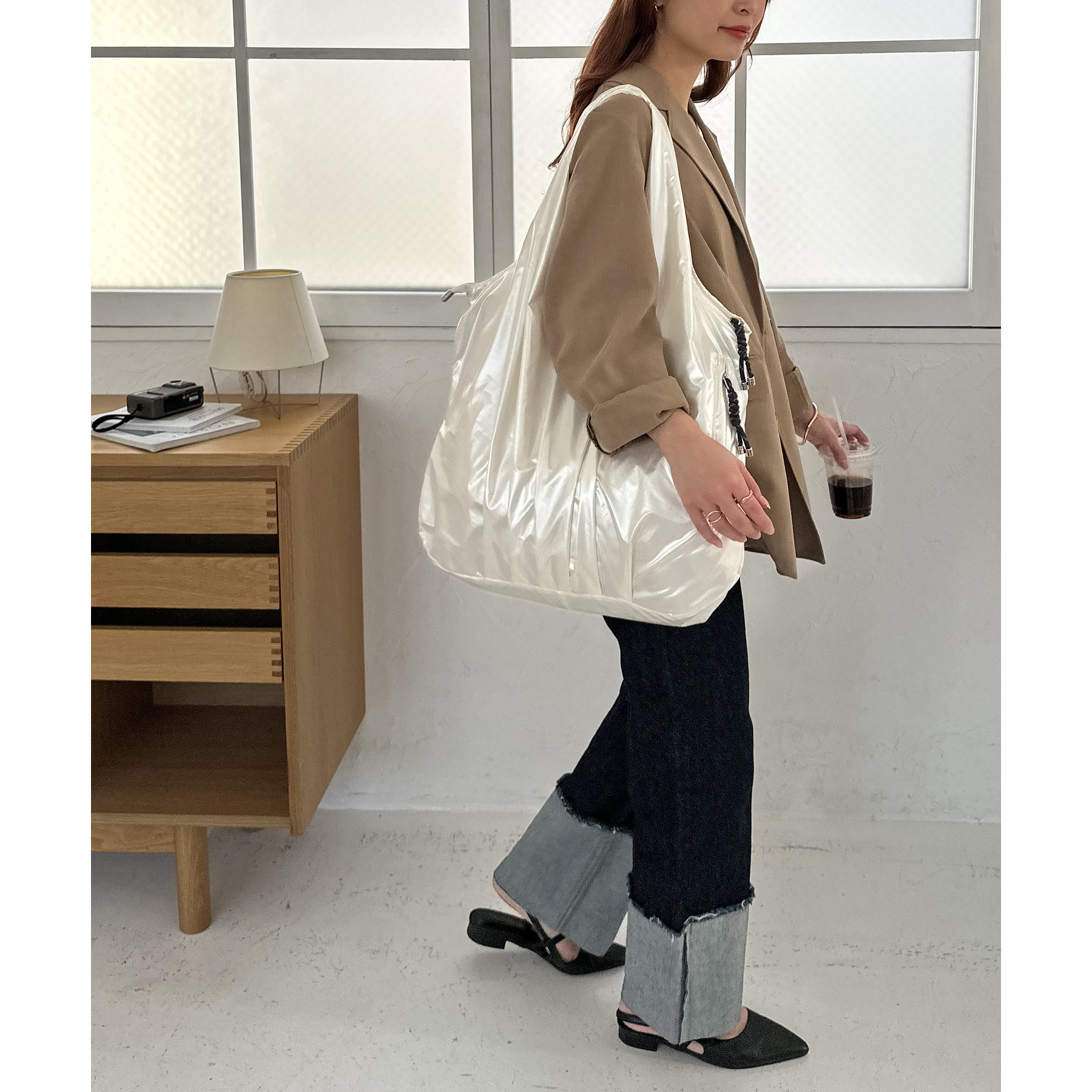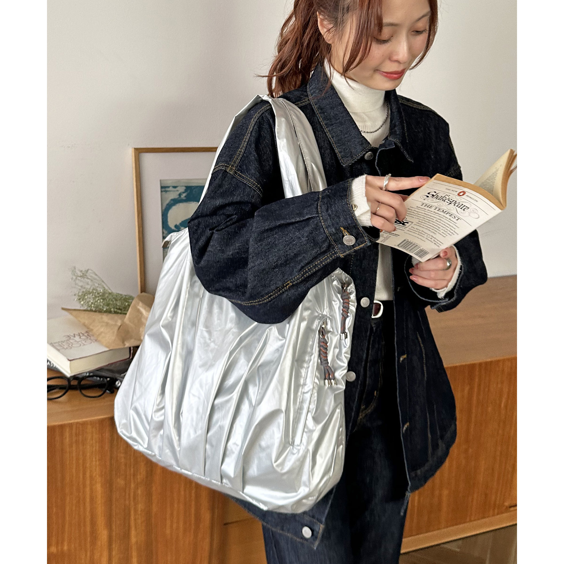 ビッグメタリックギャザートートバッグ