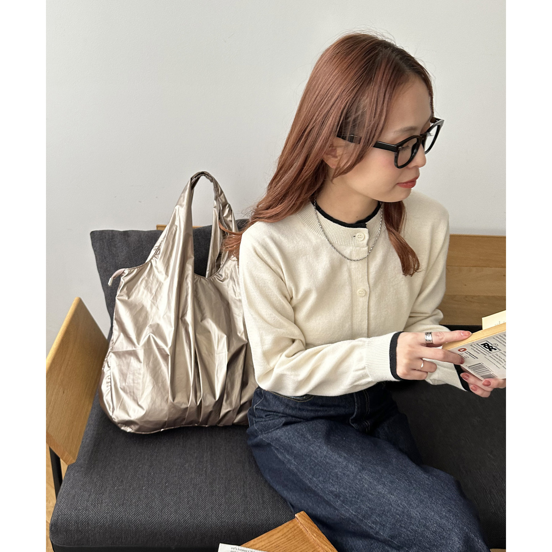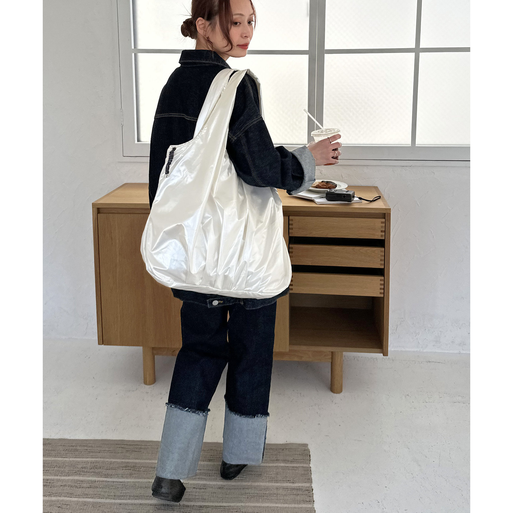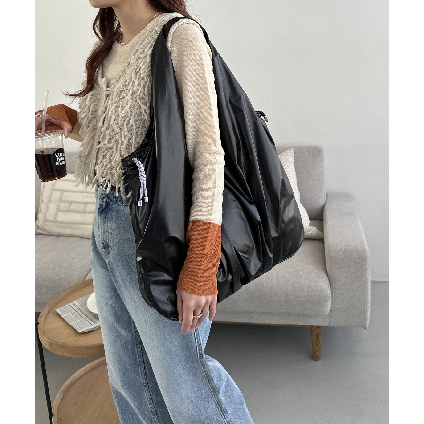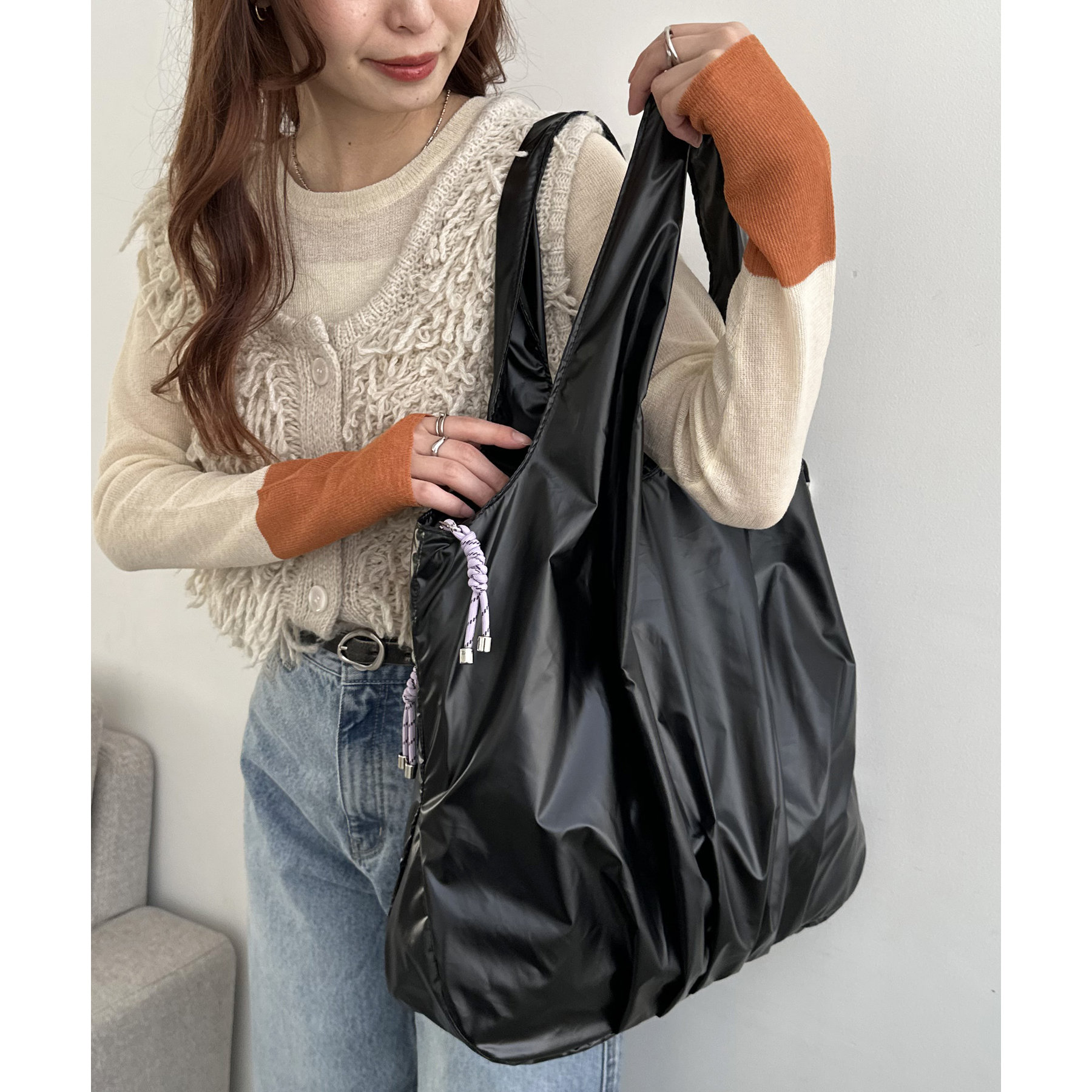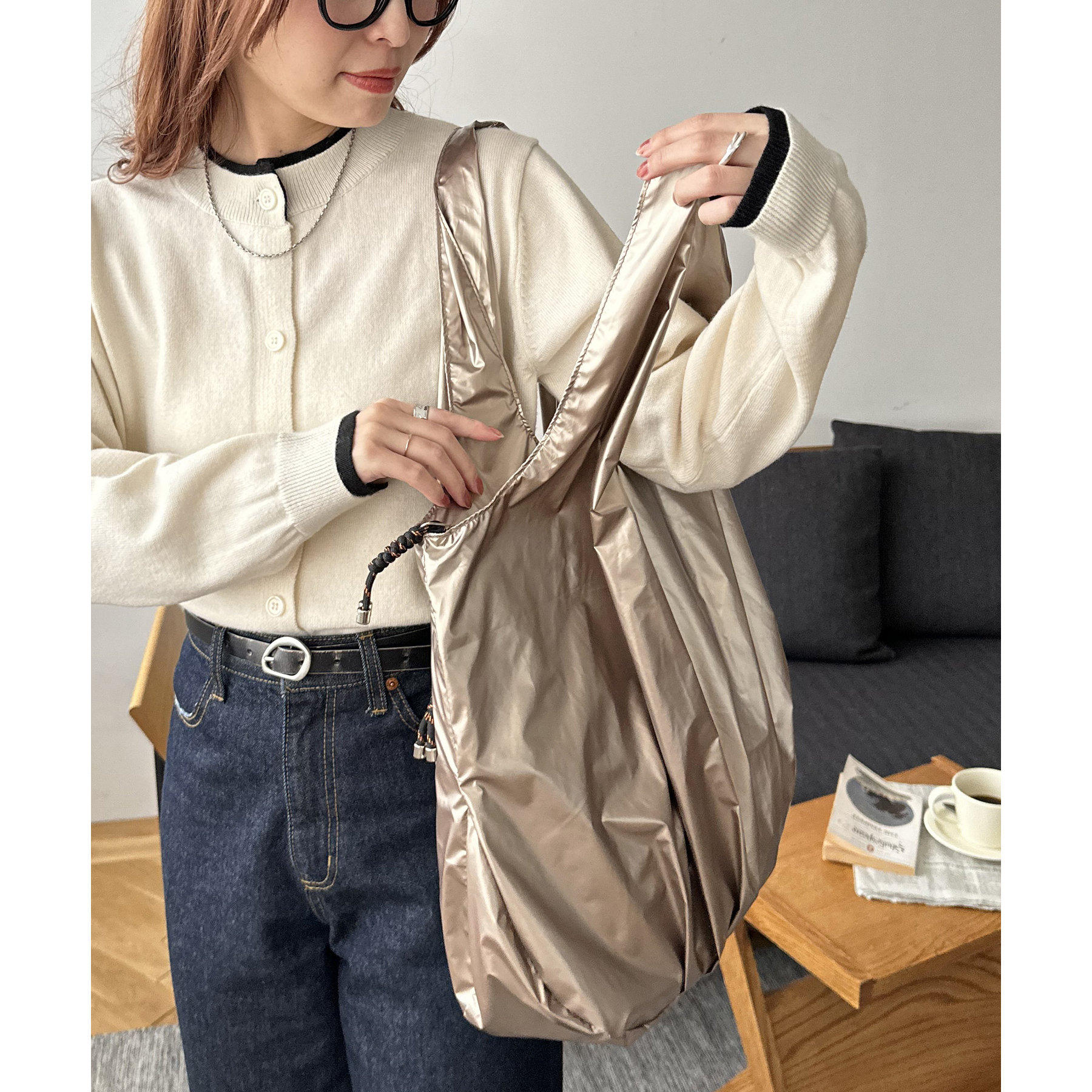 ビッグメタリックギャザートートバッグ