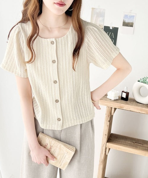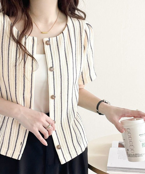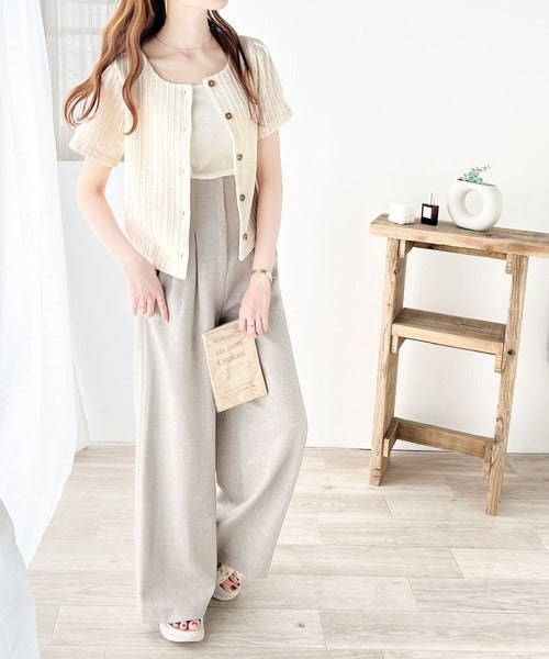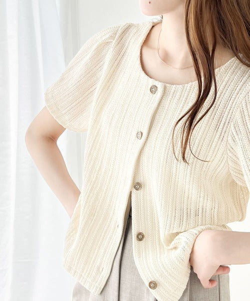 前ボタンを開けてワンピースの上にサッと羽織ればボレロとして、夏の冷房対策にもなり、重宝します。