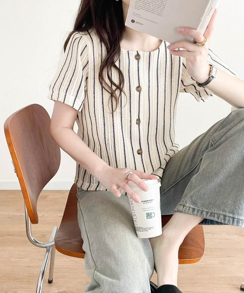 スラックスや、タイトスカートを合わせれば、オフィスカジュアルや、ちょっとしたお出かけにもおすすめのスタイルになります。