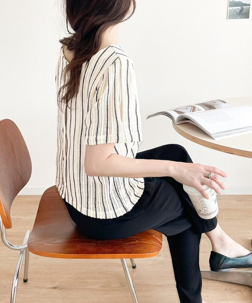 さりげなく肌を見せることで、洗練された大人の魅力を演出してくれる一枚。