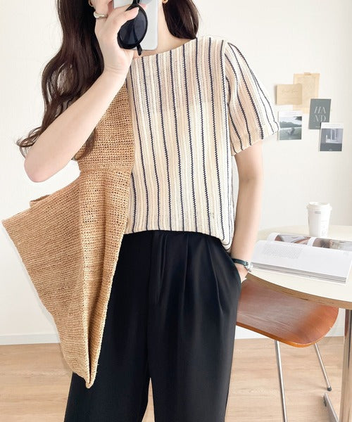 ショート丈のデザインなので、ハイウェストのボトムスと合わせると脚長効果も期待できます。