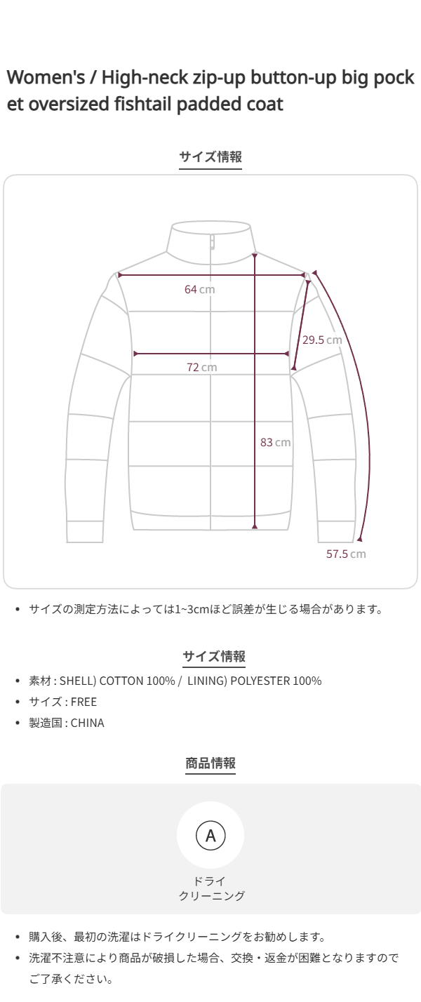 High-neck zip-up button-up big pocket oversized fishtail padded coat [khaki]