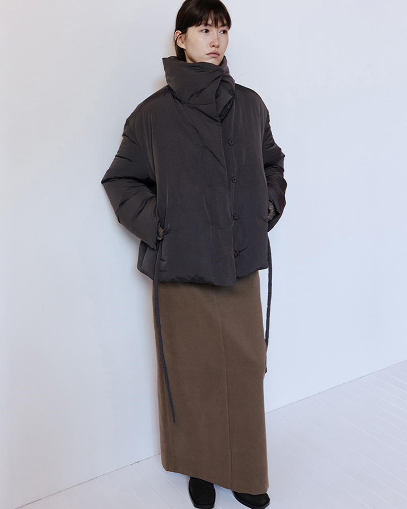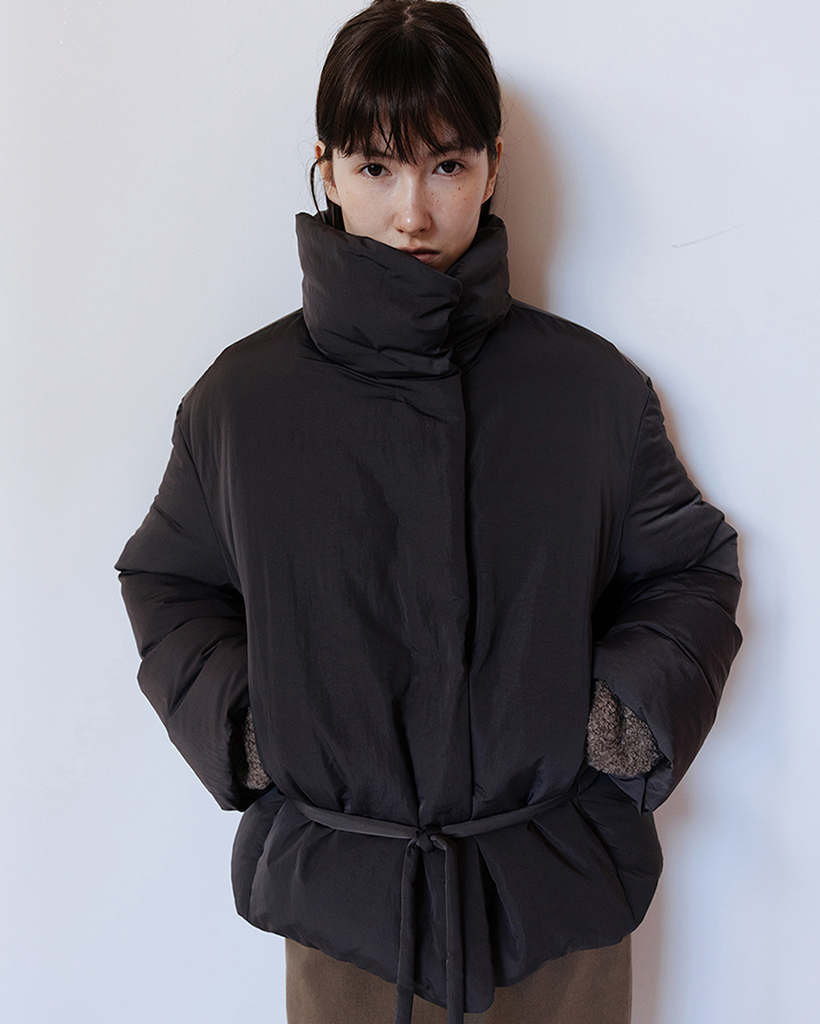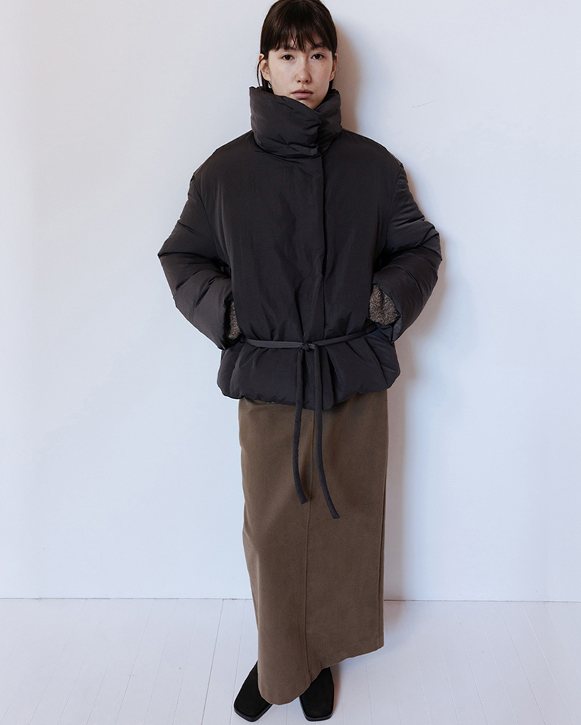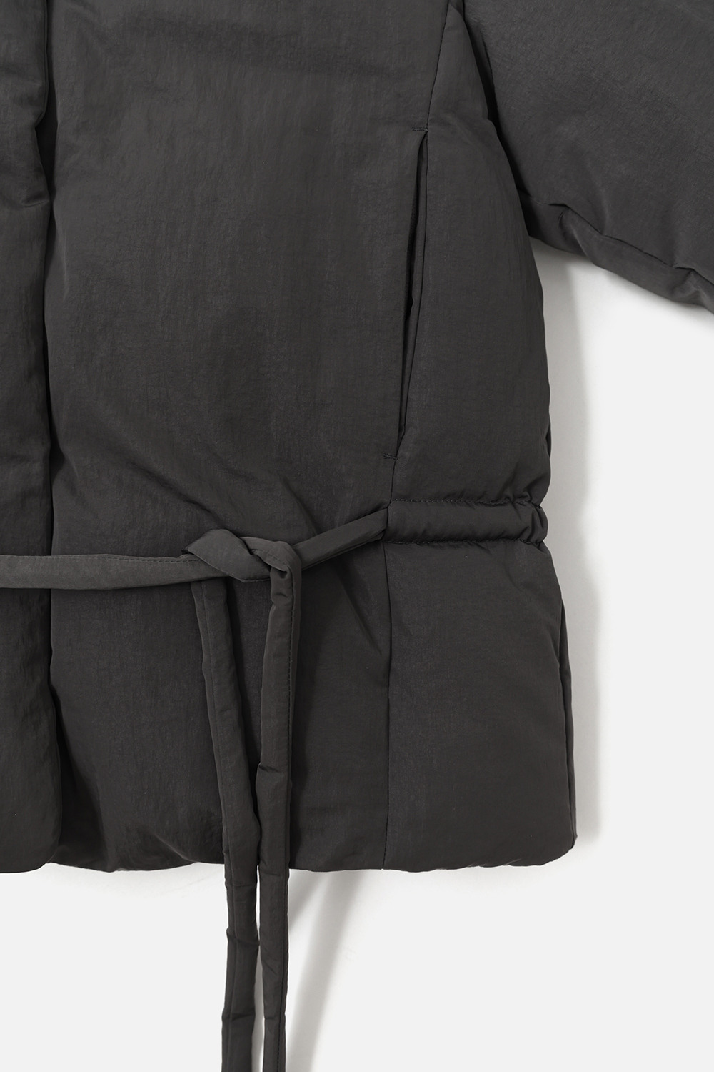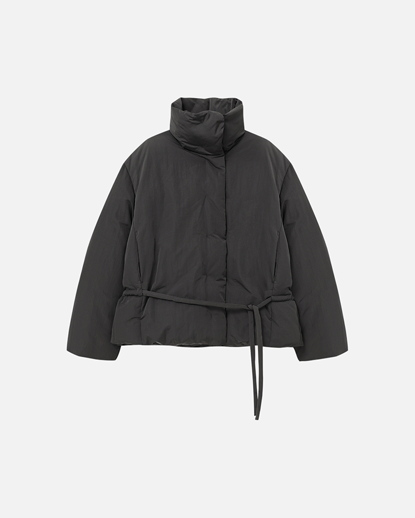 FUNNEL NECK STRING GOOSE DOWN JACKET - CHARCOAL