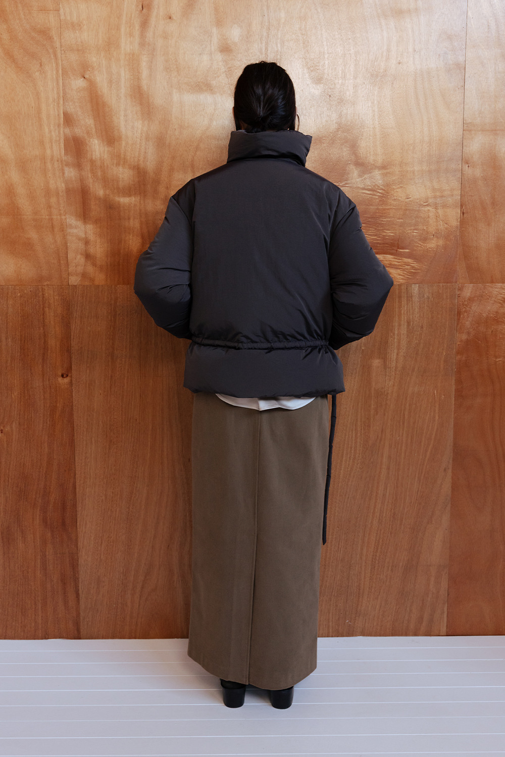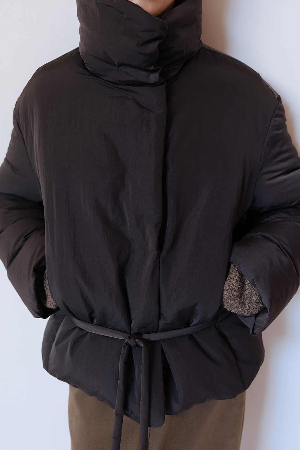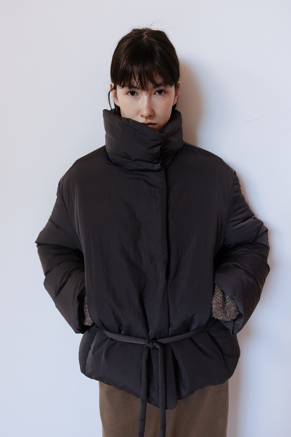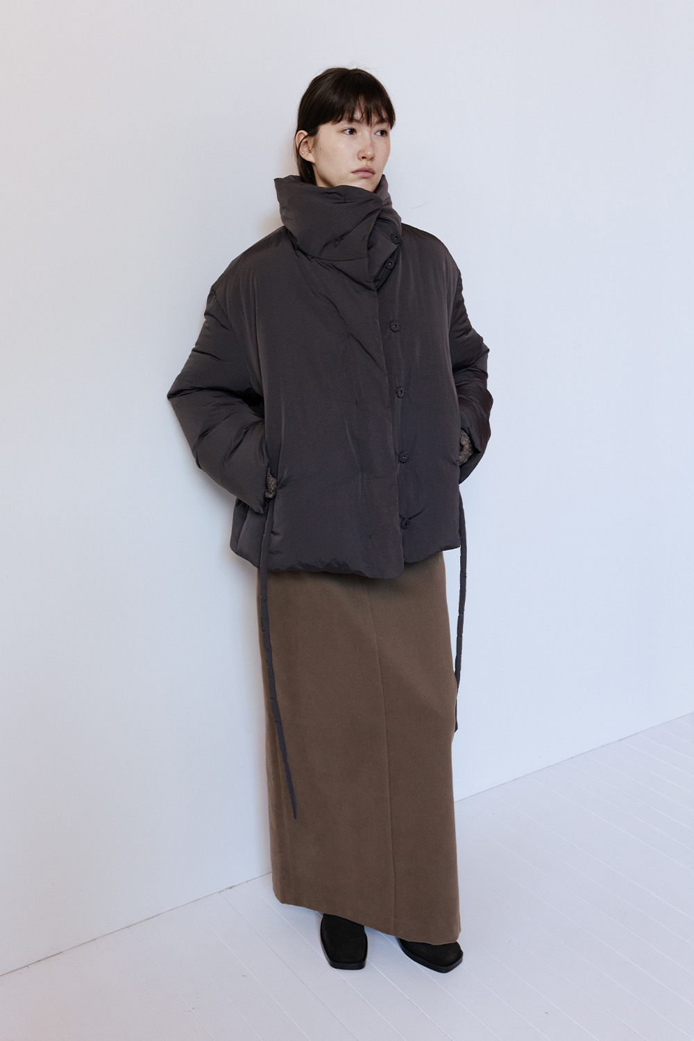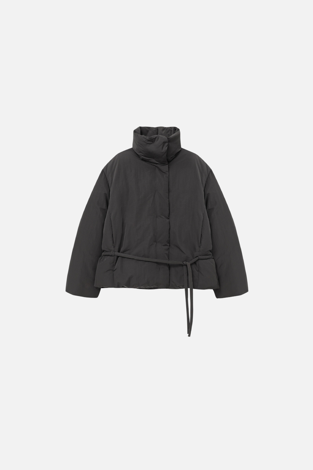 FUNNEL NECK STRING GOOSE DOWN JACKET - CHARCOAL