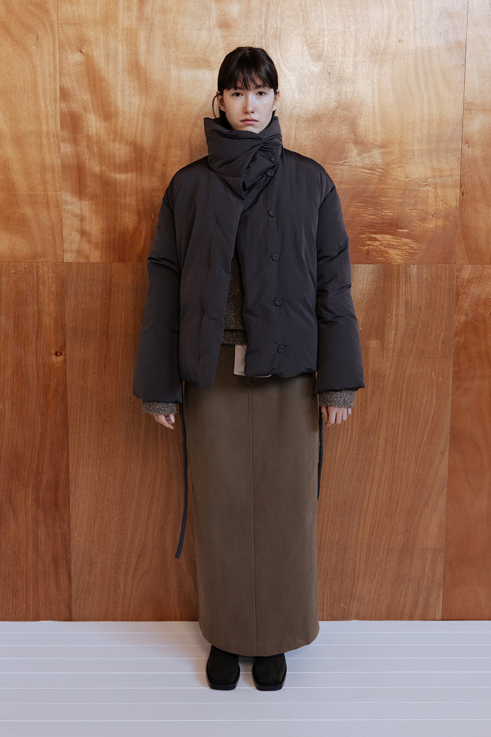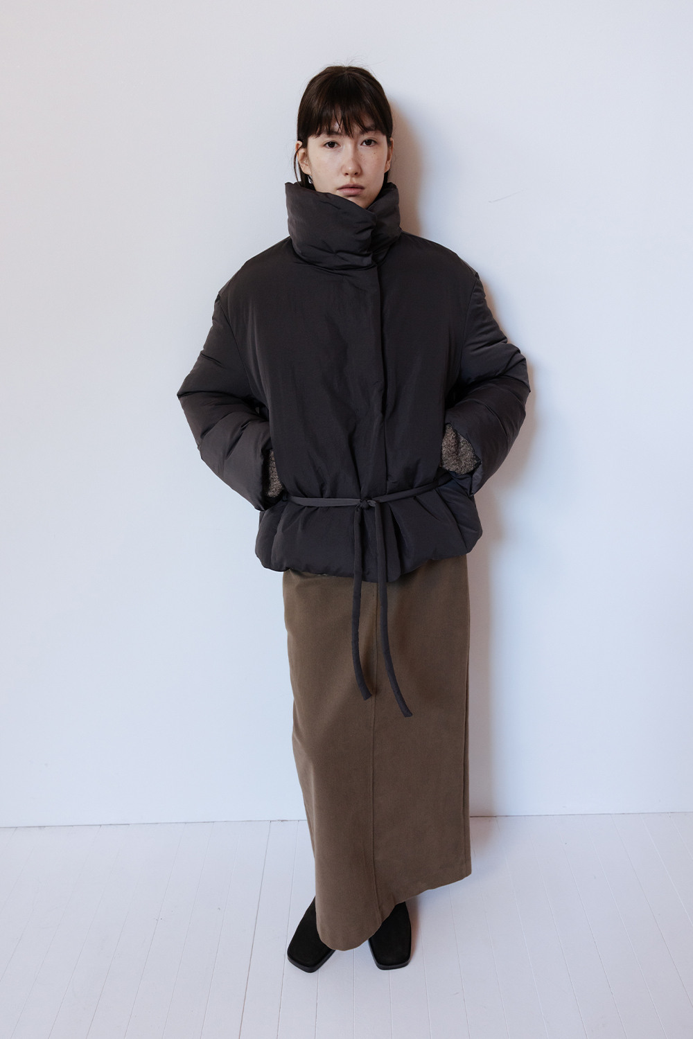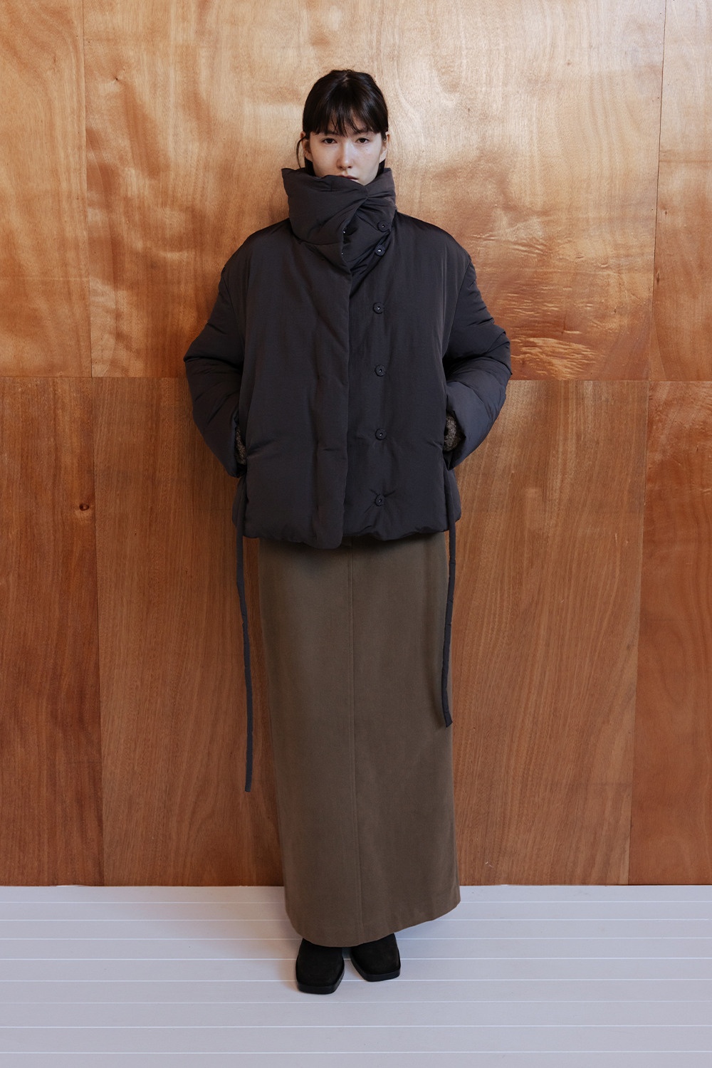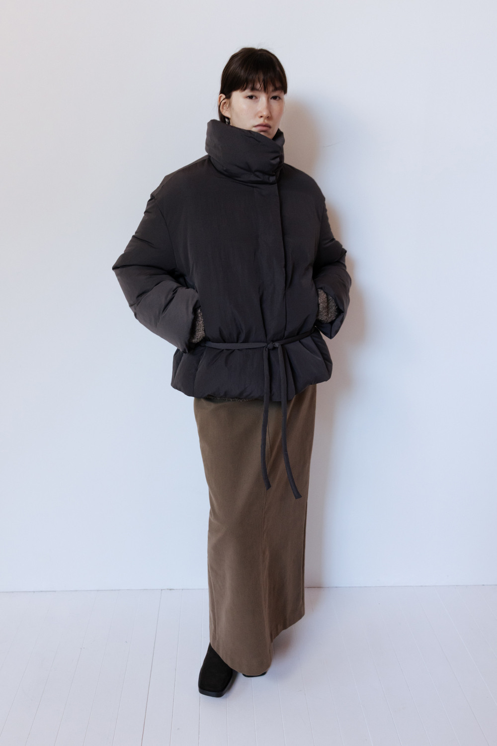 FUNNEL NECK STRING GOOSE DOWN JACKET - CHARCOAL
