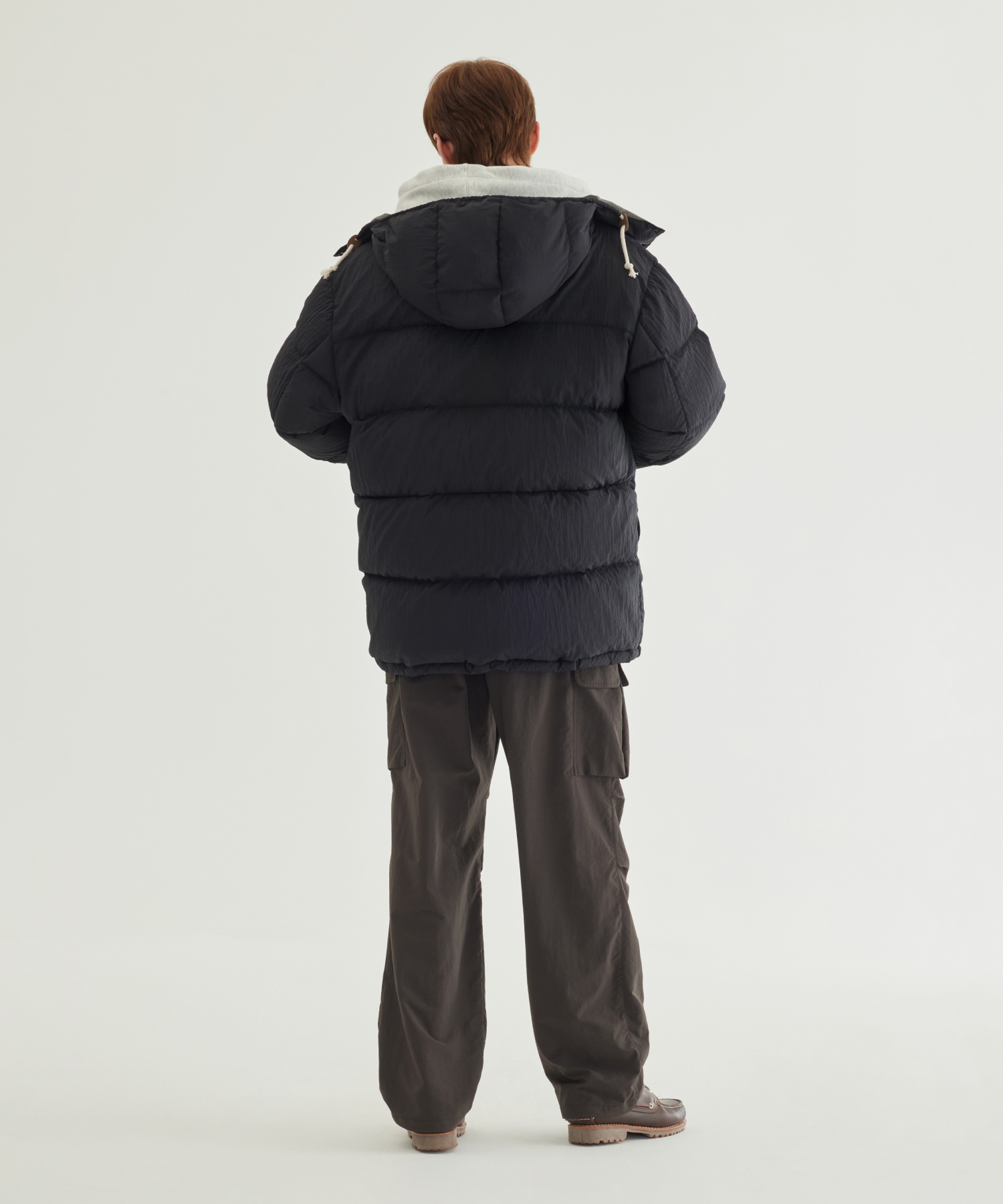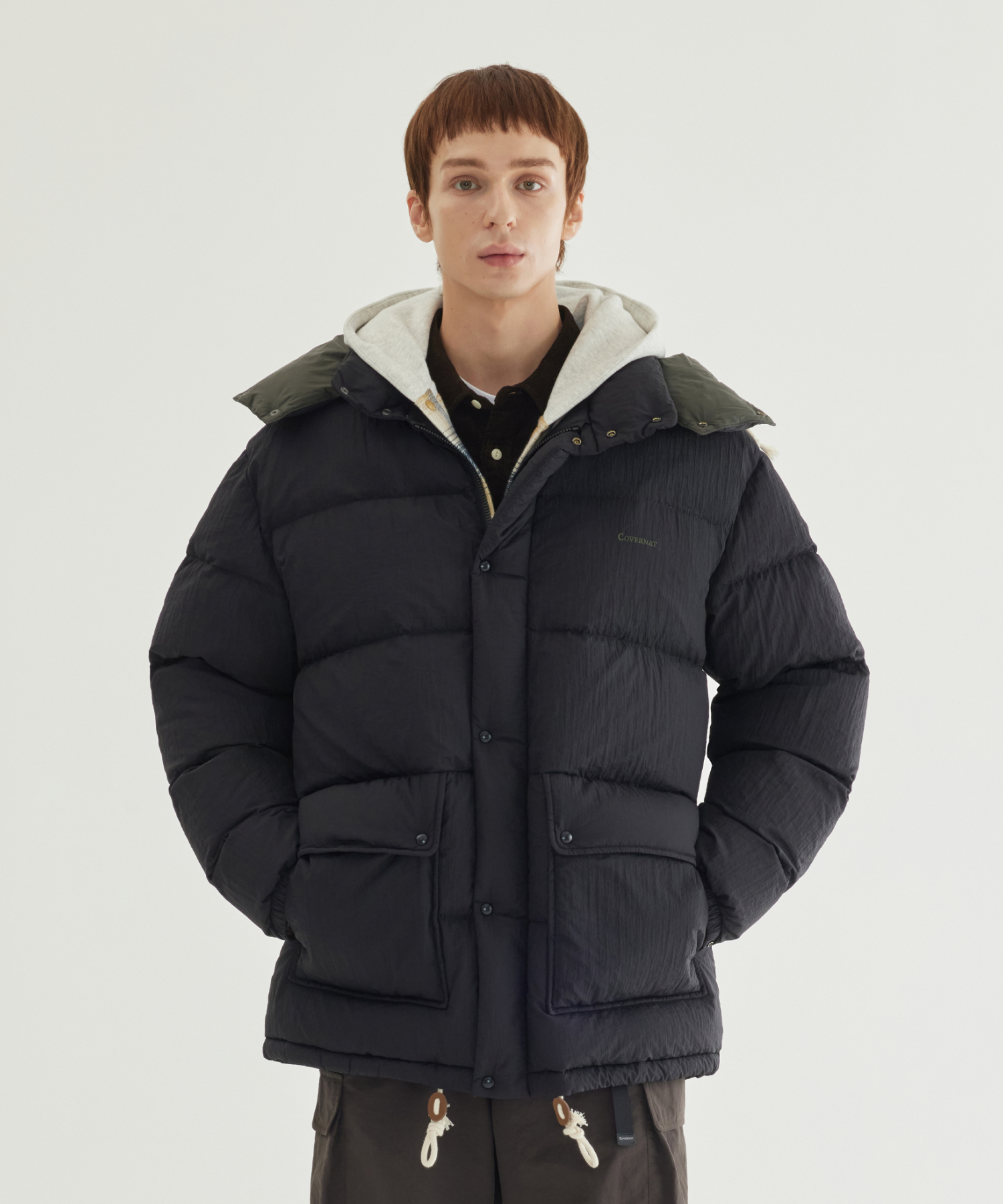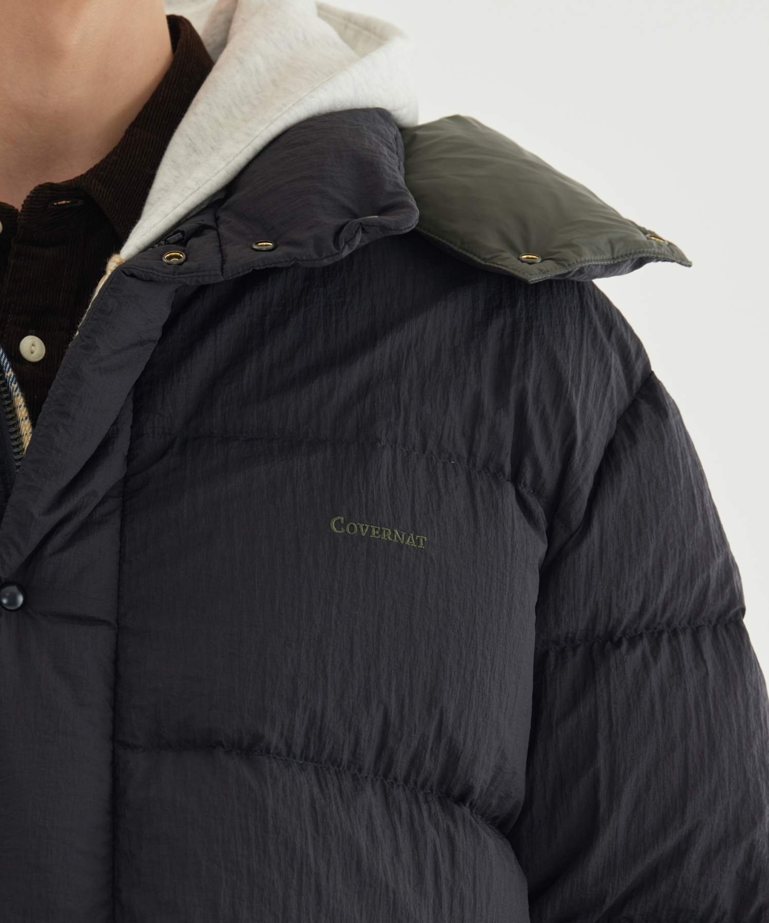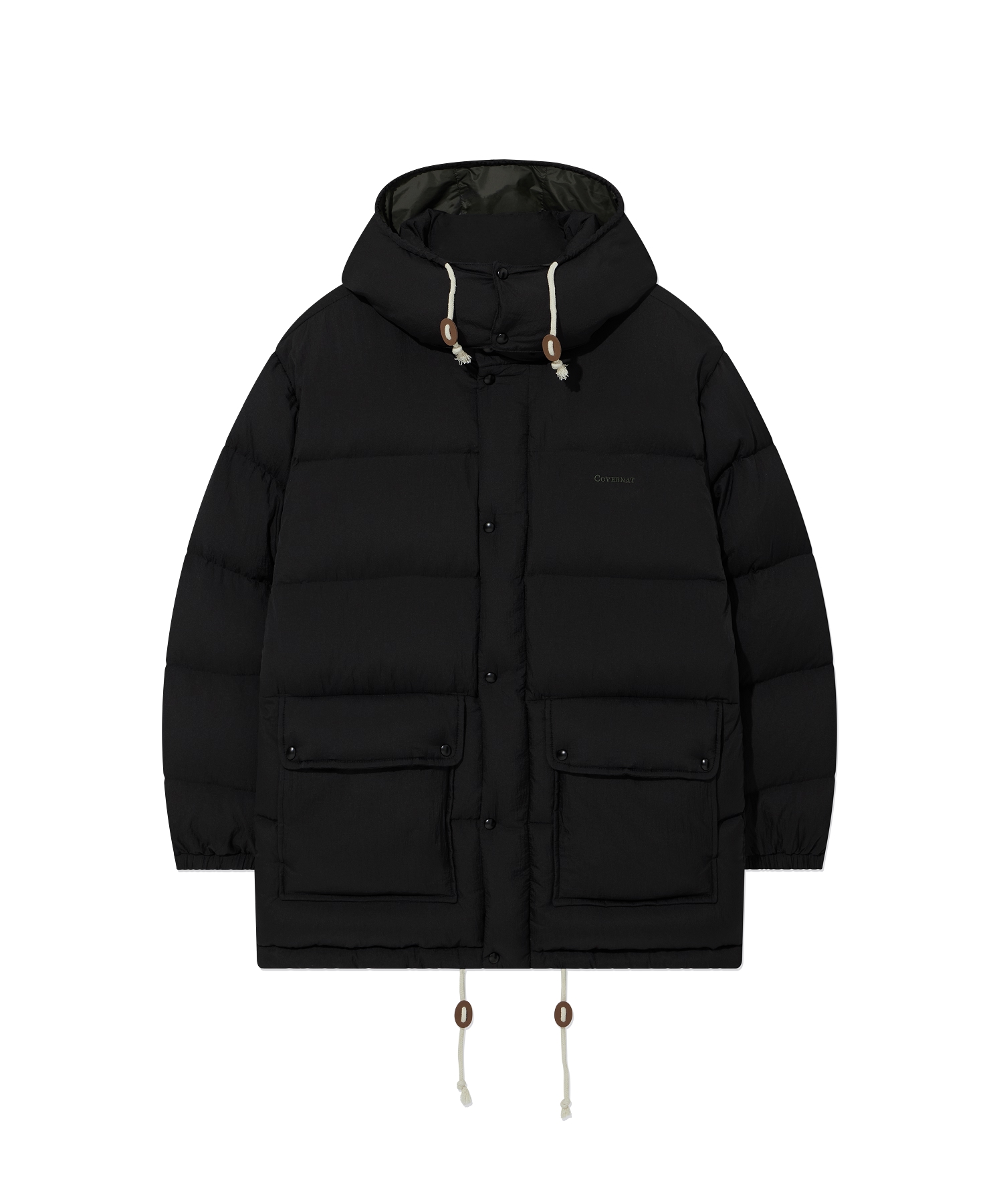 DETACHABLE HOOD MID DOWN JACKET - Black