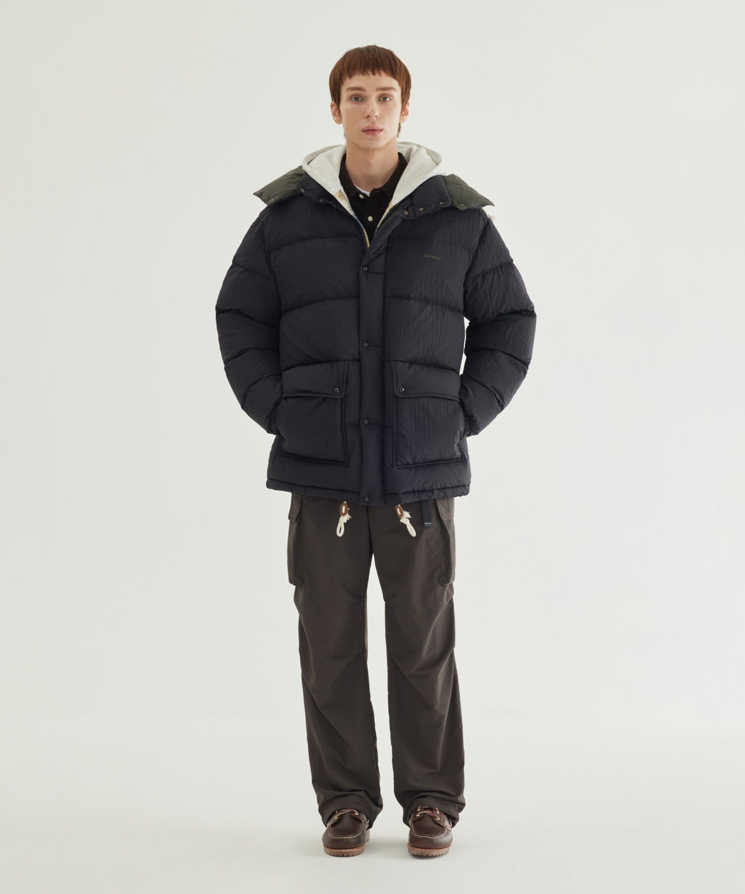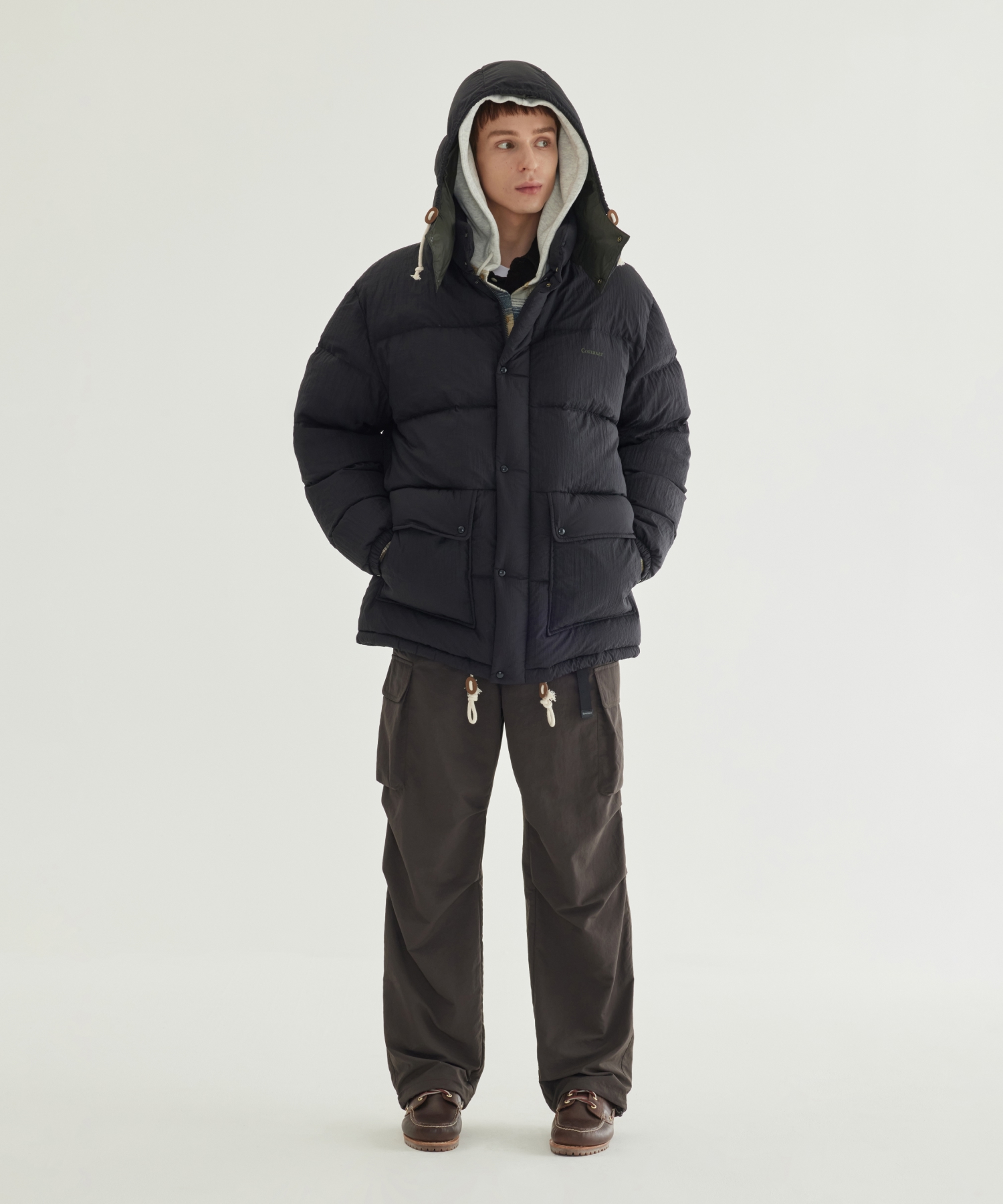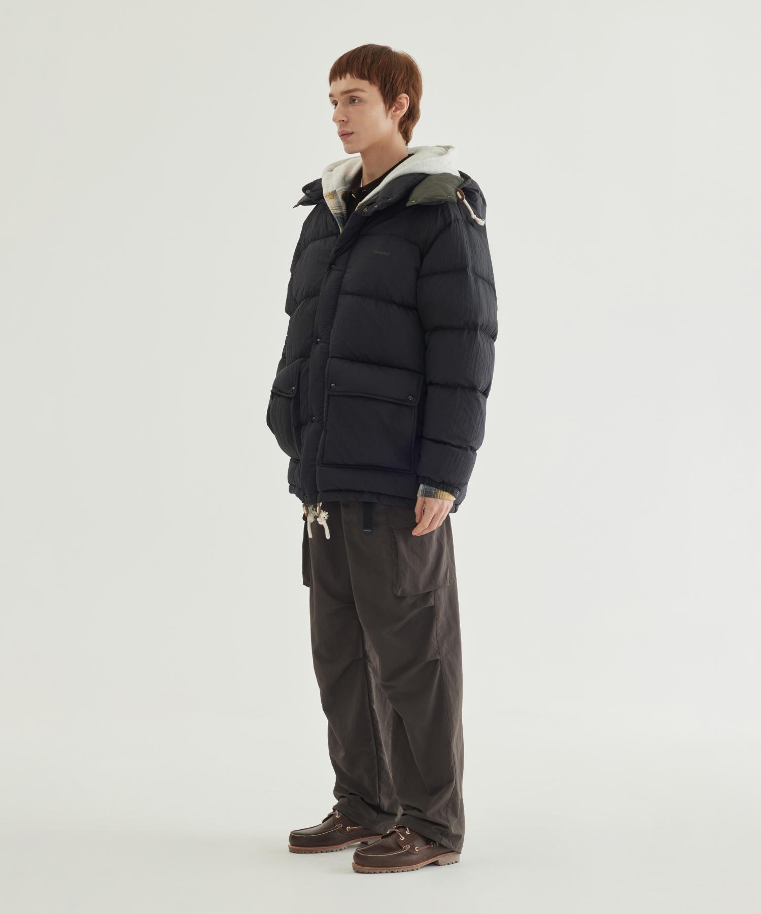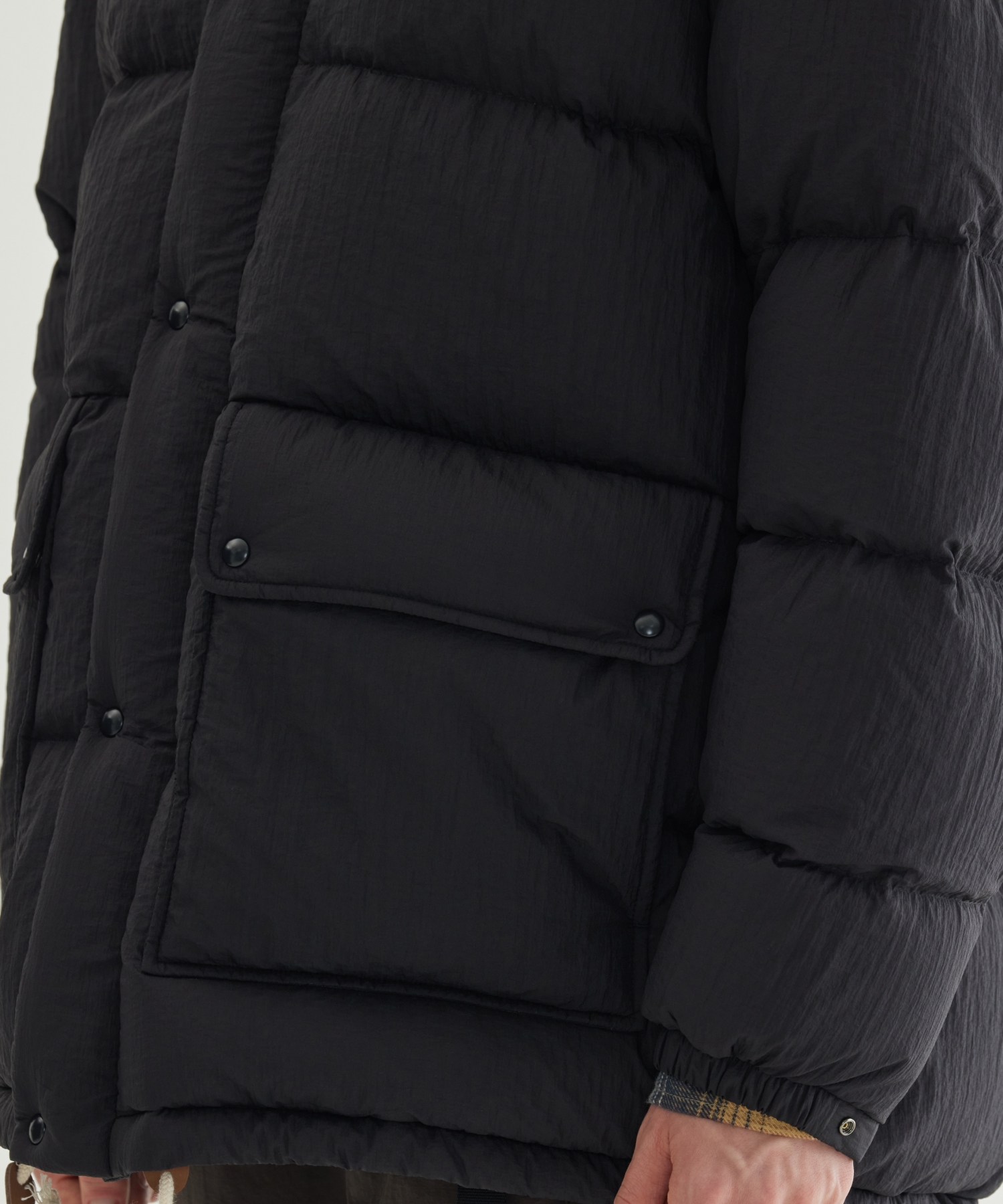 DETACHABLE HOOD MID DOWN JACKET - Black
