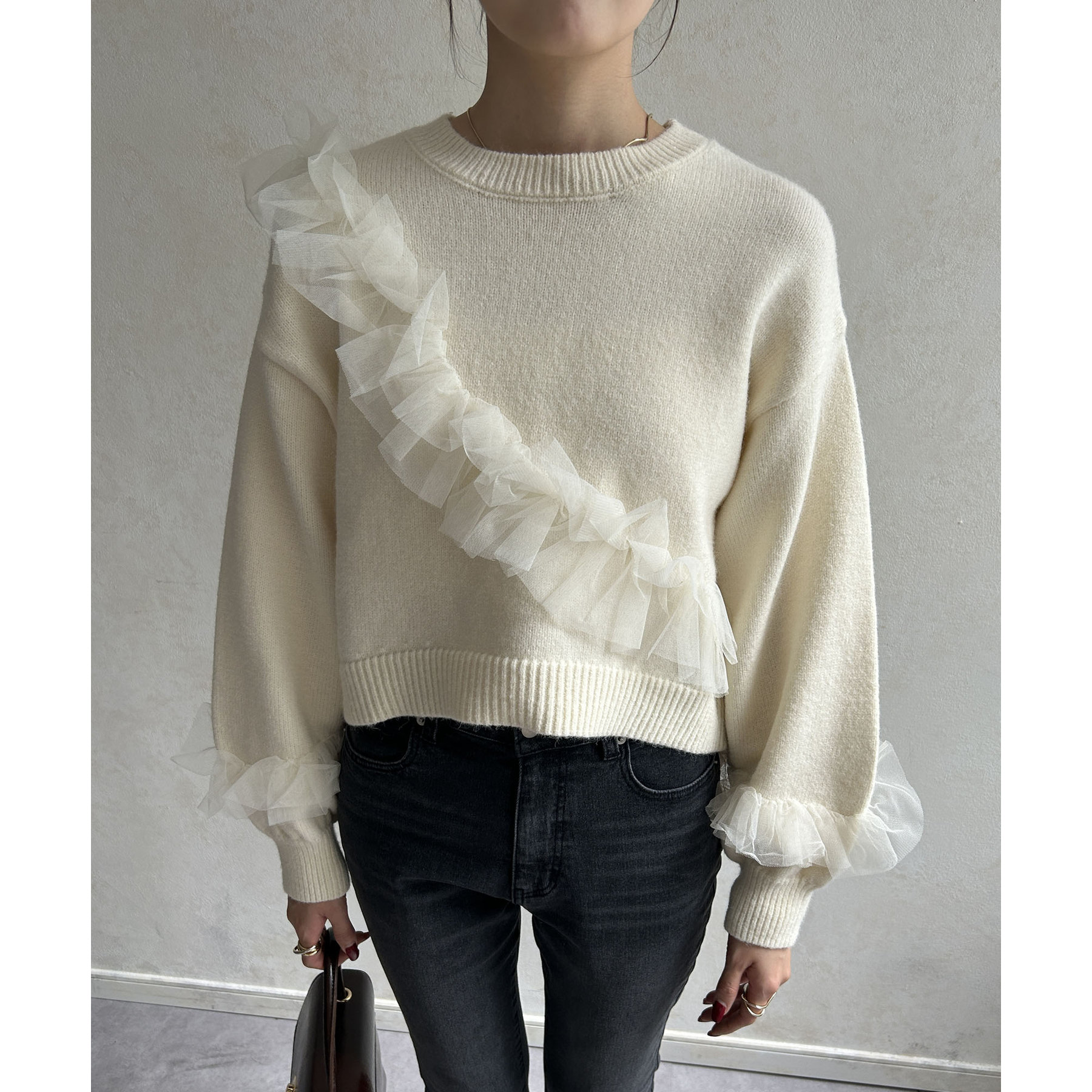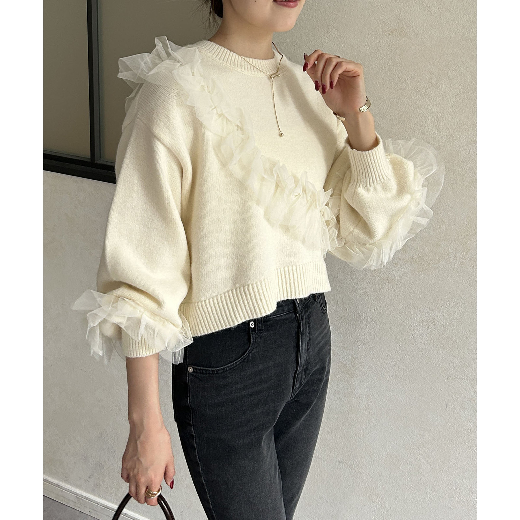 ・アシンメトリーなチュールデザインが華やかさをプラス