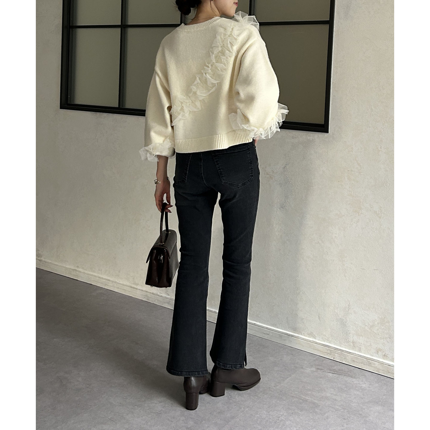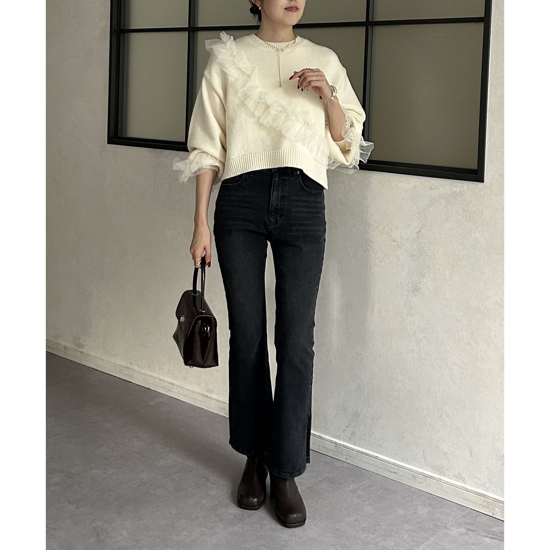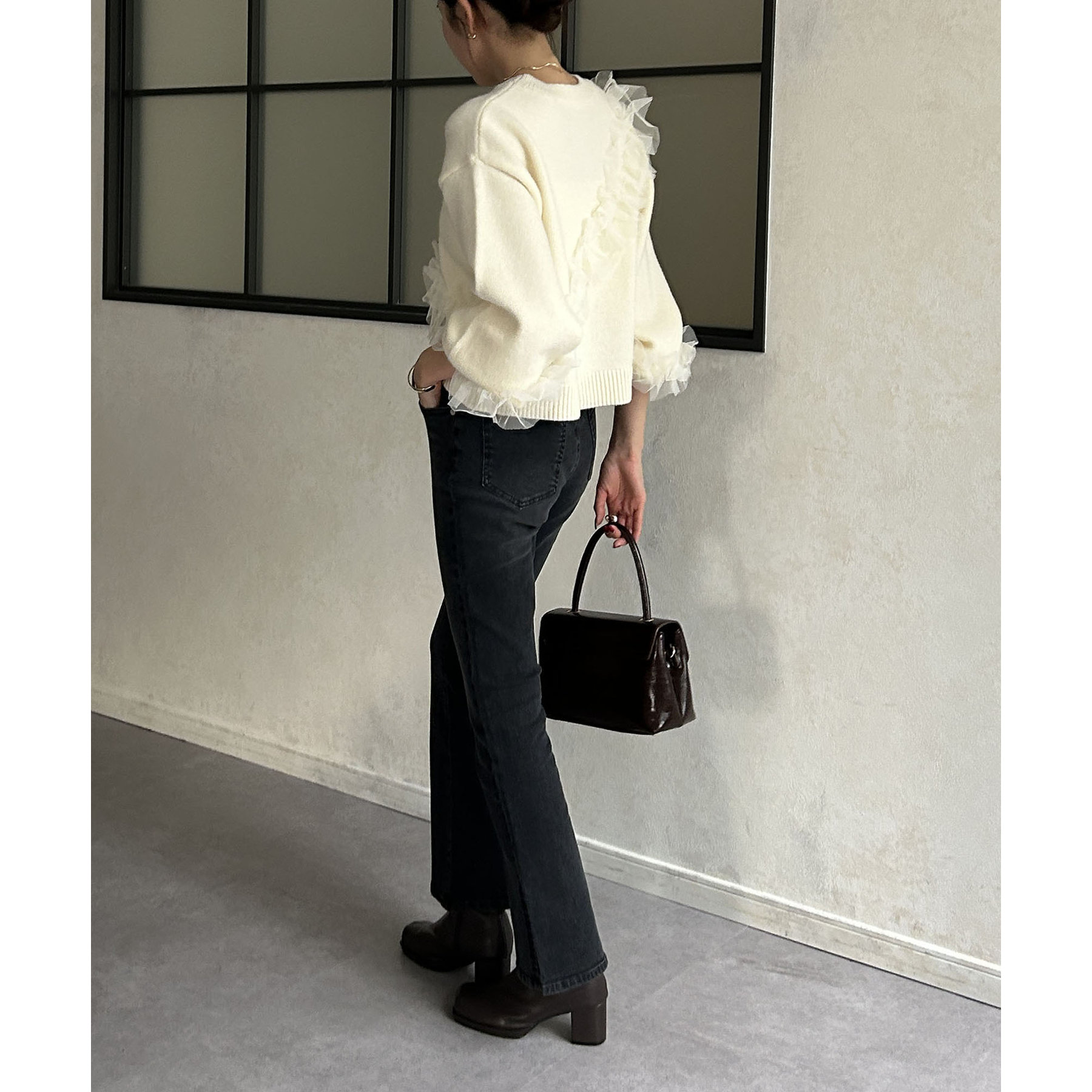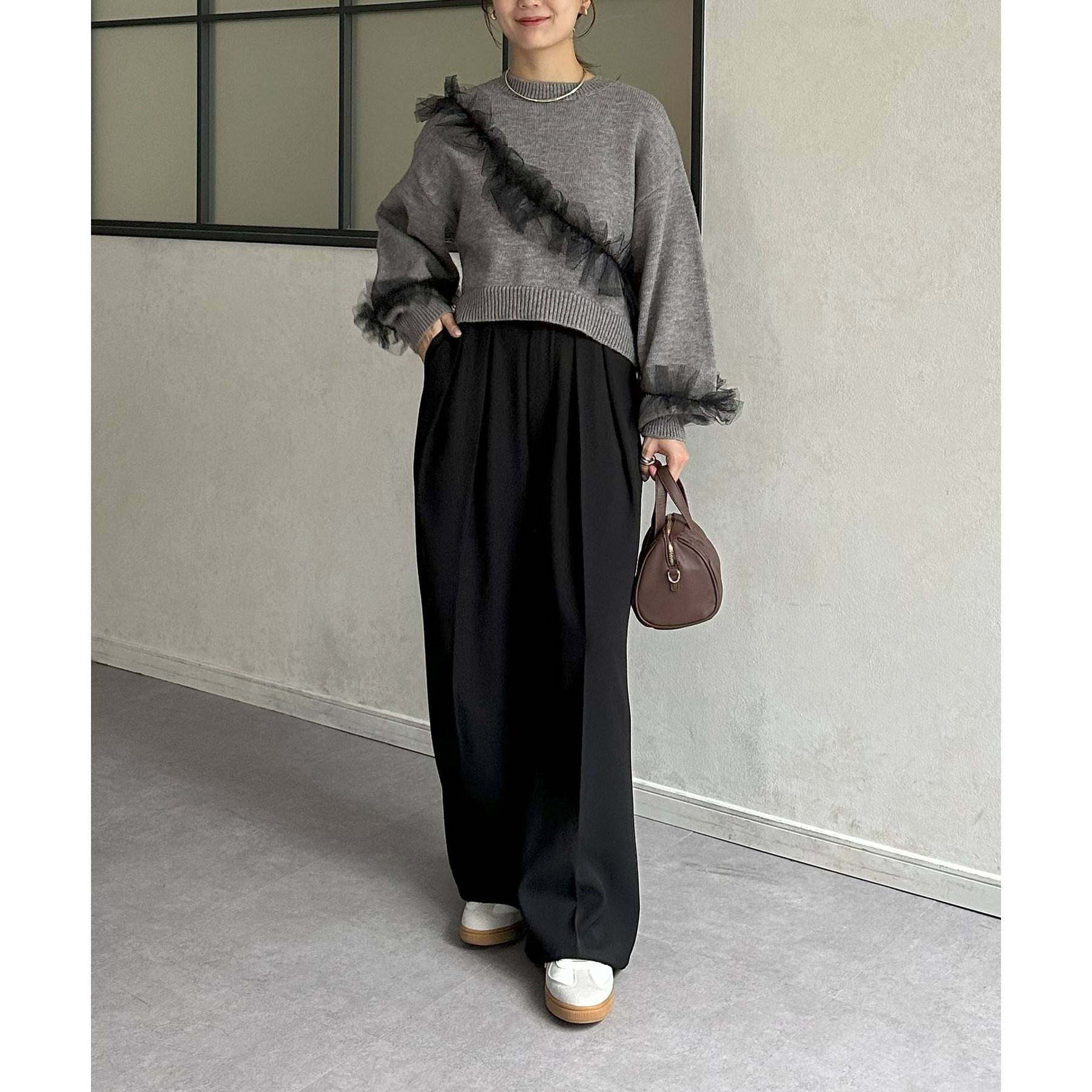 ・ショート丈なので綺麗めなスラックスやワイドパンツなど様々なボトムスと相性抜群です。