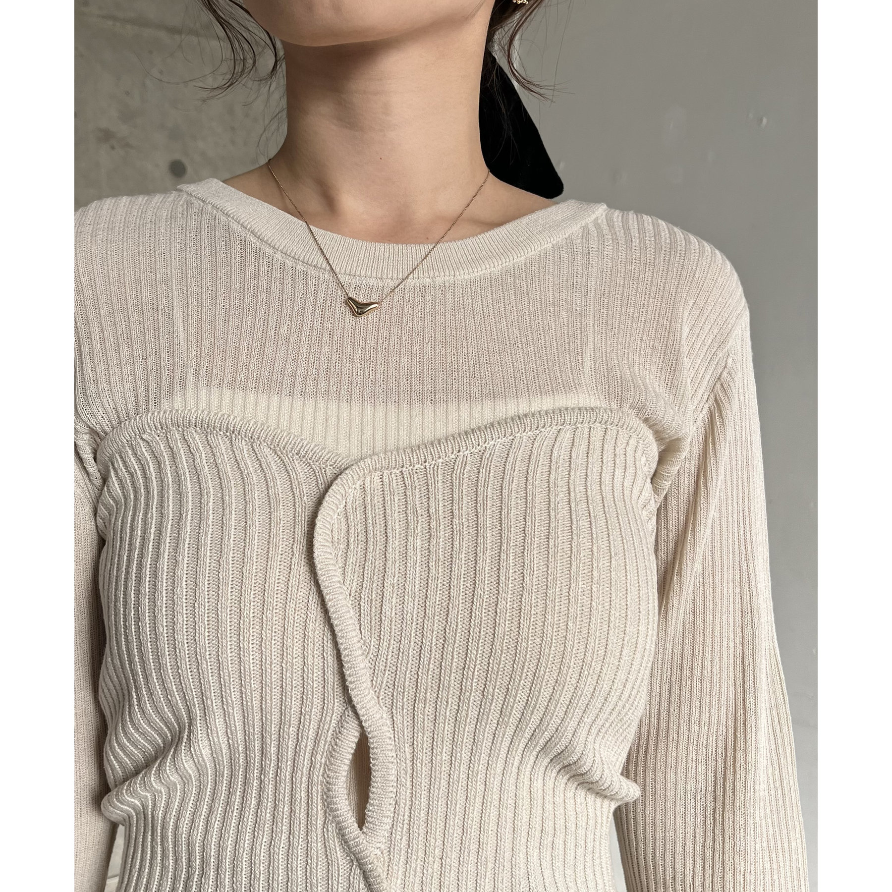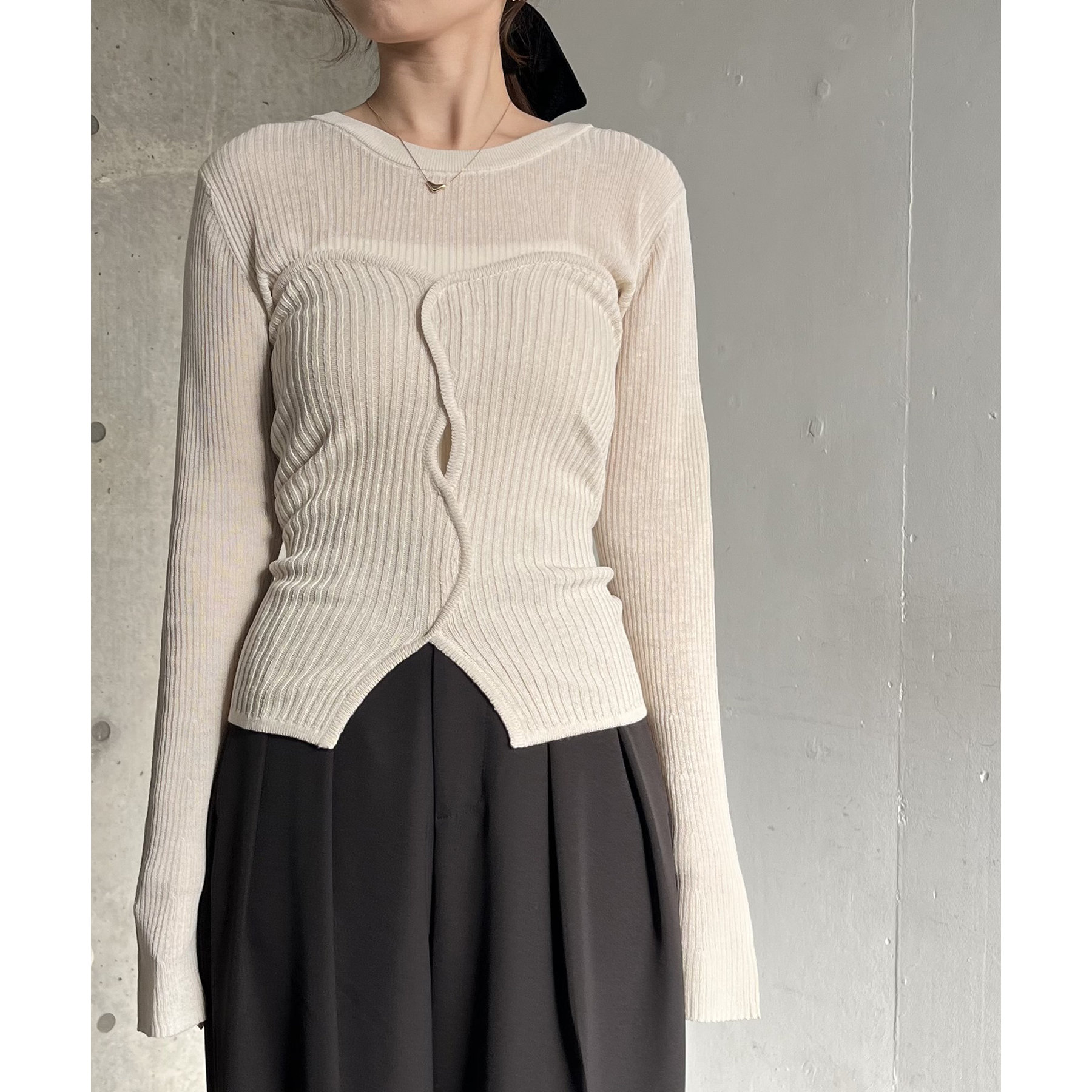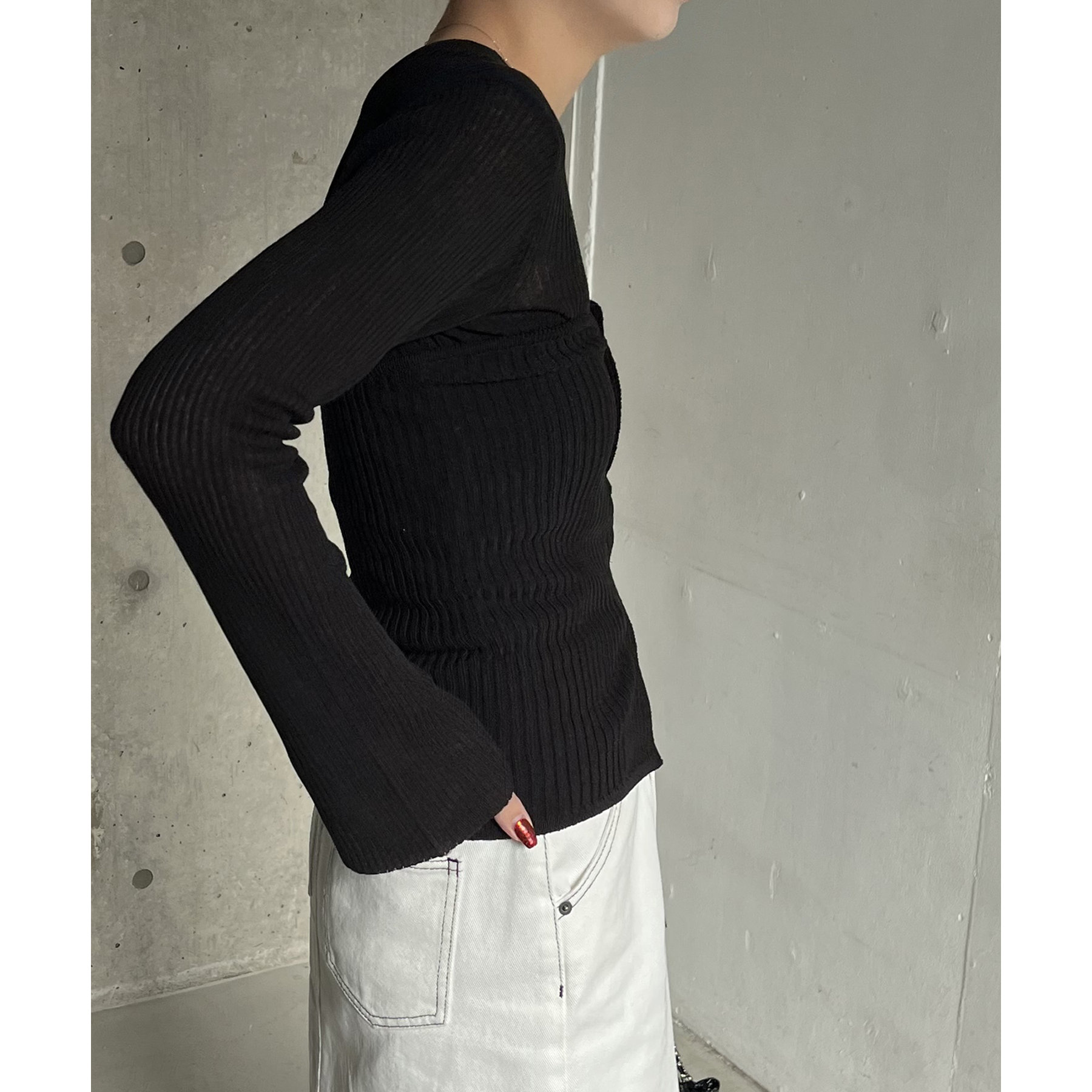 ・太リブのビスチェとシアーニットがセットになったお得なデザインニット